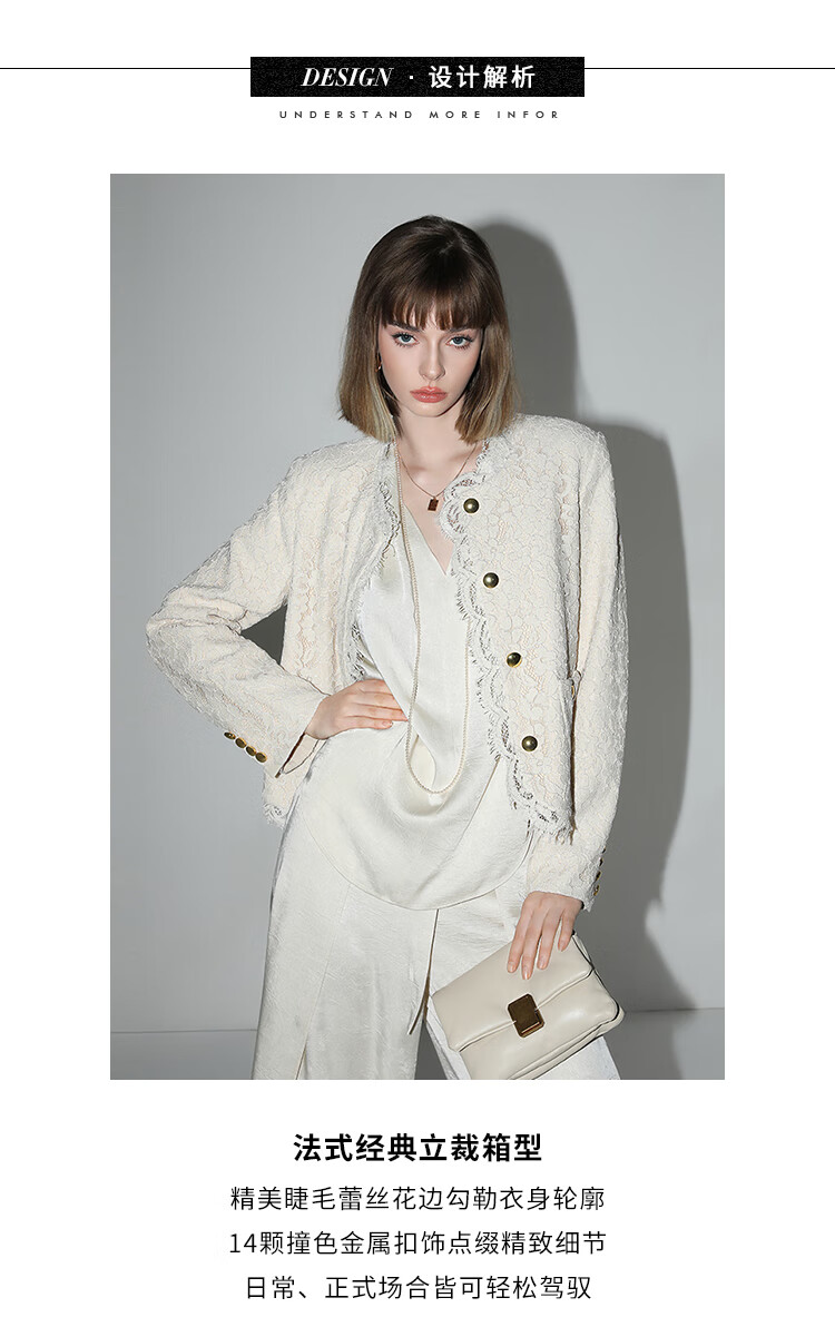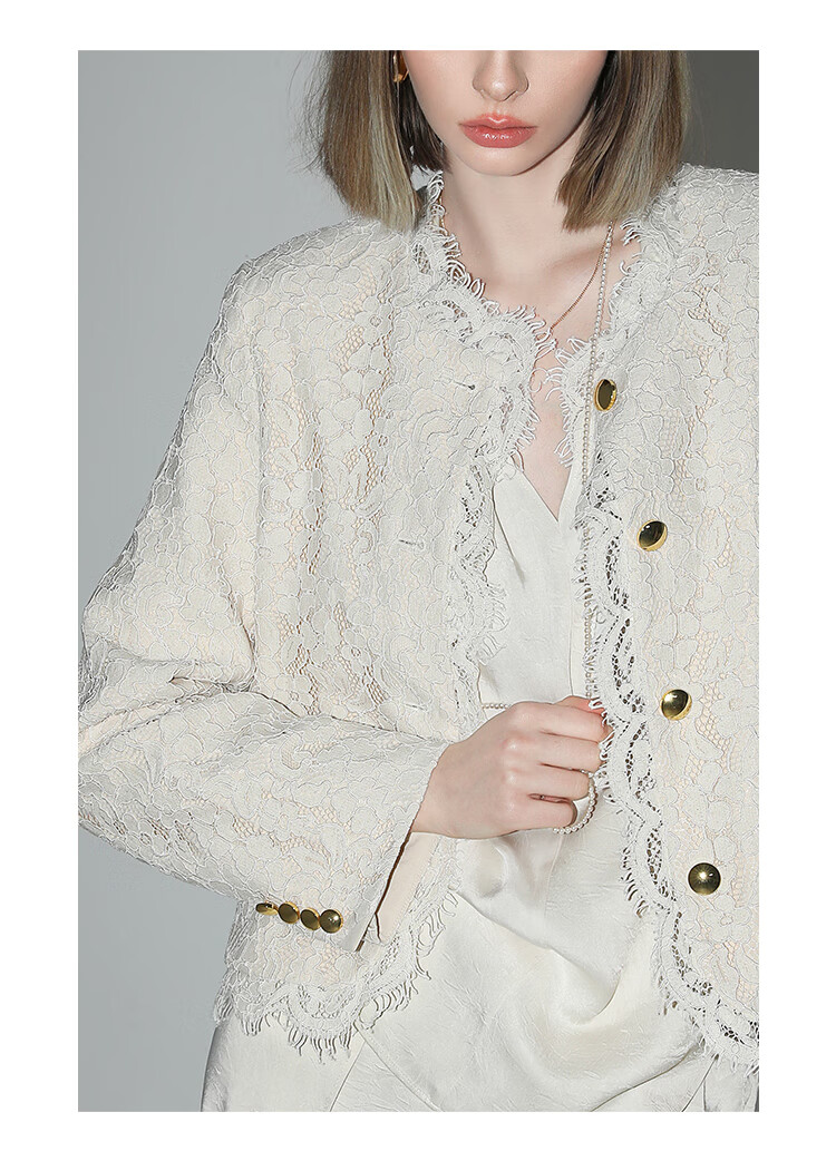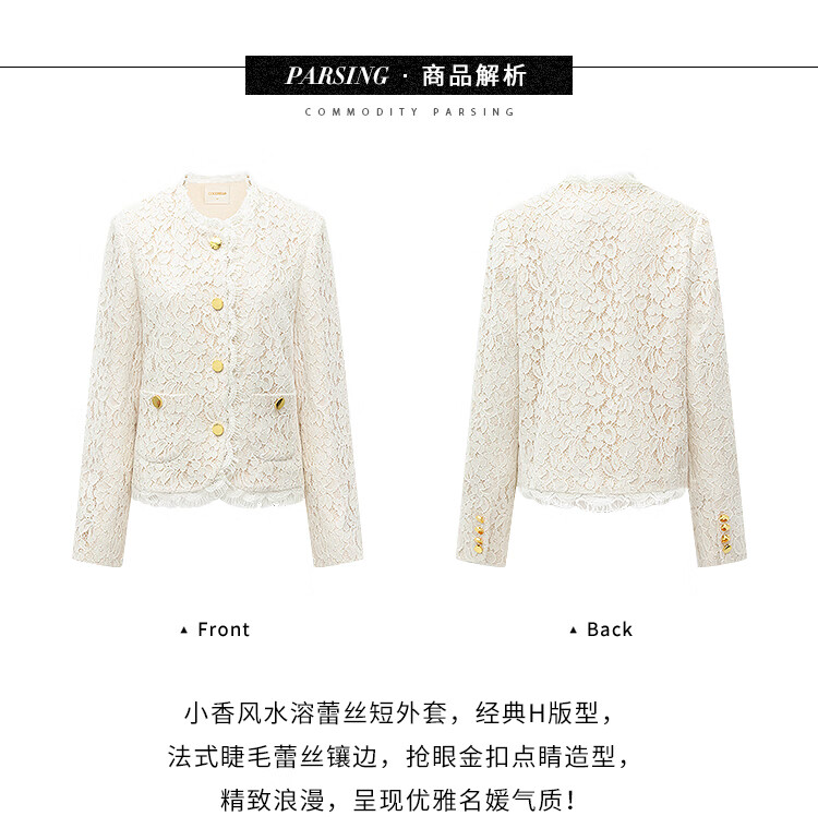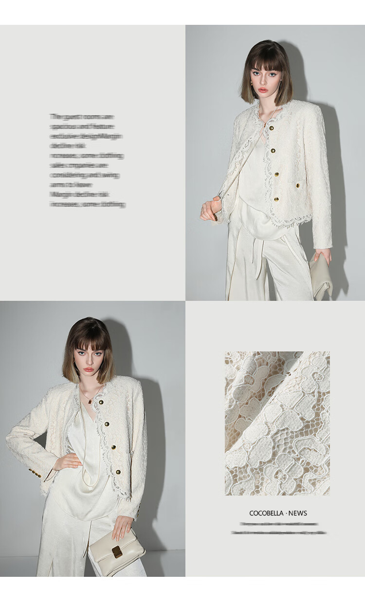 COCOBELLA重工水溶蕾丝花边外套女奢感通勤小香风西装SC0001