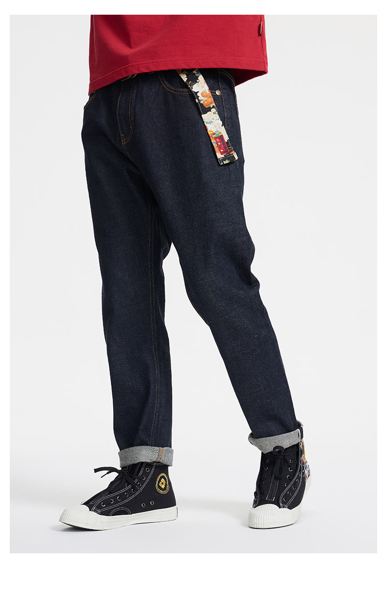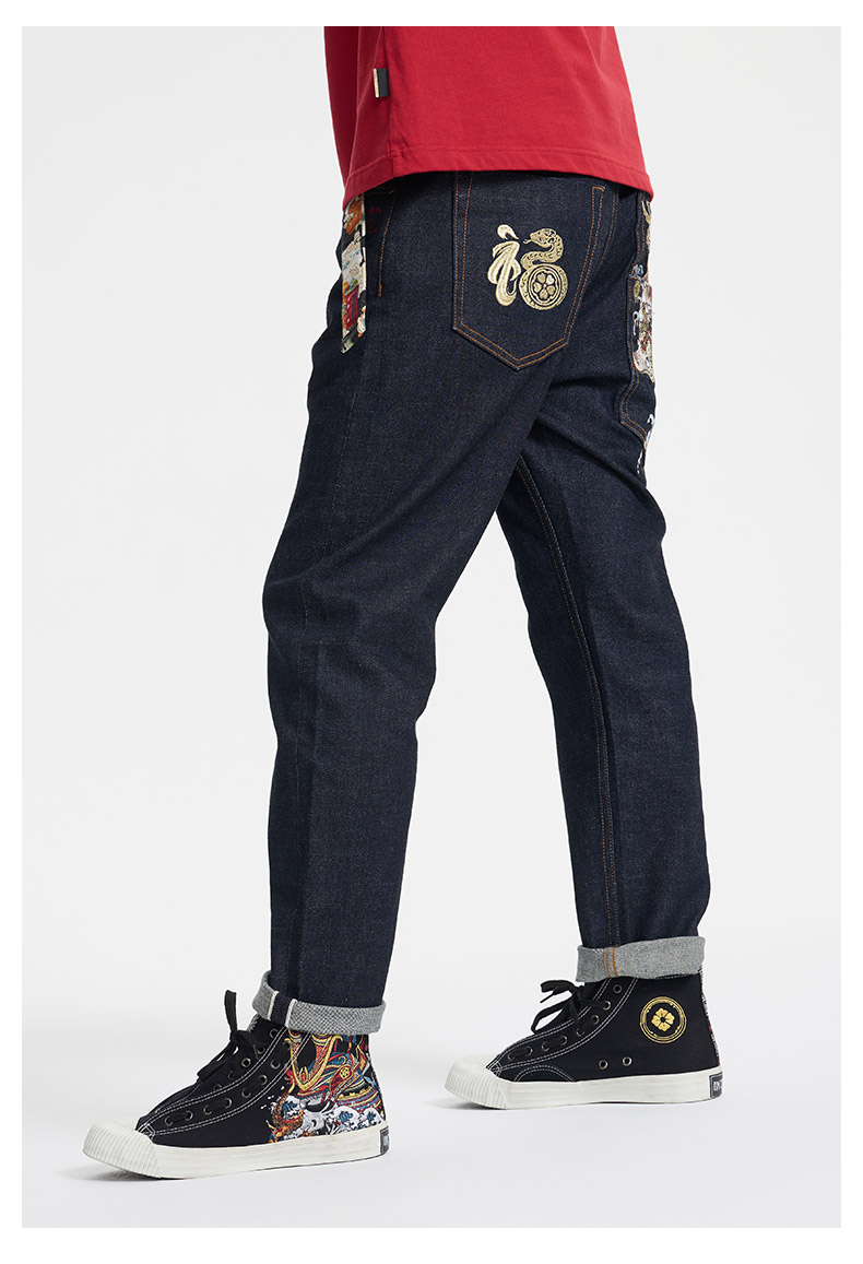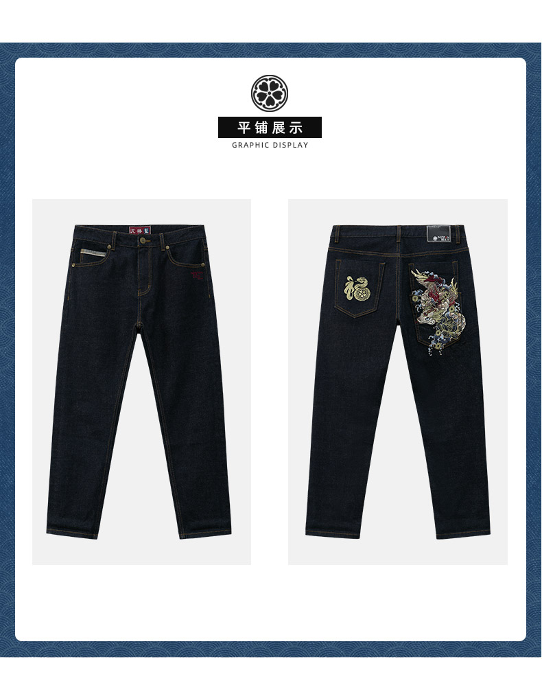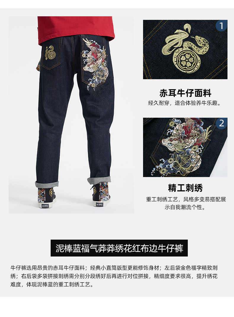 ONIARAI/鬼洗25春夏泥棒蓝福气莽莽绣花红布边牛仔裤男式 25N5401