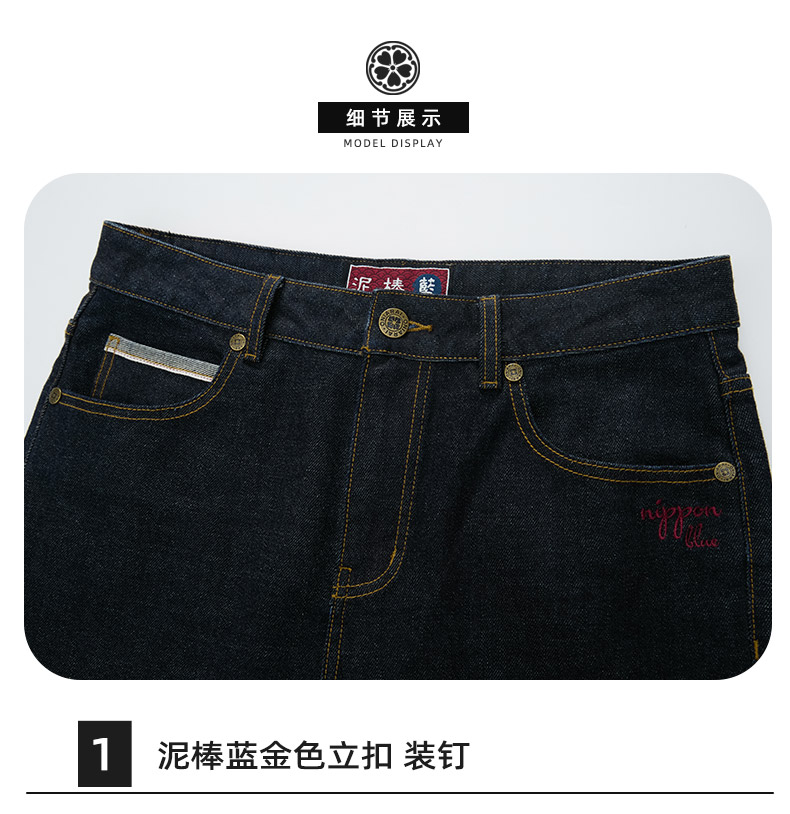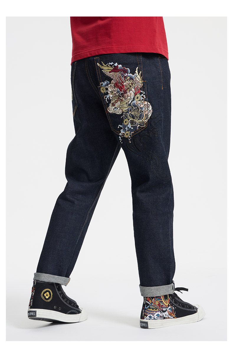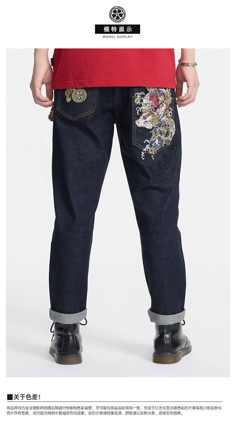 ONIARAI/鬼洗25春夏泥棒蓝福气莽莽绣花红布边牛仔裤男式 25N5401