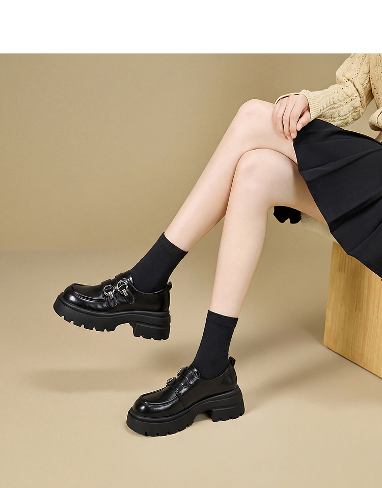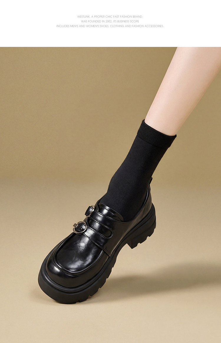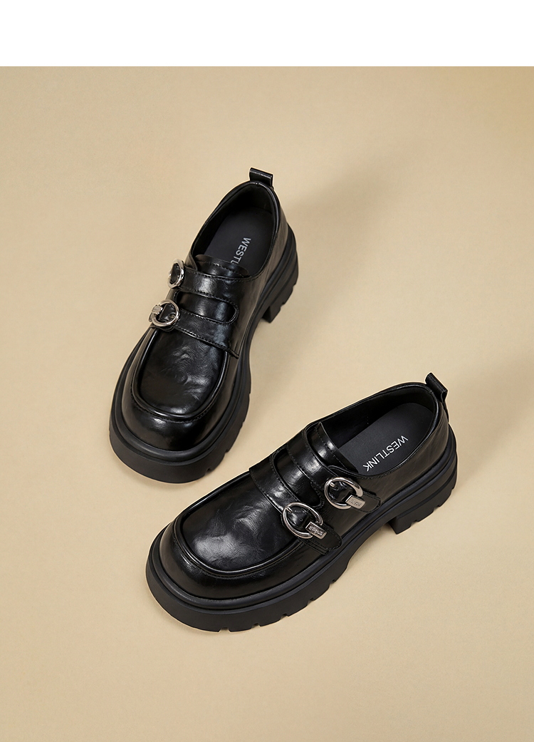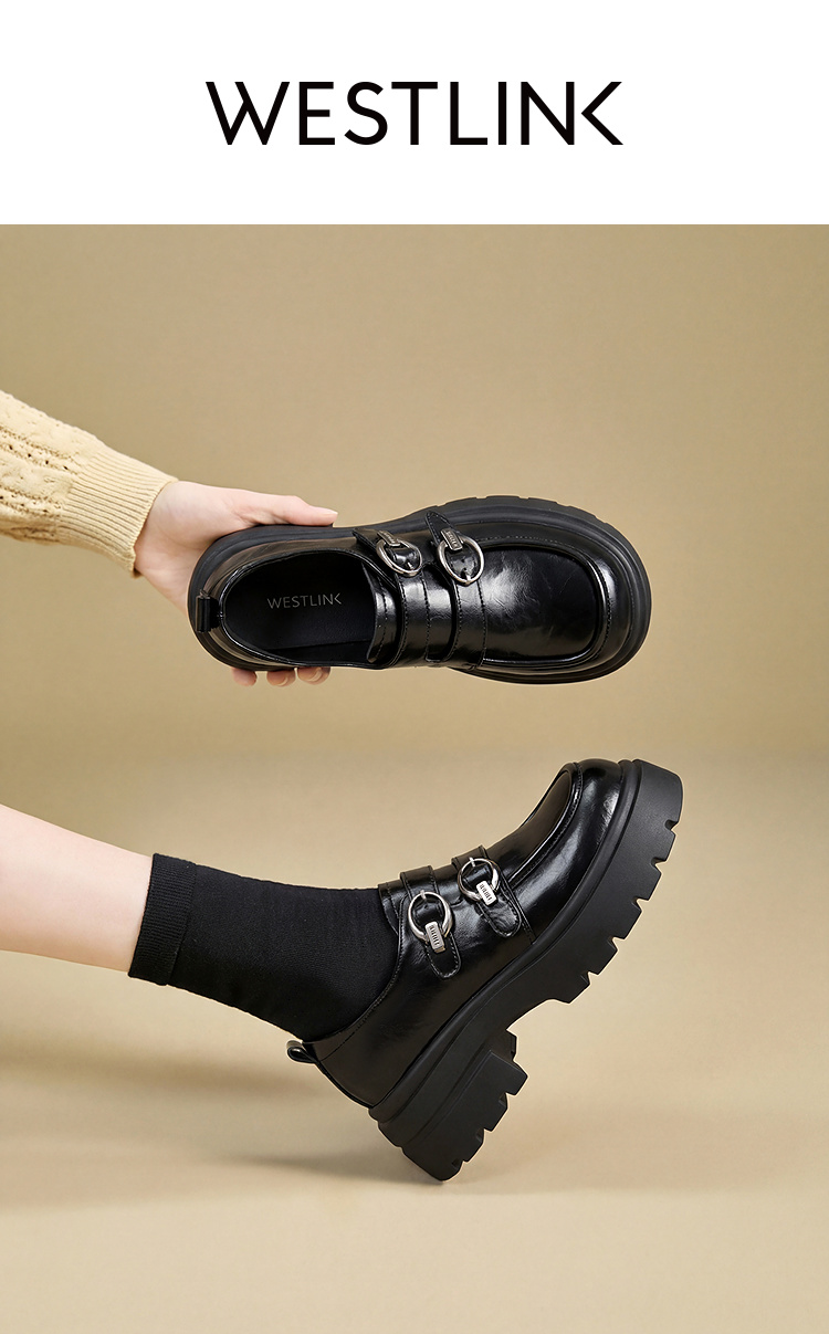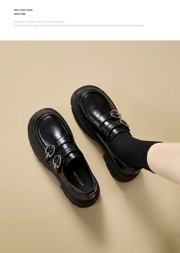 西遇厚底乐福鞋女鞋2026春季新款英伦风JK小皮鞋金属装饰复古单鞋V0166238