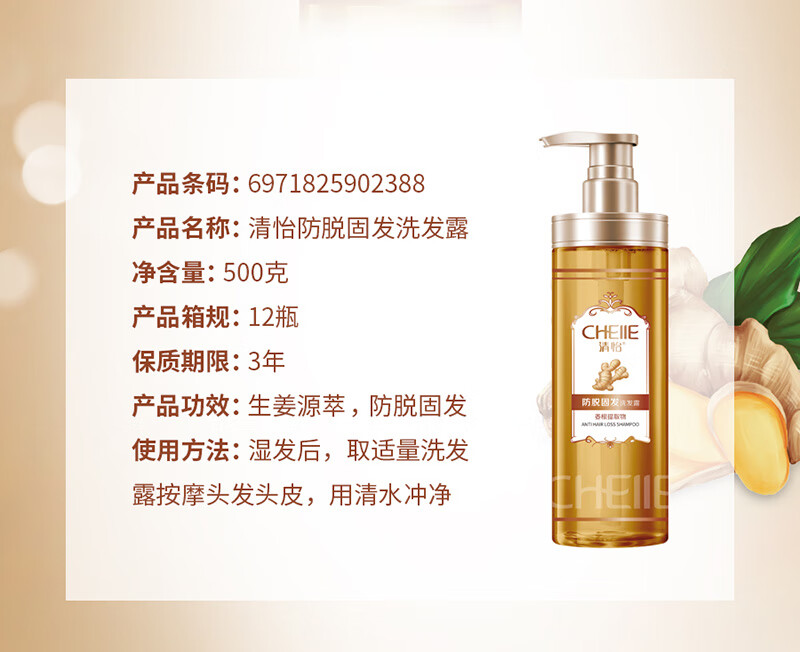 清怡防脱固发洗发露500克防脱小金瓶 透明