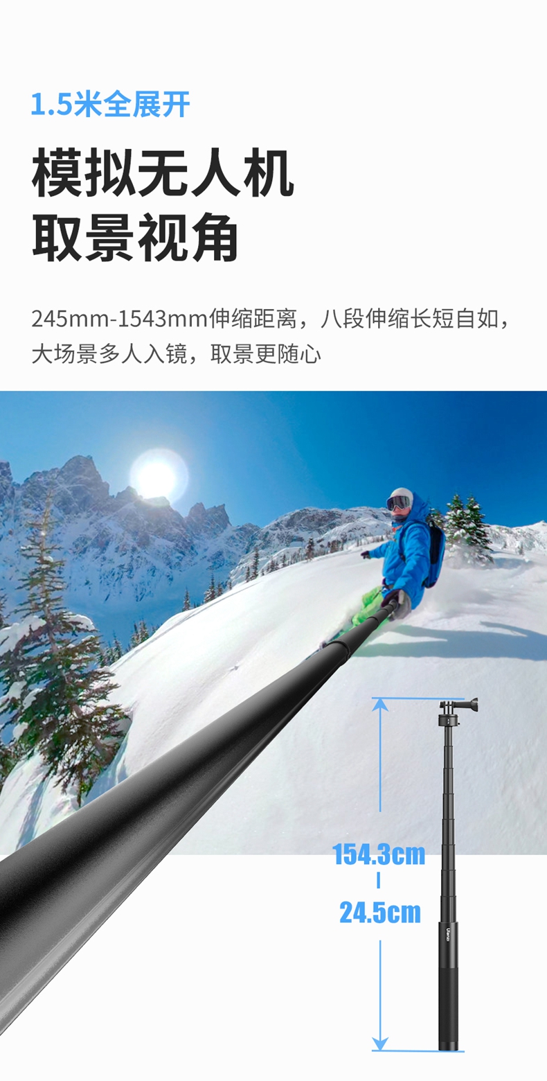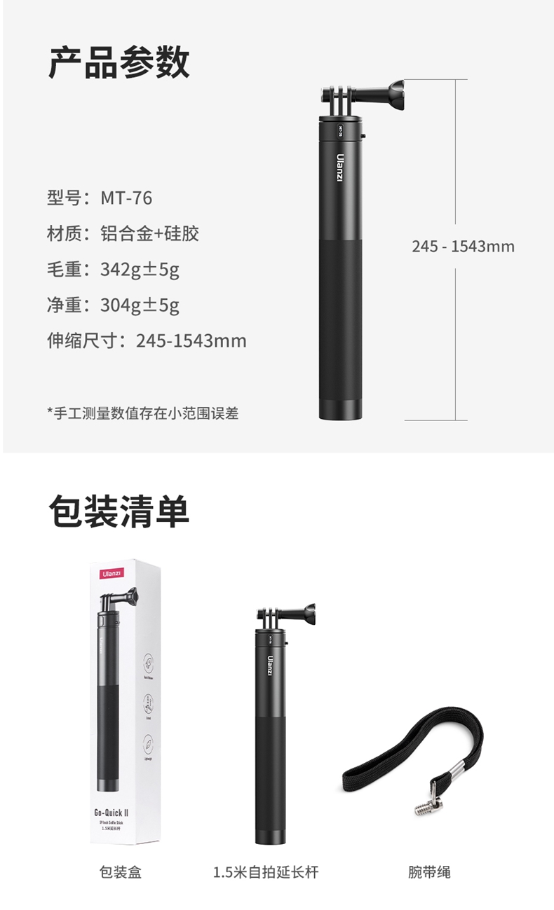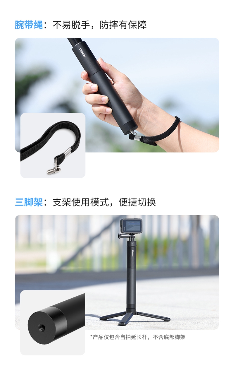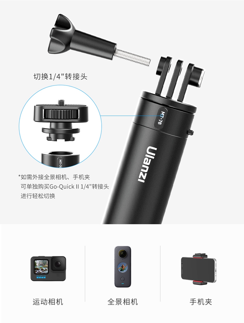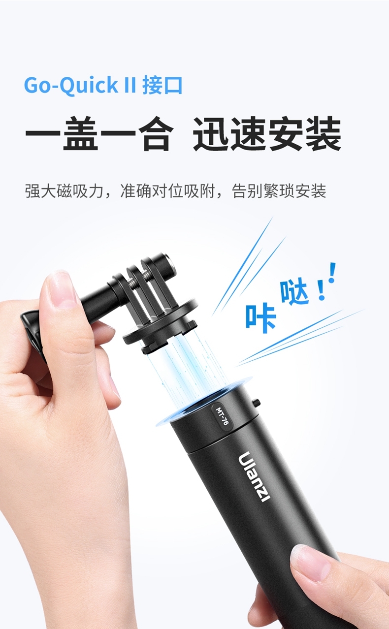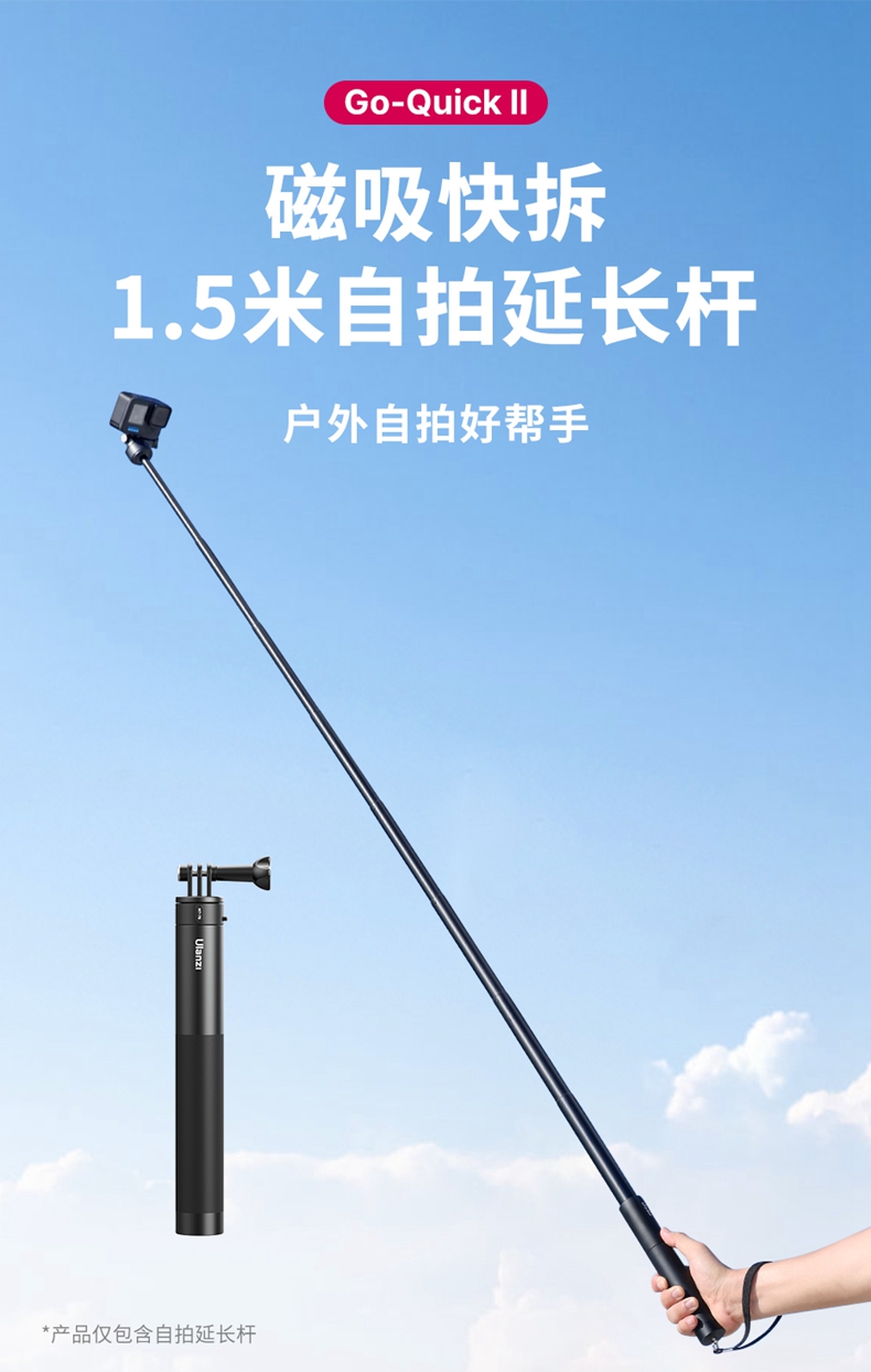 Ulanzi优篮子GO Quick II磁吸快拆1.5M运动相机延长自拍杆三脚架适用Gopro11/10/9大疆action2/3配件Insta360