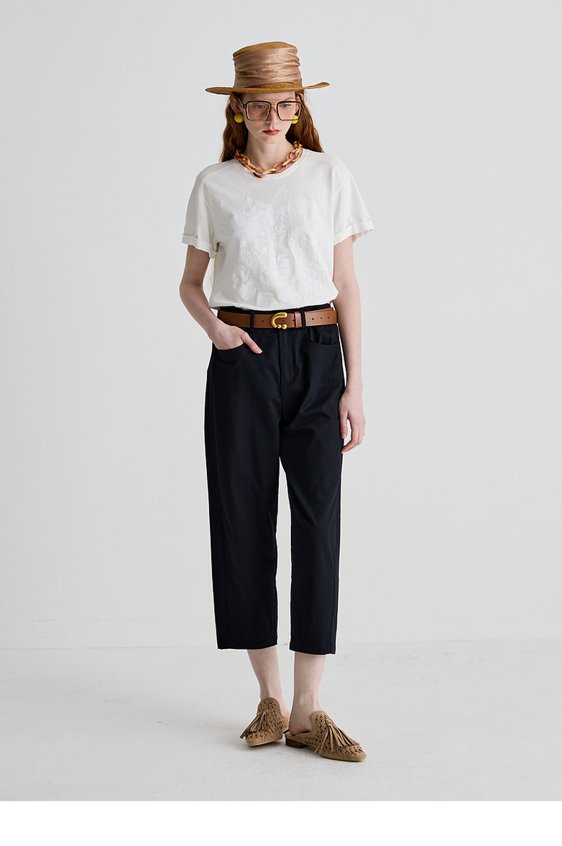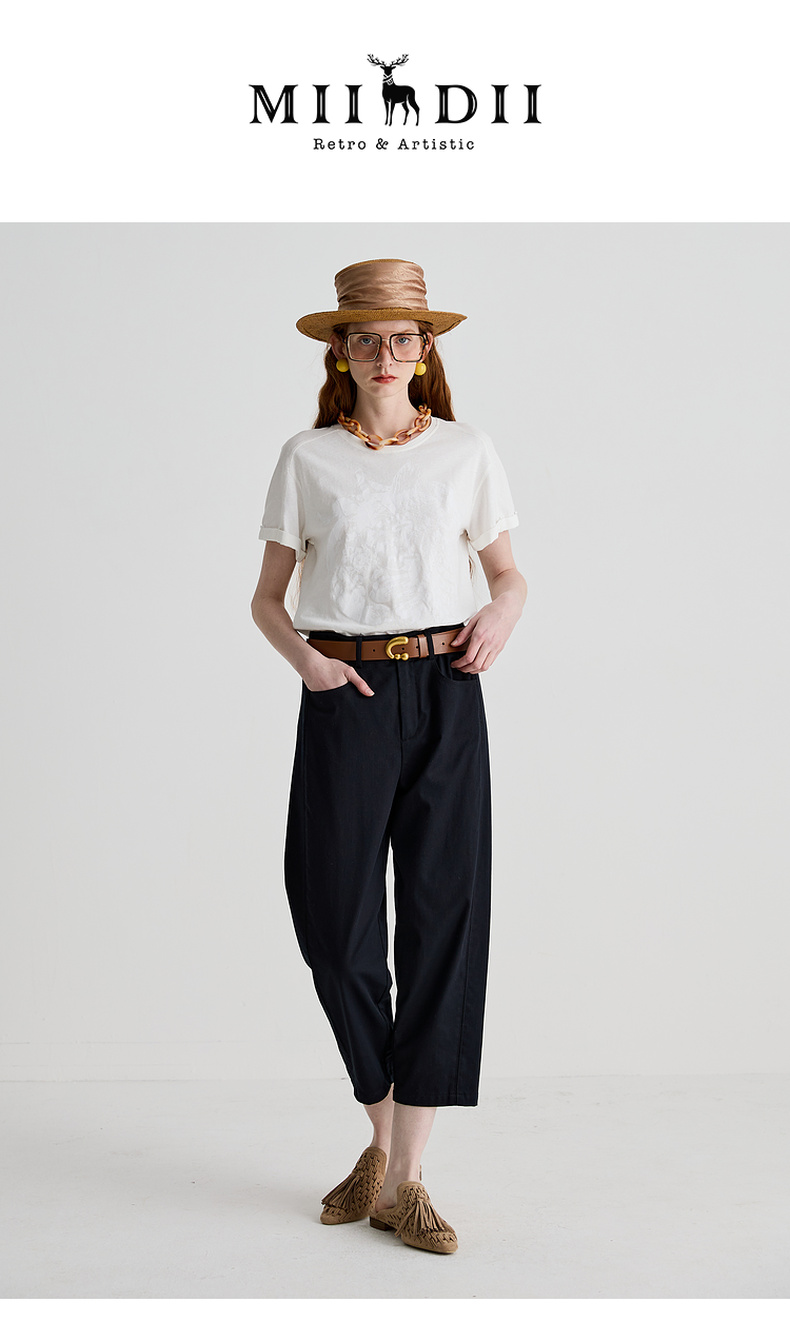 谜底休闲裤女2025夏季新品通勤柔弹百搭合身萝卜九分裤252MK0691