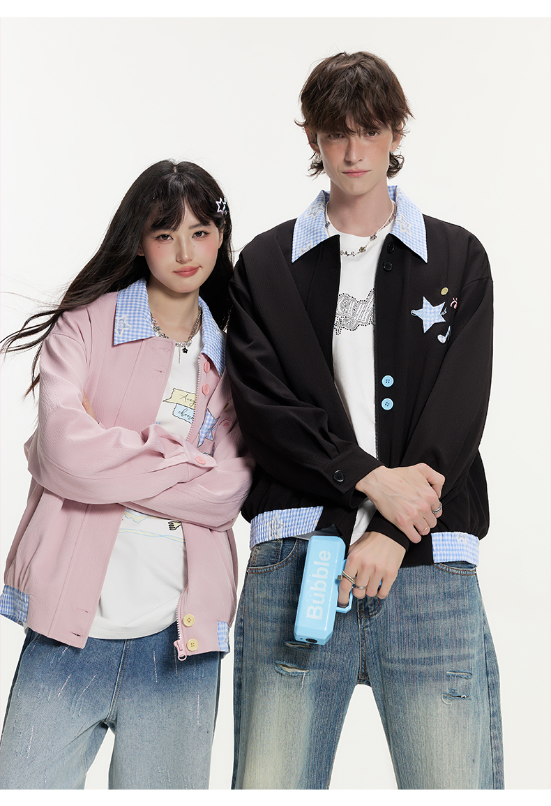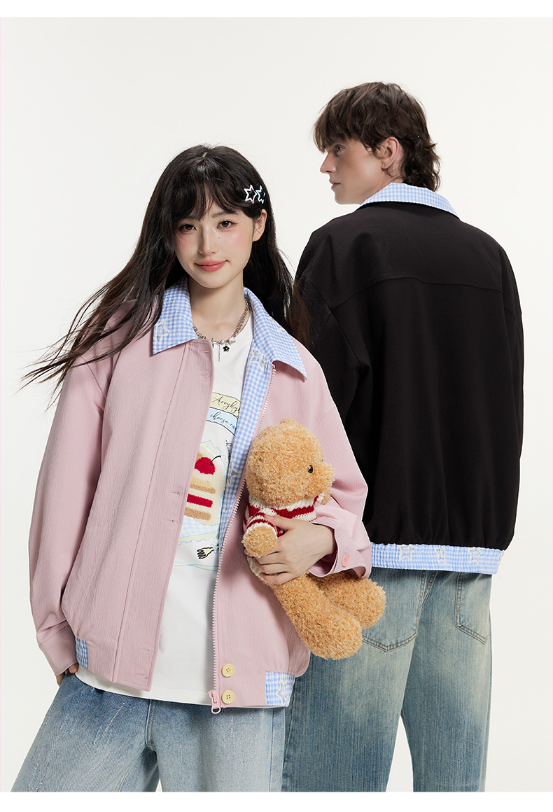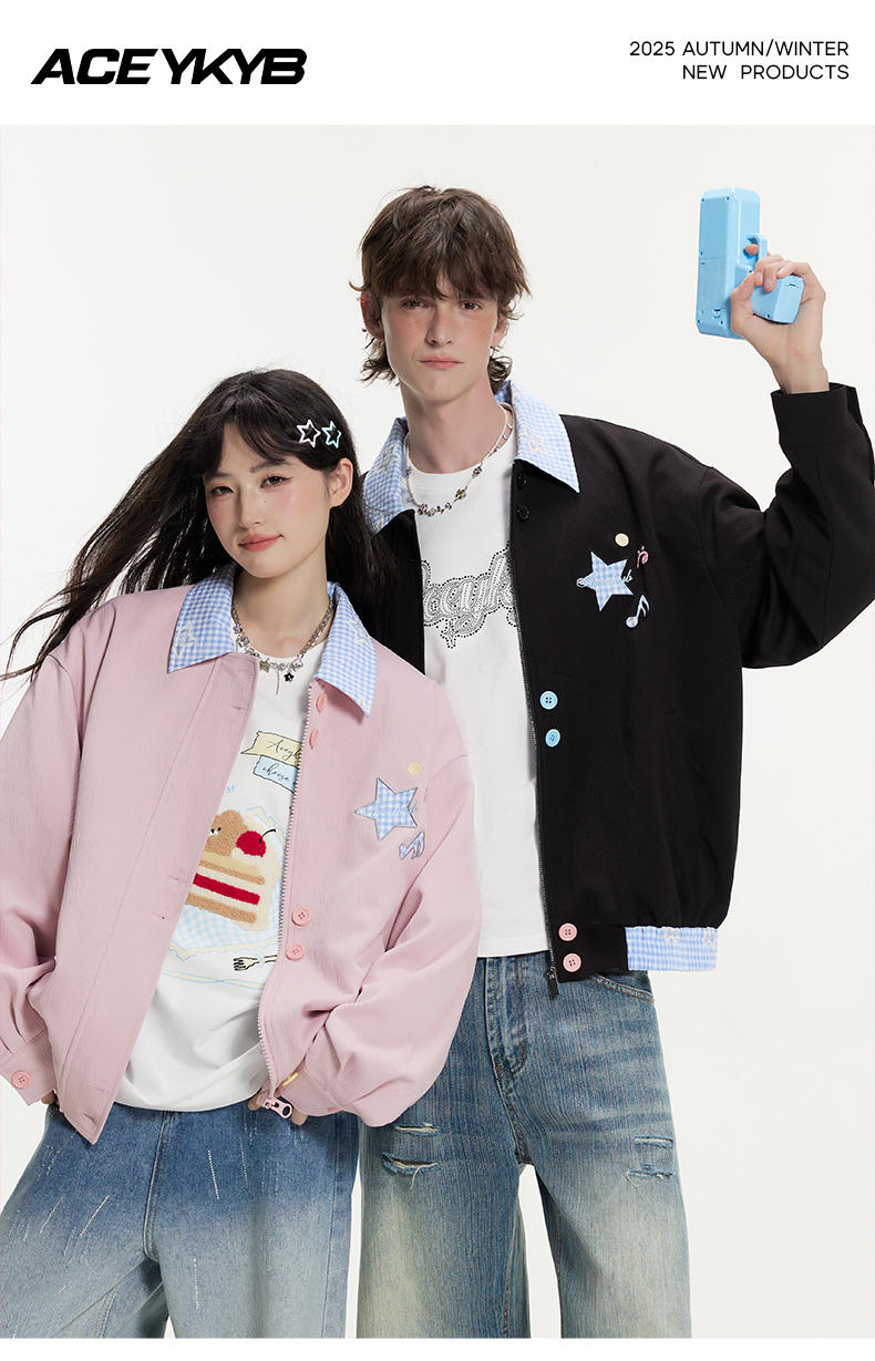 YKYB黄子韬外套夹克情侣青春活力星梦乐动撞色领水波纹撞色翻领上衣Y53FWT073