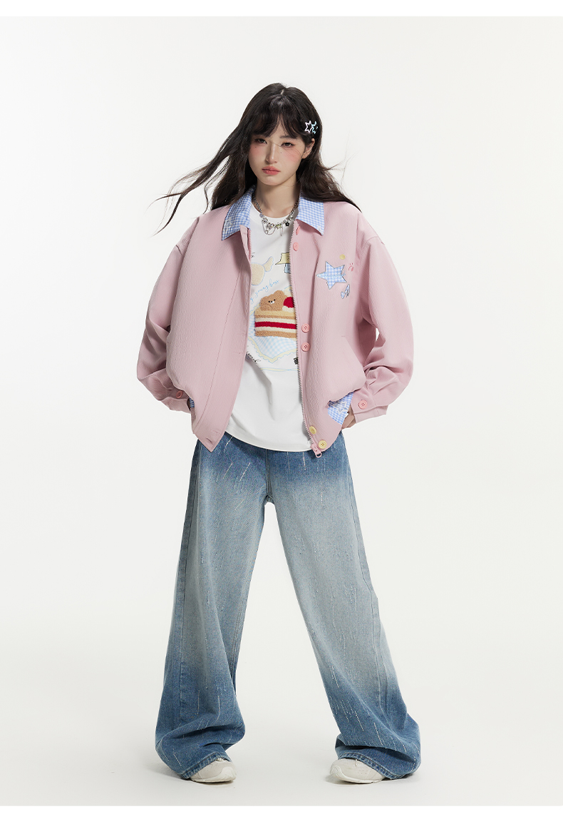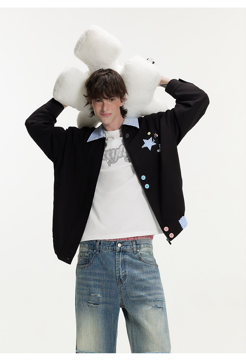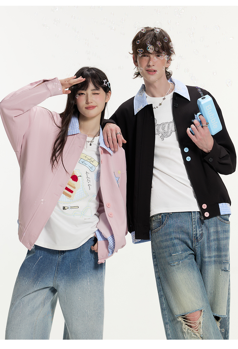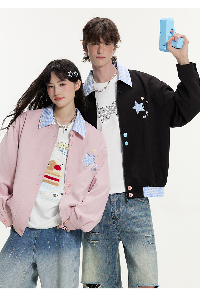 YKYB黄子韬外套夹克情侣青春活力星梦乐动撞色领水波纹撞色翻领上衣Y53FWT073