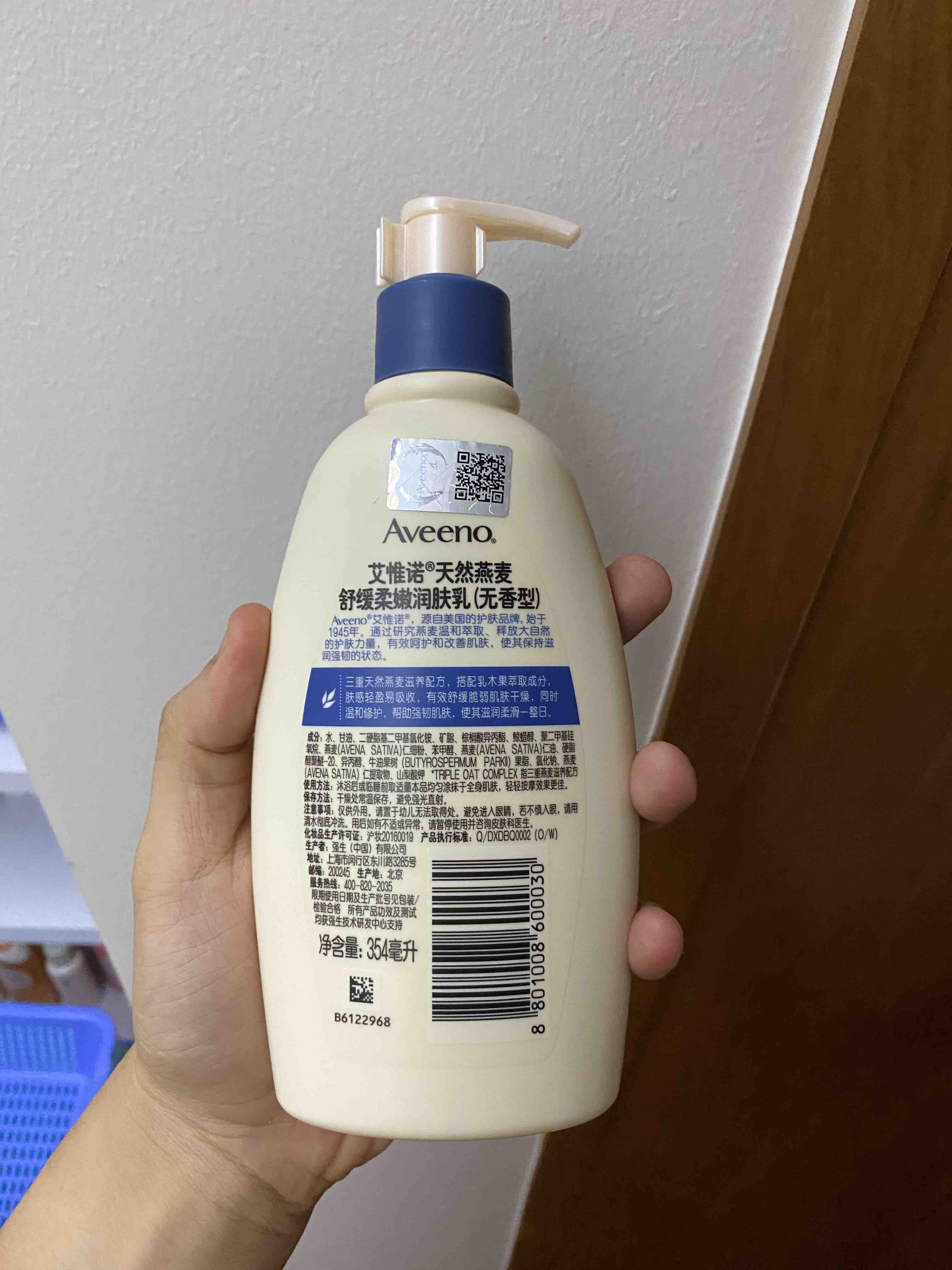 Aveeno成人按压燕麦无香型身体乳354ml