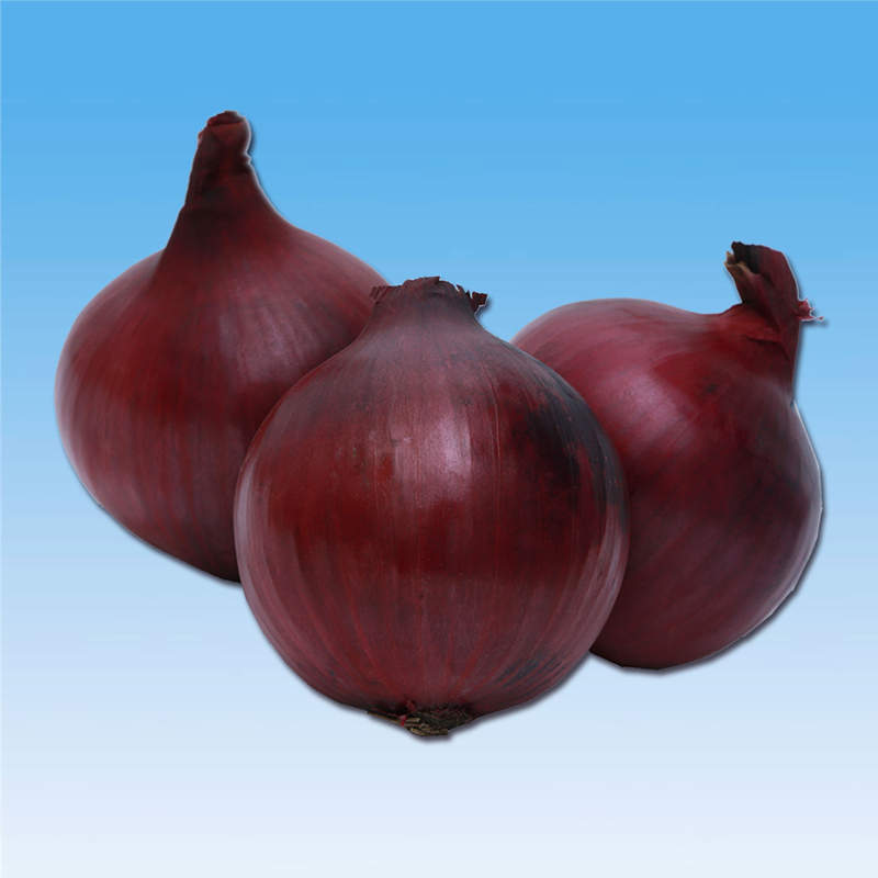 长日照,中早熟杂交红皮洋葱。生育期约120天,植株长势强健,葱球近圆形,外皮至内层颜色深红,整齐度高。葱球紧实度好,不易脱皮,收口紧实,耐储藏,单球重320g左右。耐灰霉病、霜霉病、软腐病、紫斑病等叶部病害。