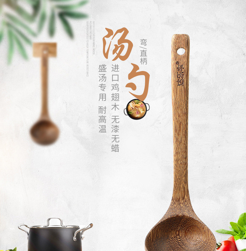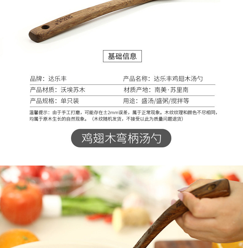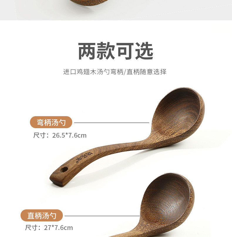 达乐丰鸡翅木大汤勺无漆实木家用盛汤弯柄汤勺