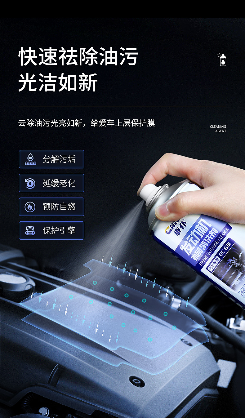 发动机外部清洗剂汽车机舱仓外表重油污强力去污清洁除油泥机头水