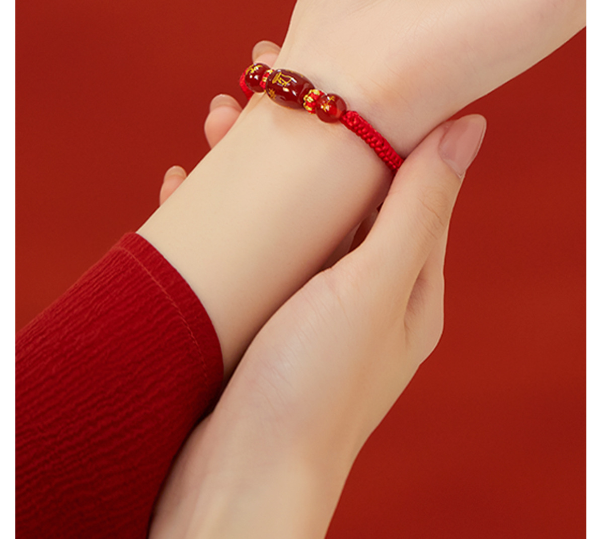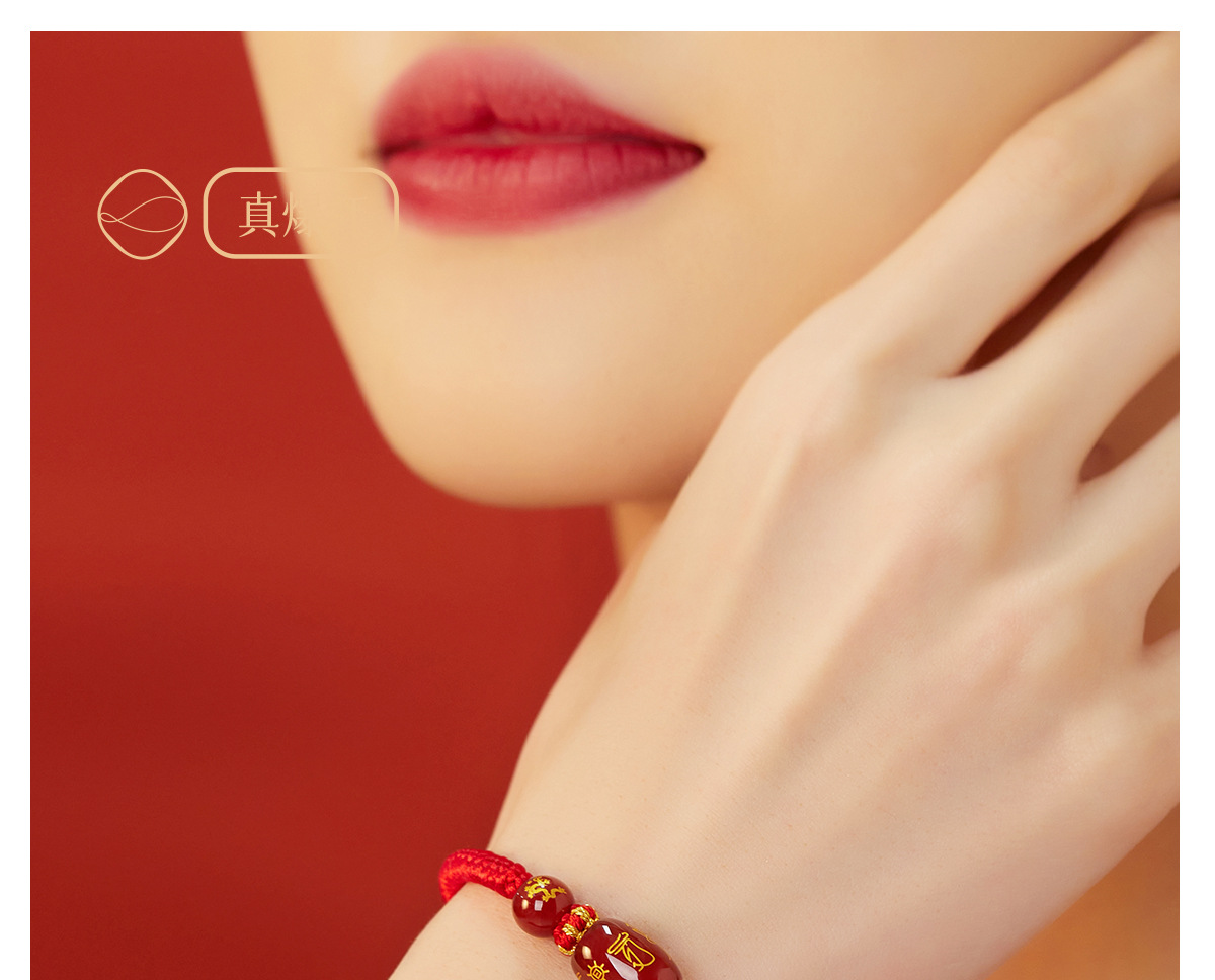 「十二生肖手链!太岁红绳」2024龙年本命年牛兔狗太岁化红绳手绳男女红色人工编织绳玛瑙手链时尚饰品