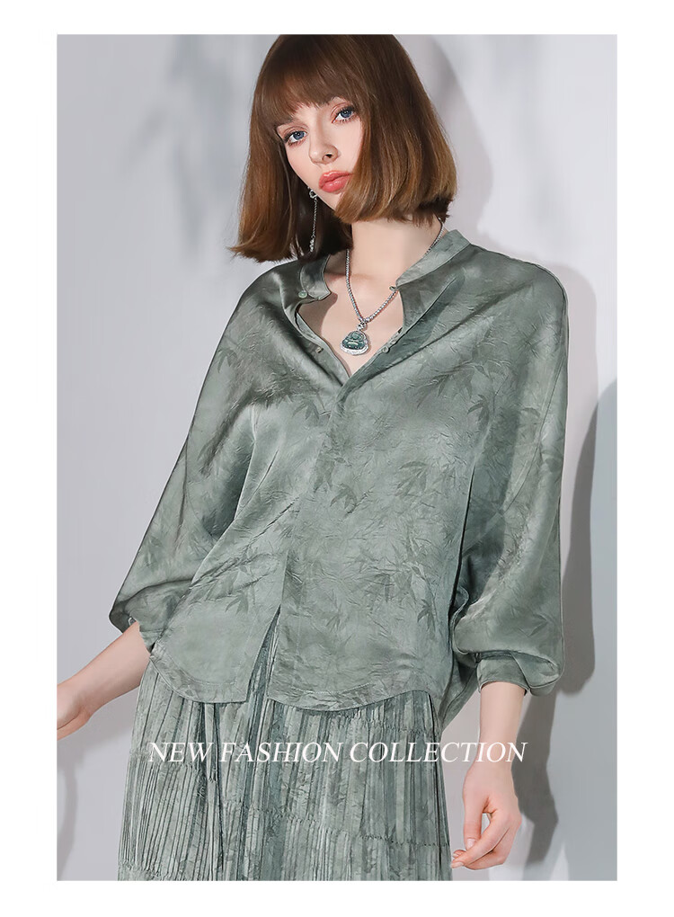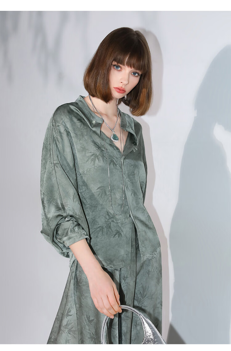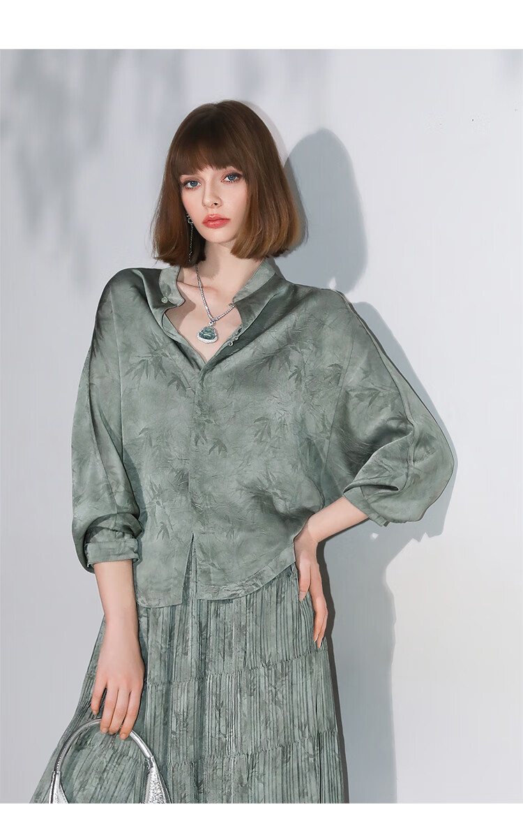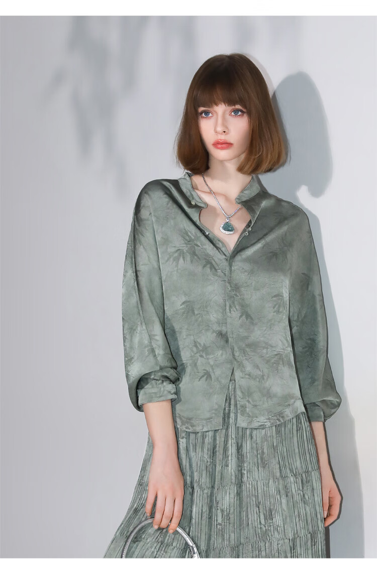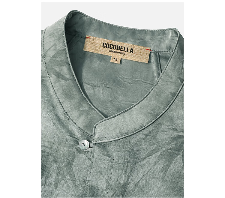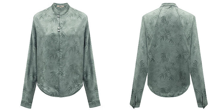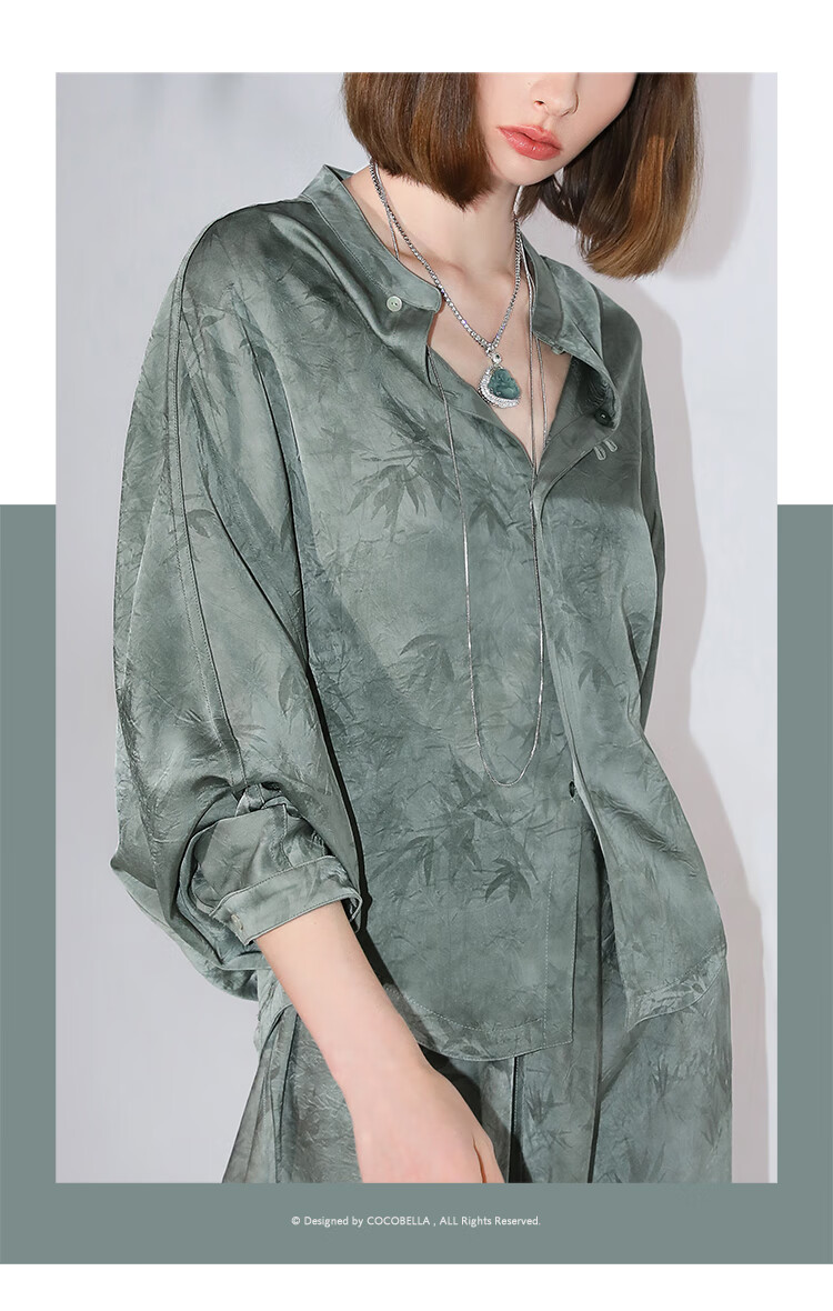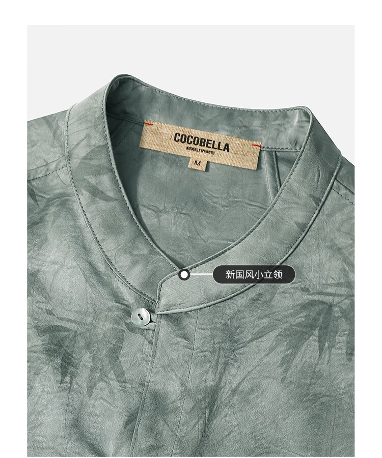 COCOBELLA[只此青绿]新中式竹叶印花衬衫[双面穿]立领上衣SR0052