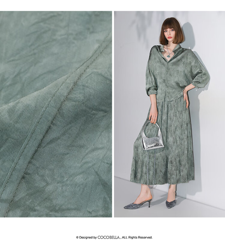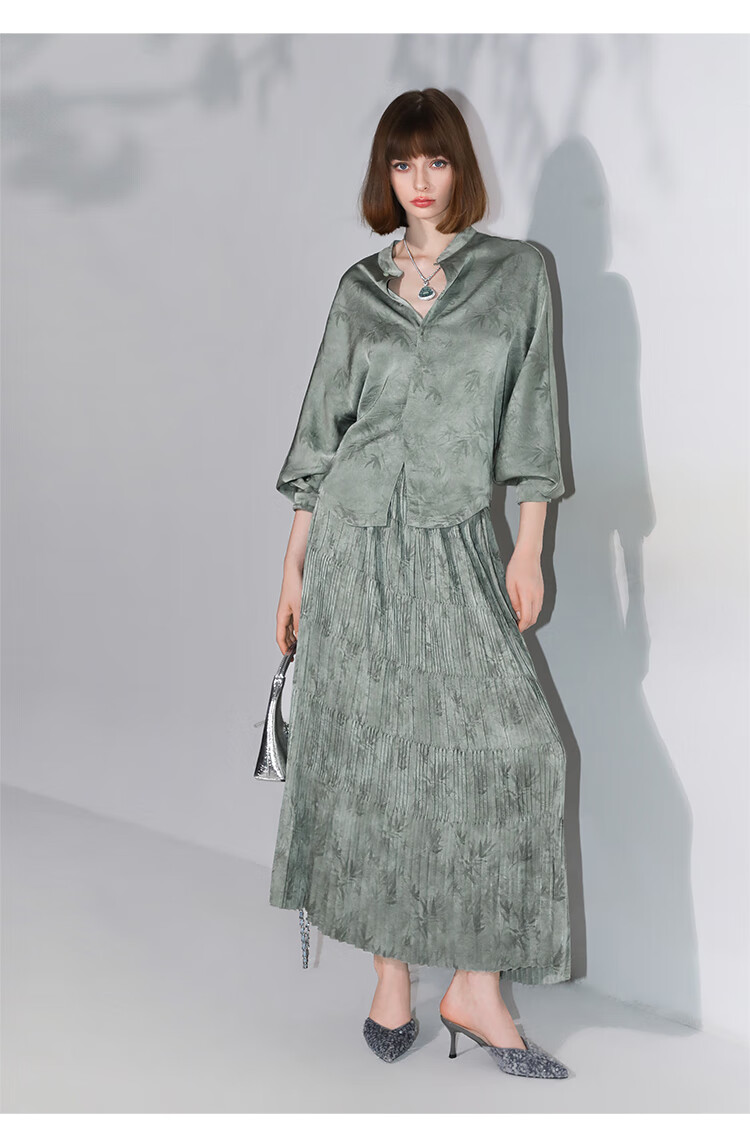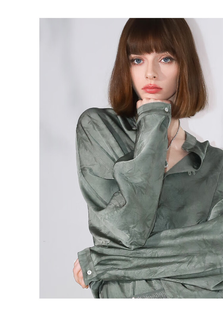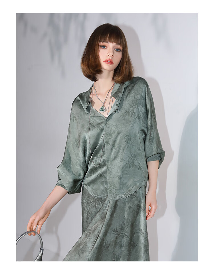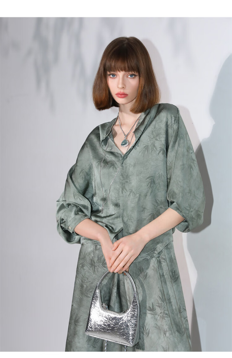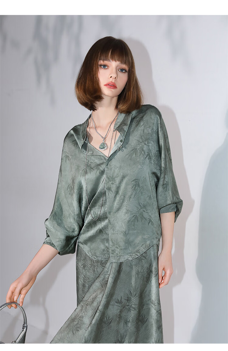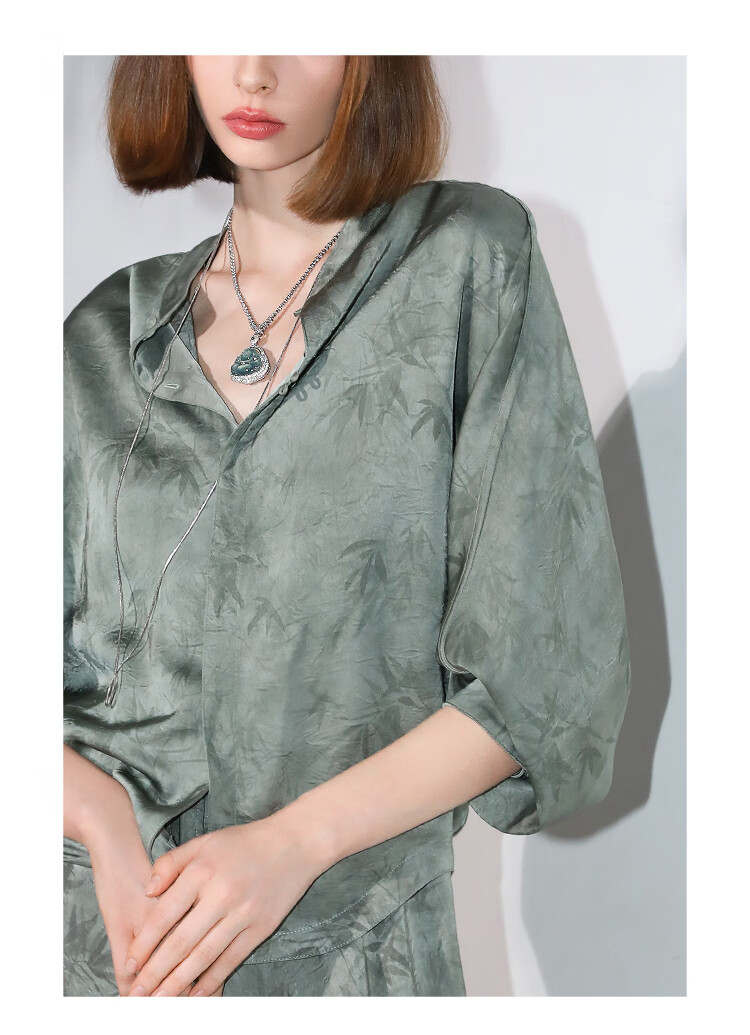 COCOBELLA[只此青绿]新中式竹叶印花衬衫[双面穿]立领上衣SR0052