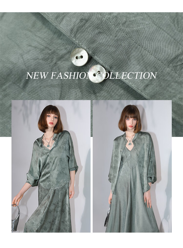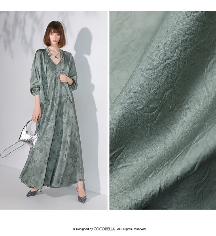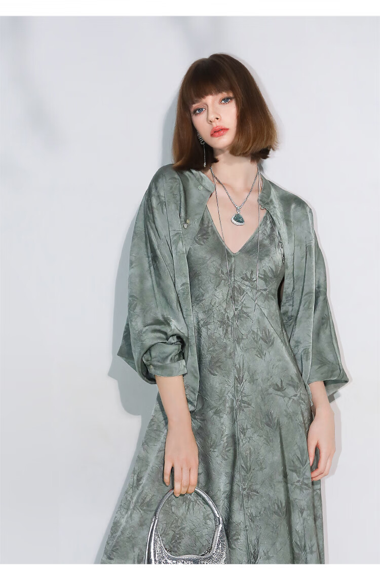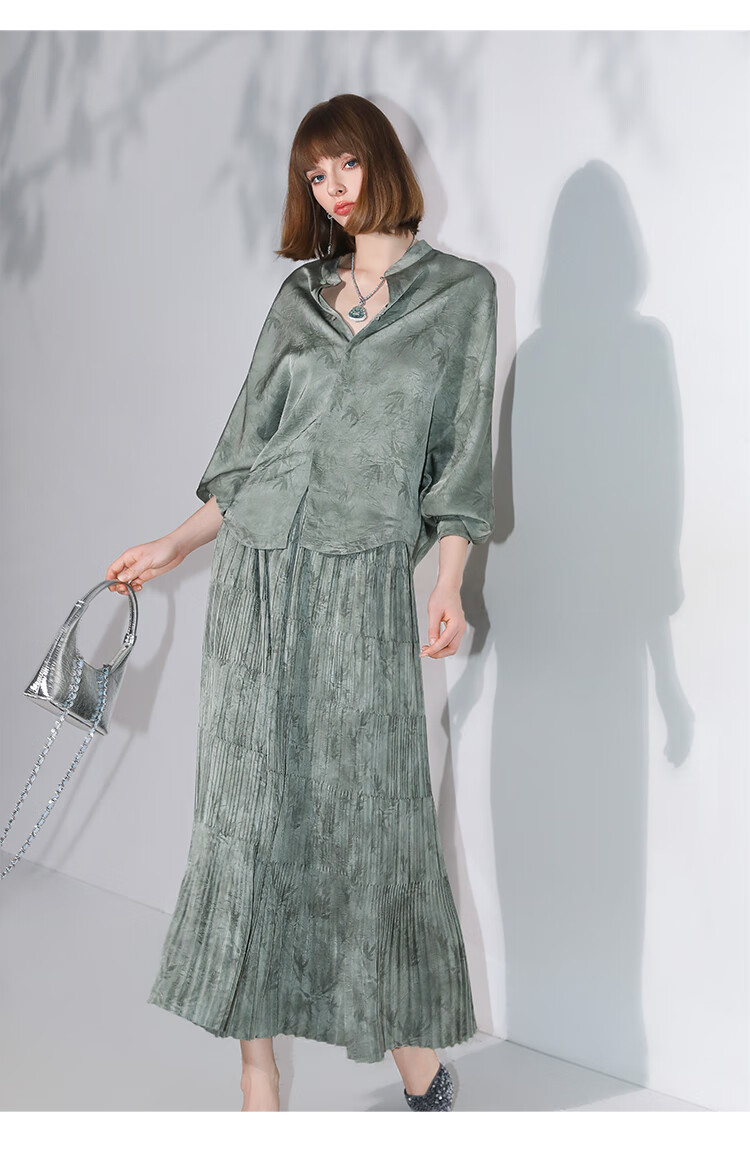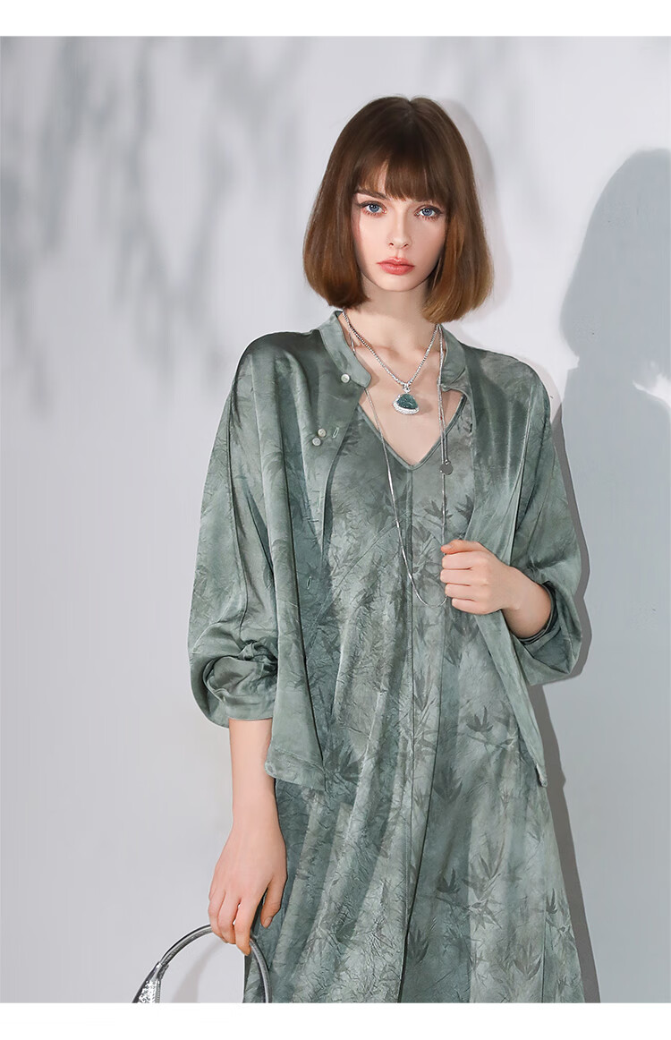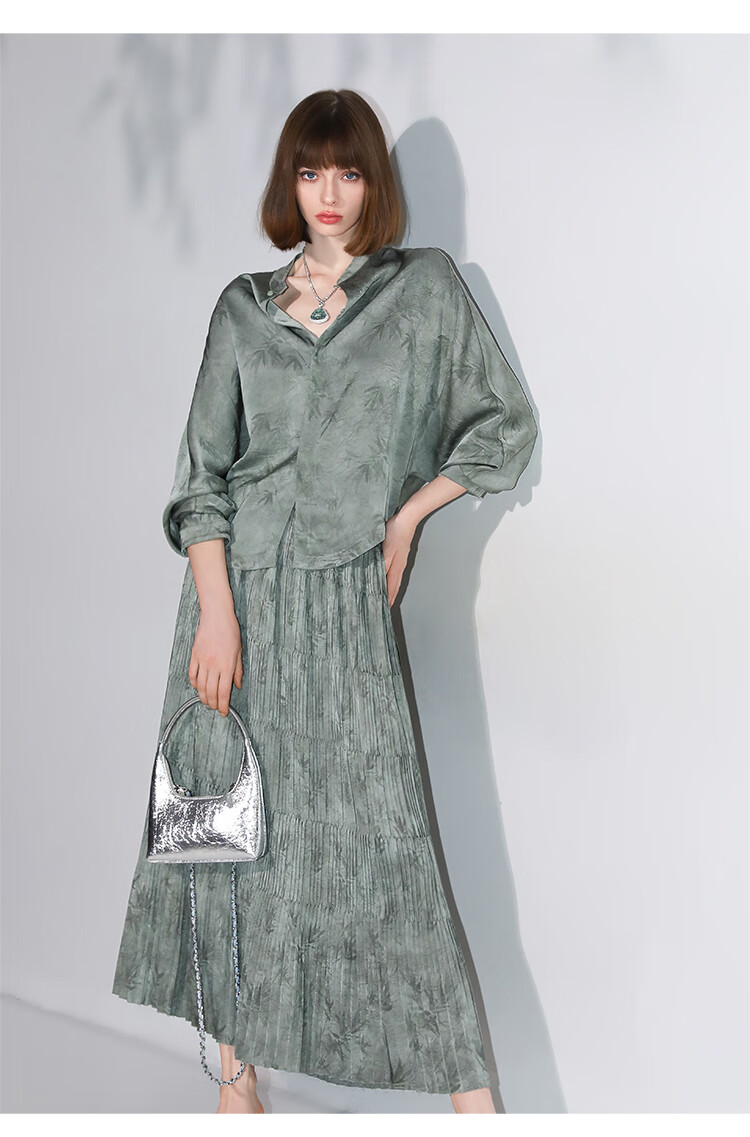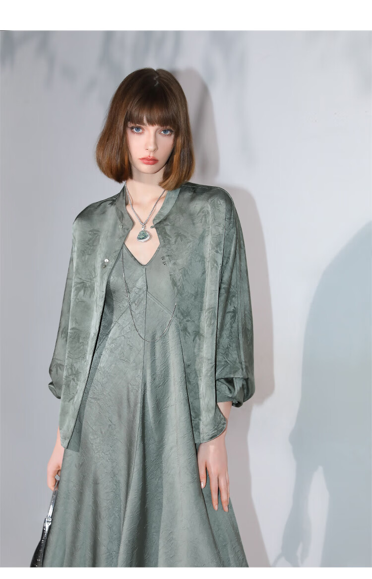 COCOBELLA[只此青绿]新中式竹叶印花衬衫[双面穿]立领上衣SR0052