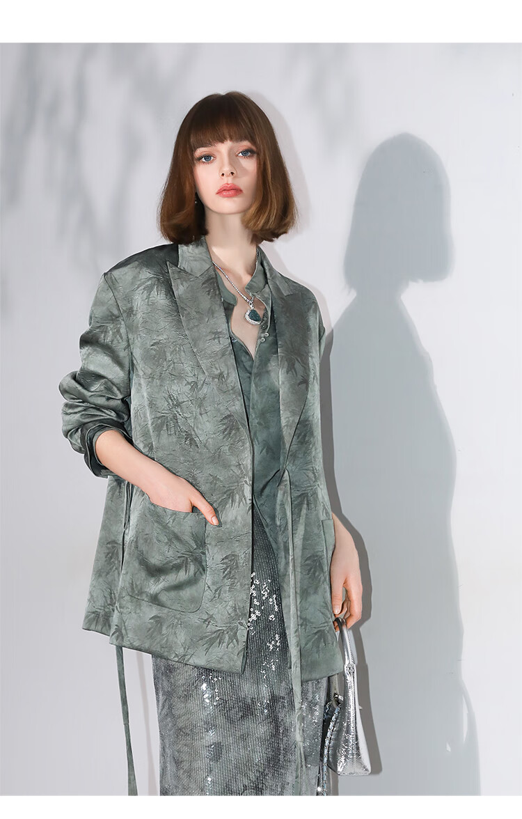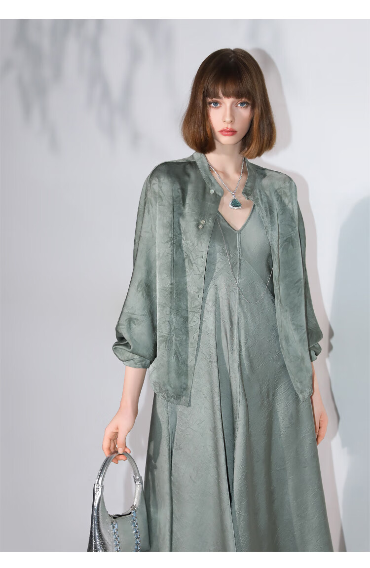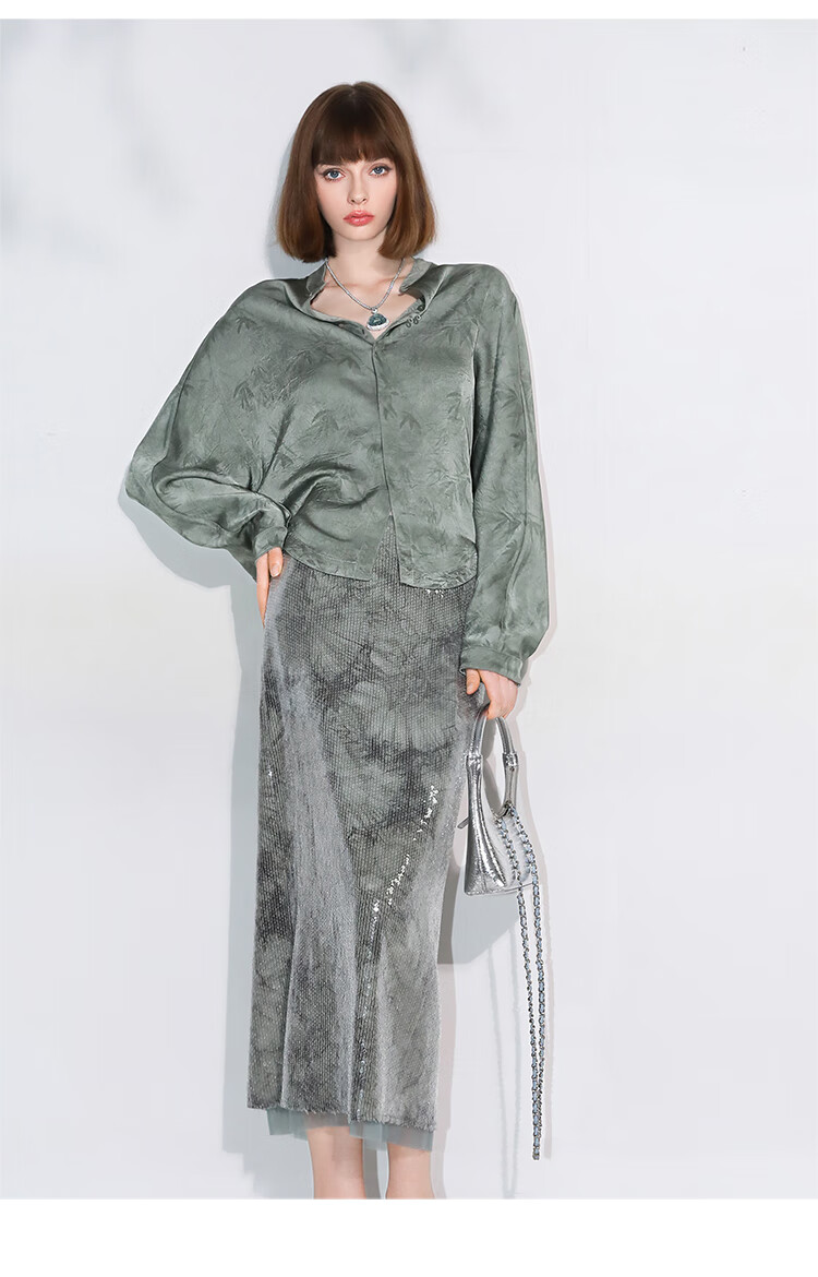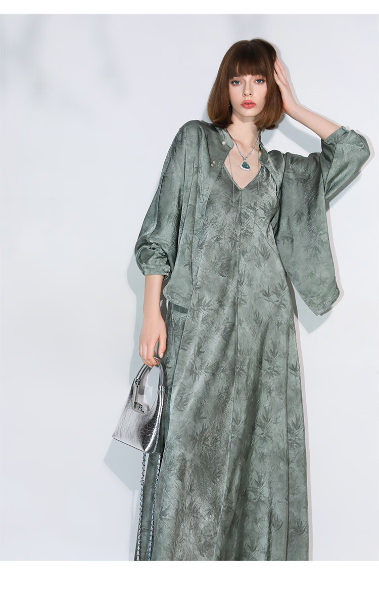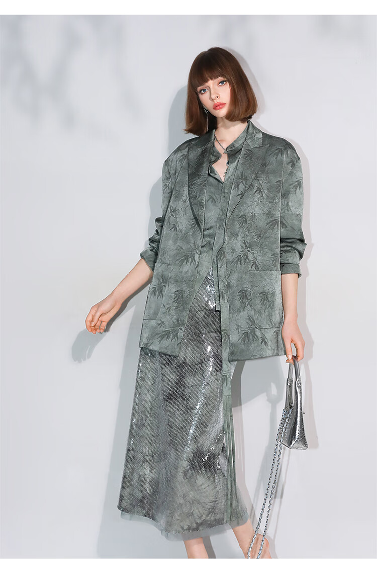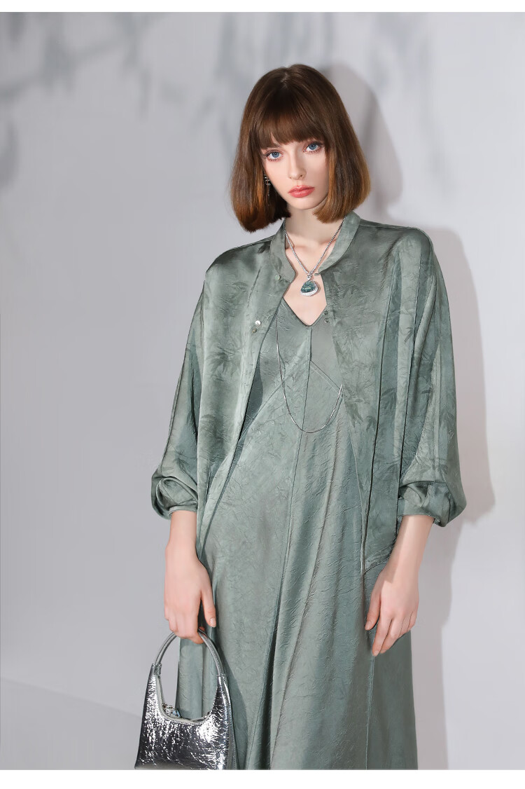 COCOBELLA[只此青绿]新中式竹叶印花衬衫[双面穿]立领上衣SR0052