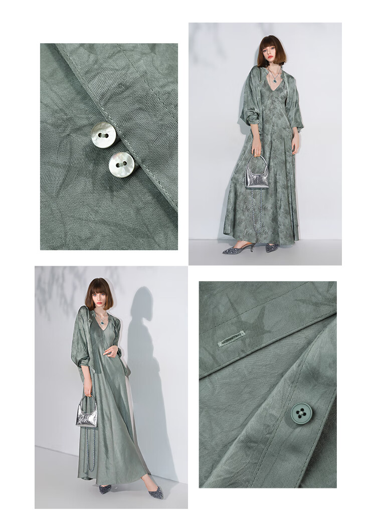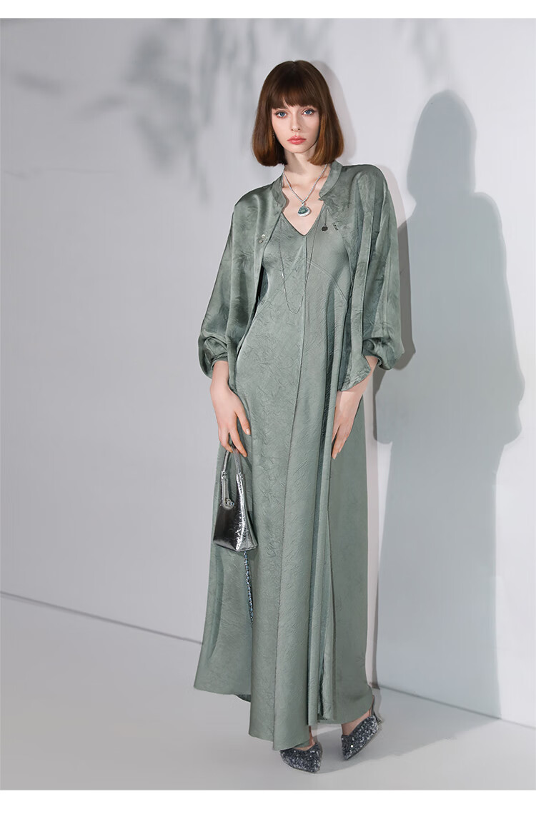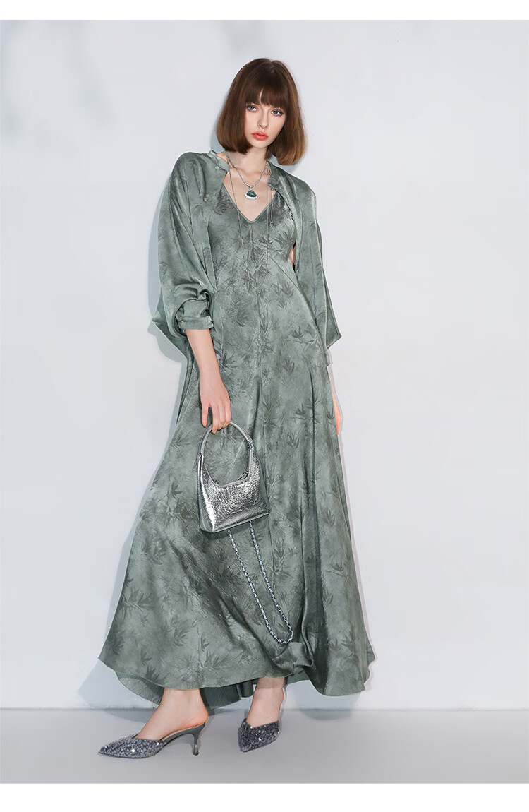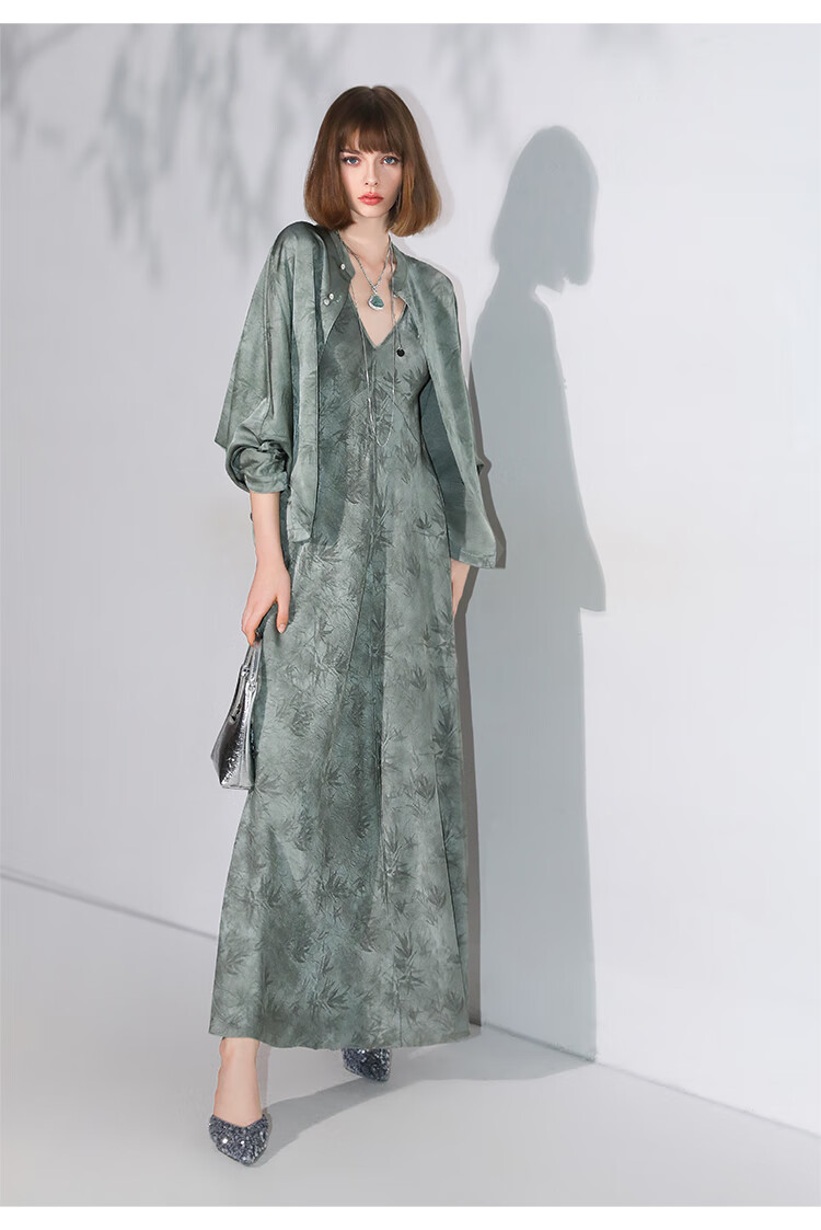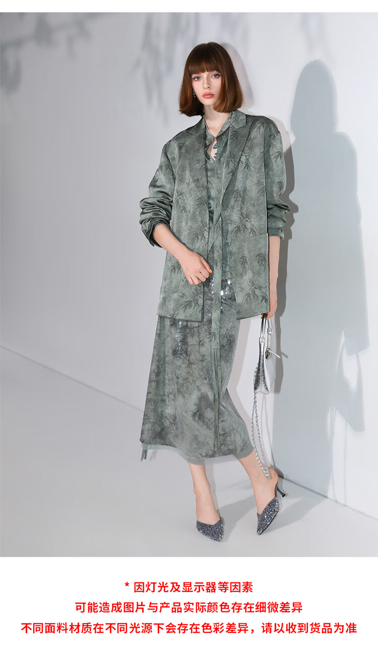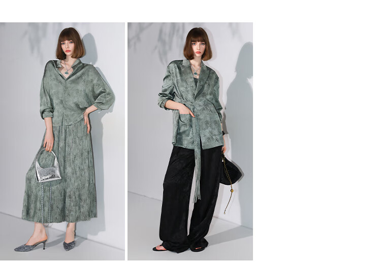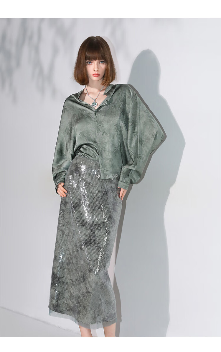 COCOBELLA[只此青绿]新中式竹叶印花衬衫[双面穿]立领上衣SR0052