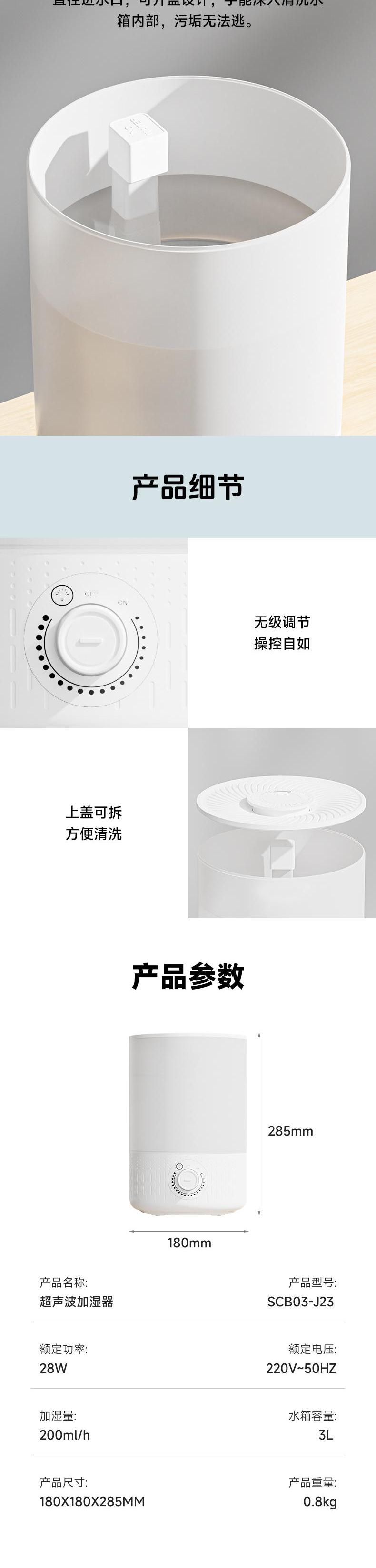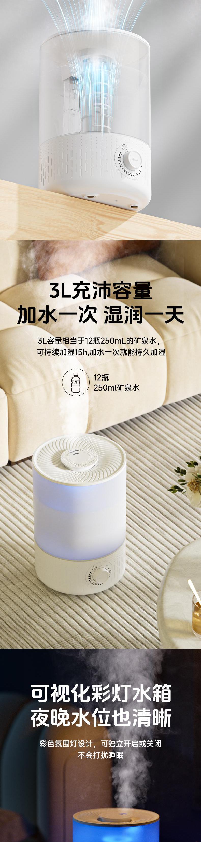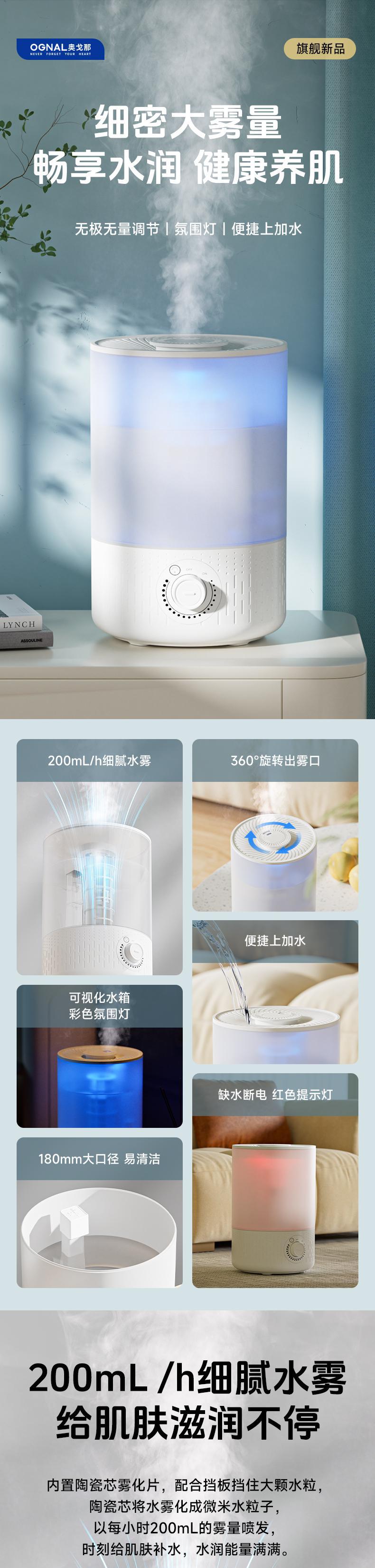 奥戈那 家用小型加湿器卧室客厅轻音孕妇婴儿大雾量大容量空气喷雾器 SCB03-J23