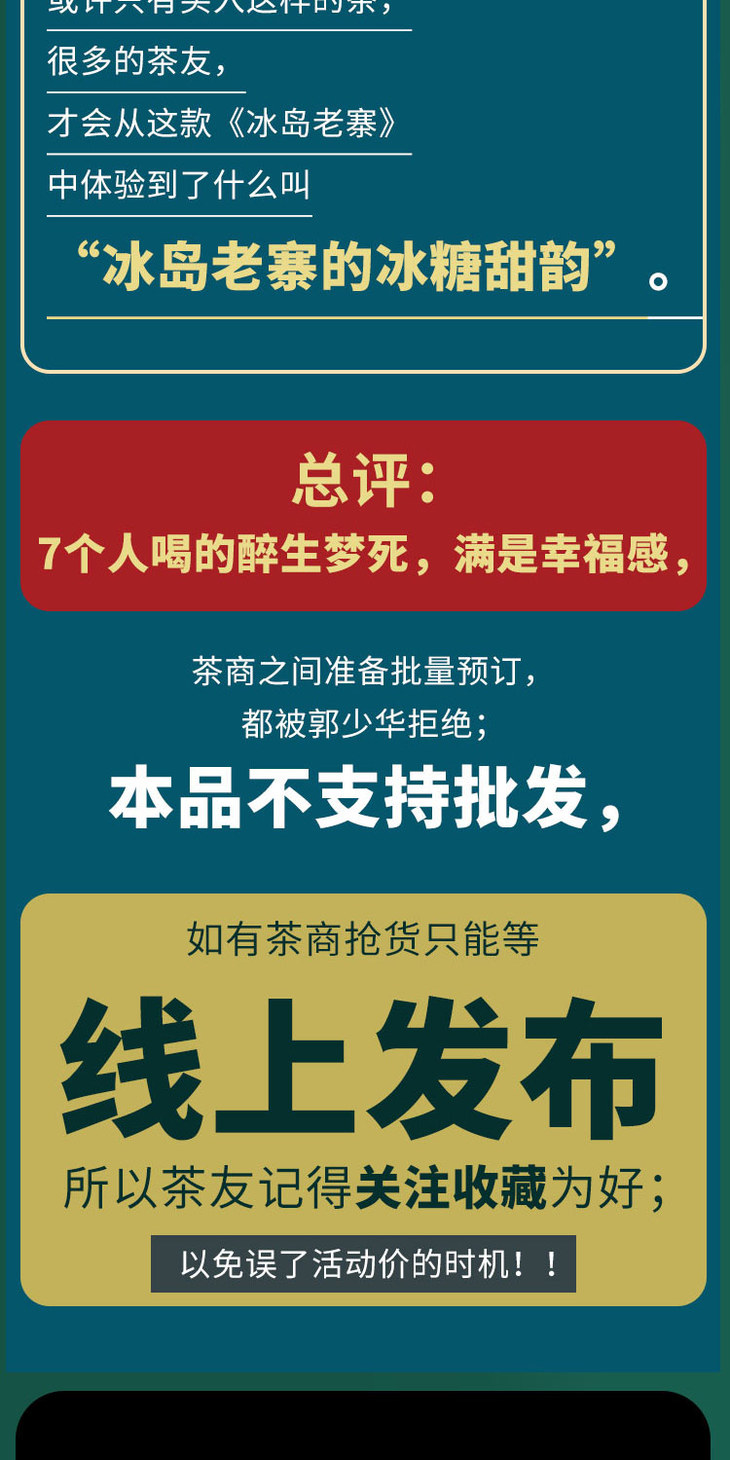 【藏剑山庄】云南普洱茶生茶 国骨系列2024春茶 媲美冰岛老寨茶王级!357克/片!