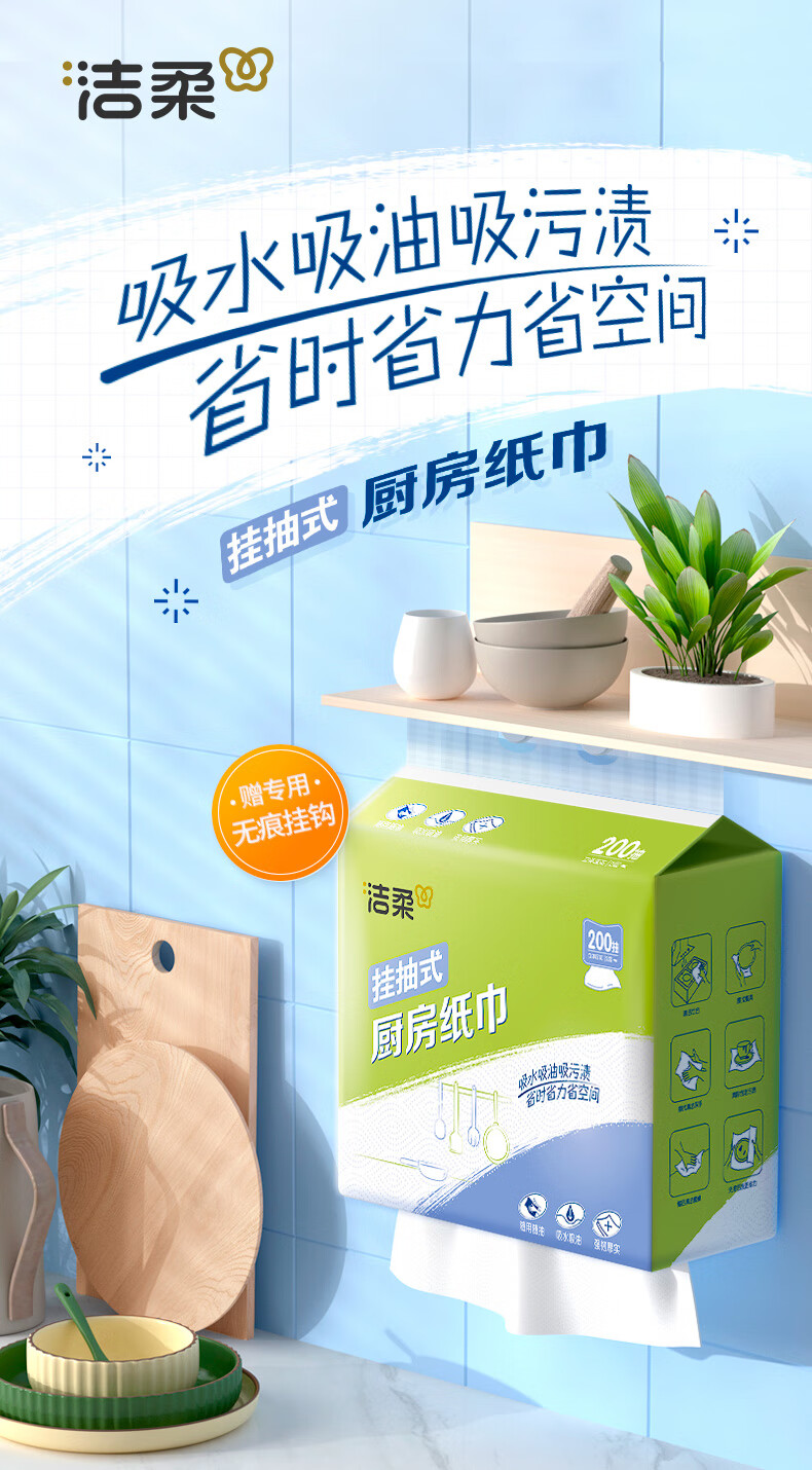 洁柔挂抽式厨房纸巾双层200抽 *4包(市集活动)