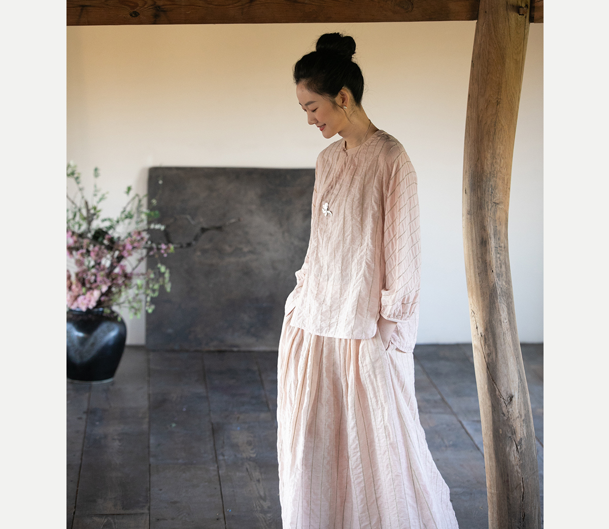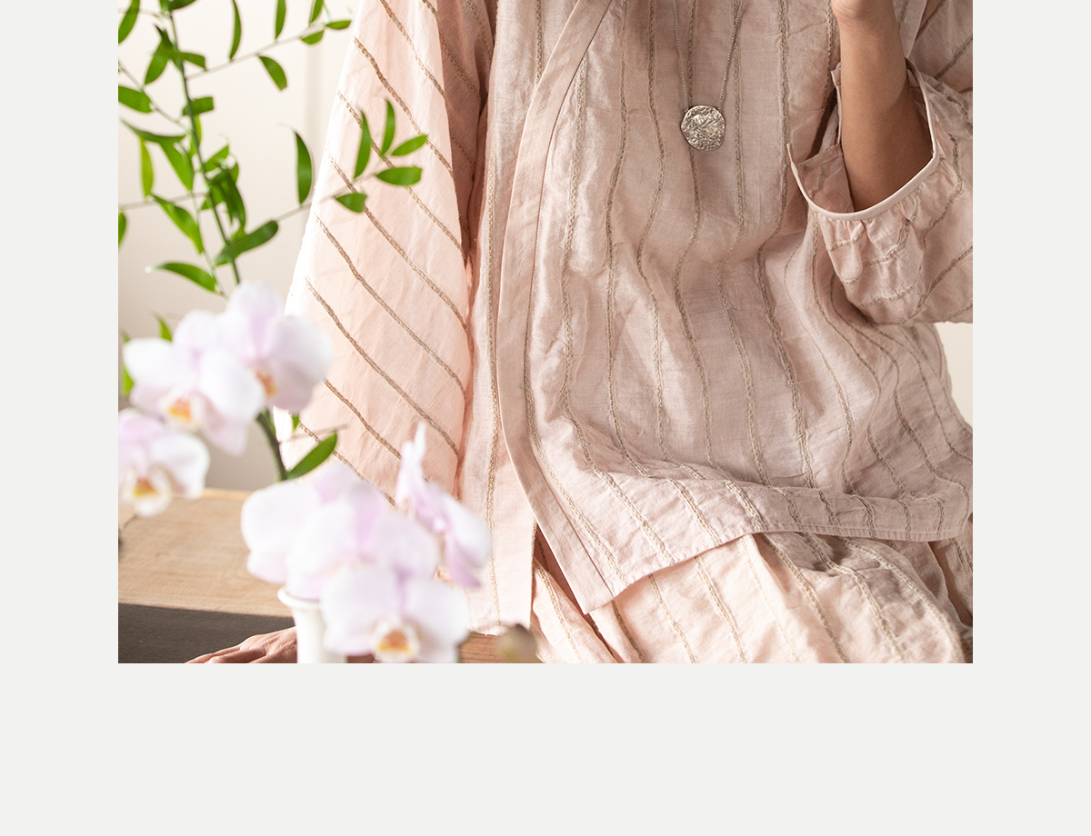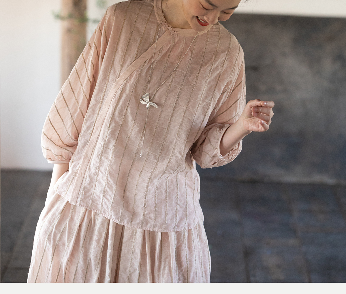 牧衣游原创 竖条纹柞丝棉衬衫炒色气质减龄轻薄上衣小衫新款 郁雾
