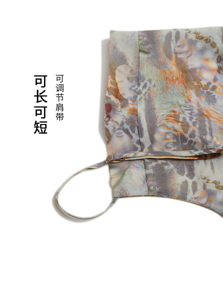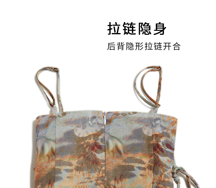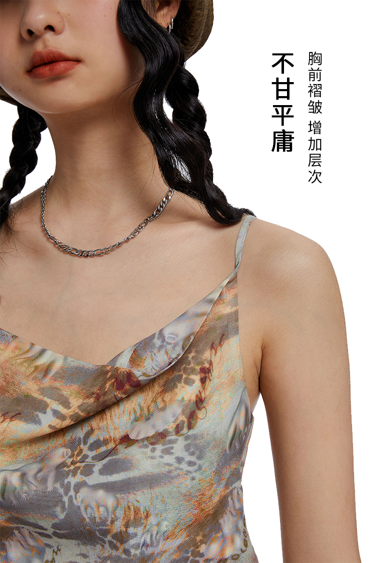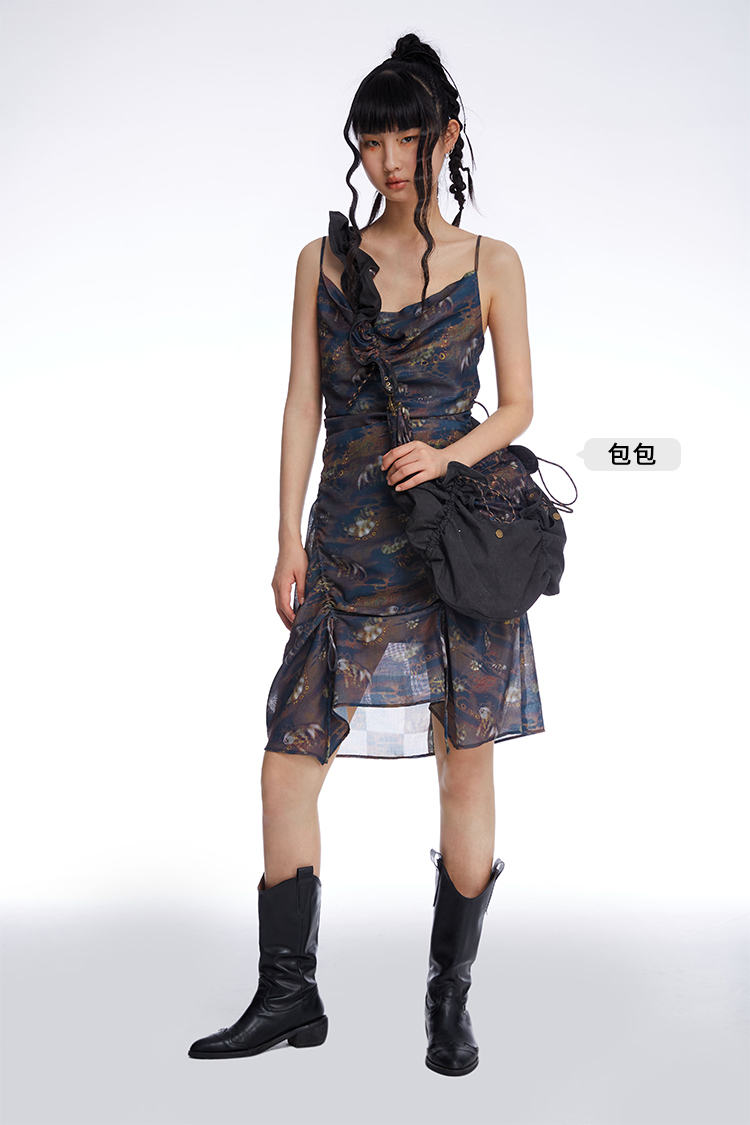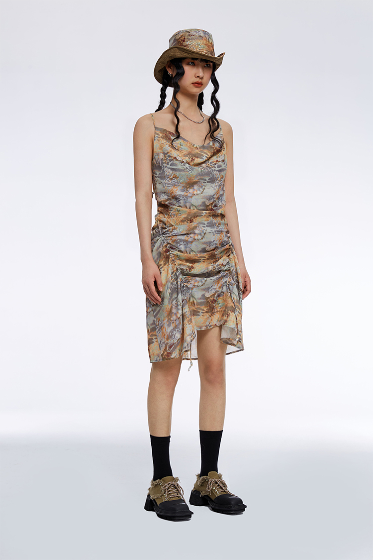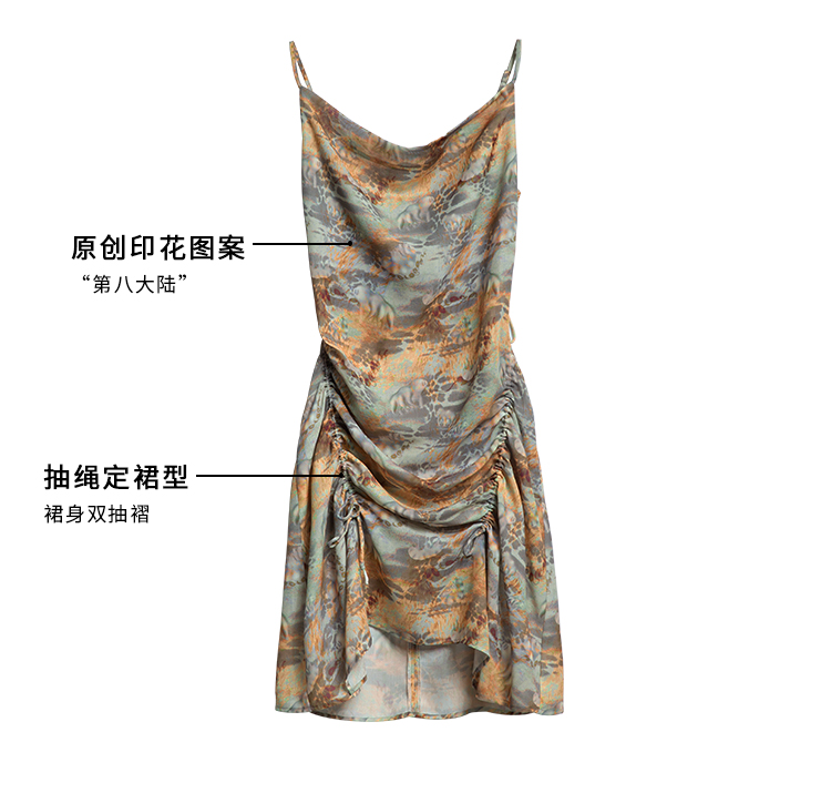 HOLONOMIC「第八大陆」原创印花设计感小众修身抽褶吊带连衣裙