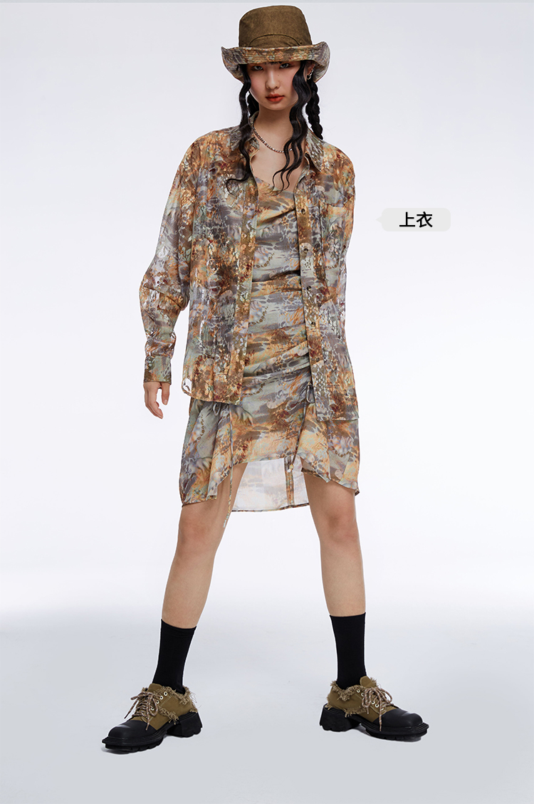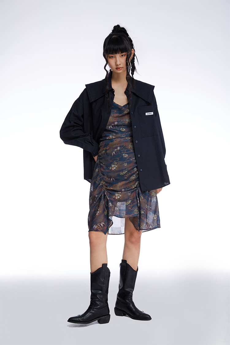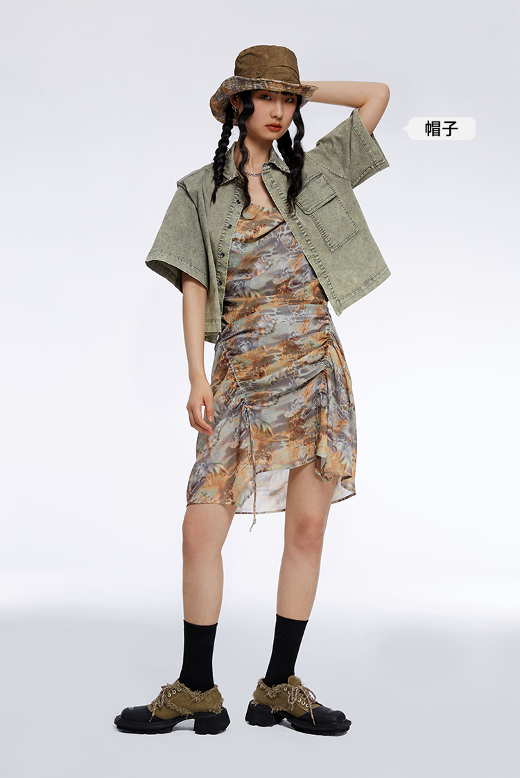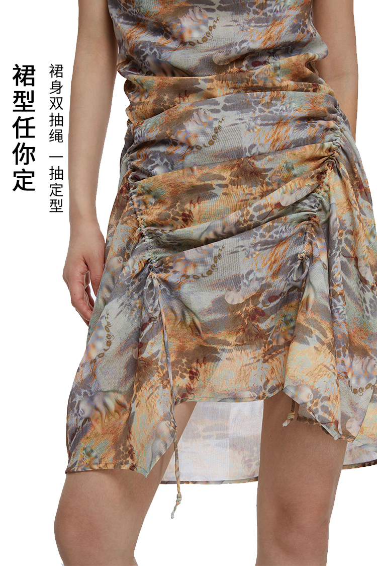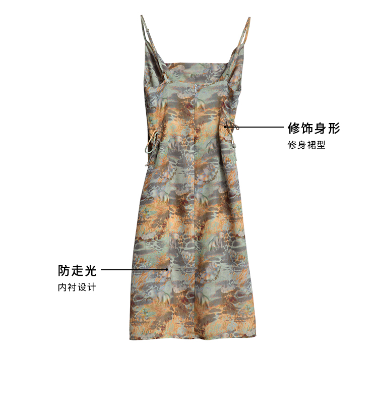 HOLONOMIC「第八大陆」原创印花设计感小众修身抽褶吊带连衣裙