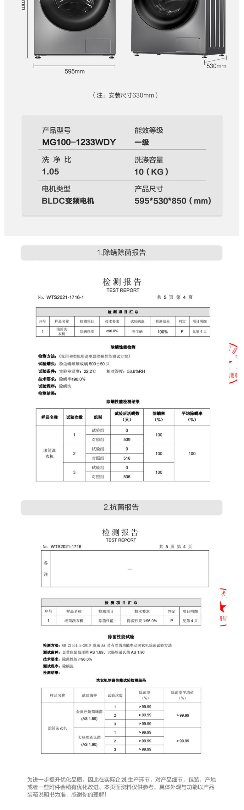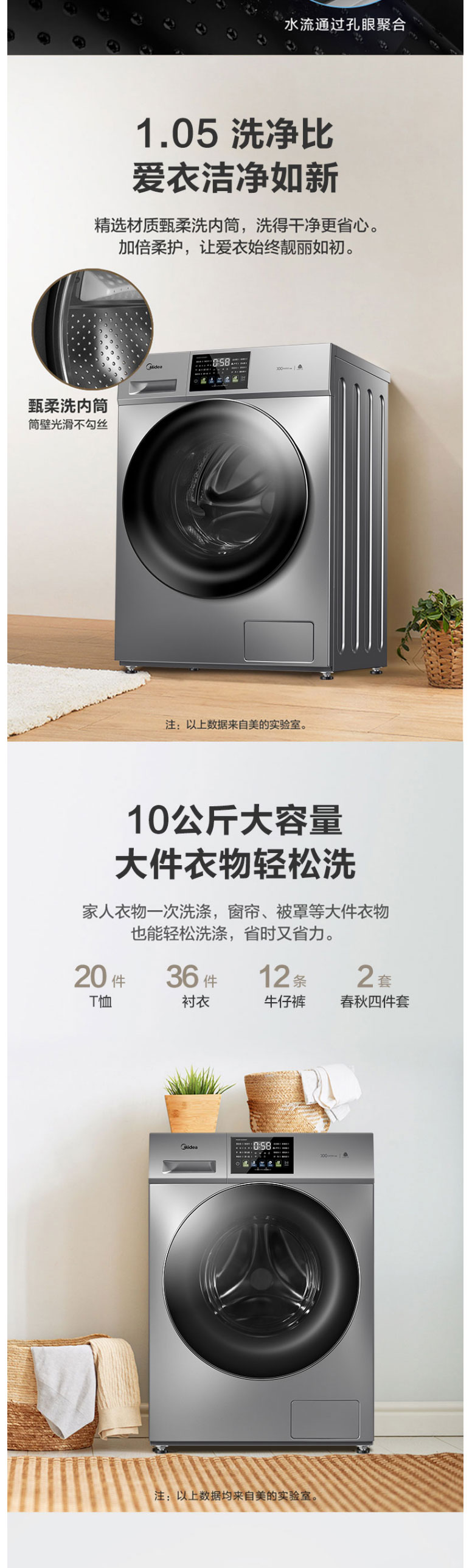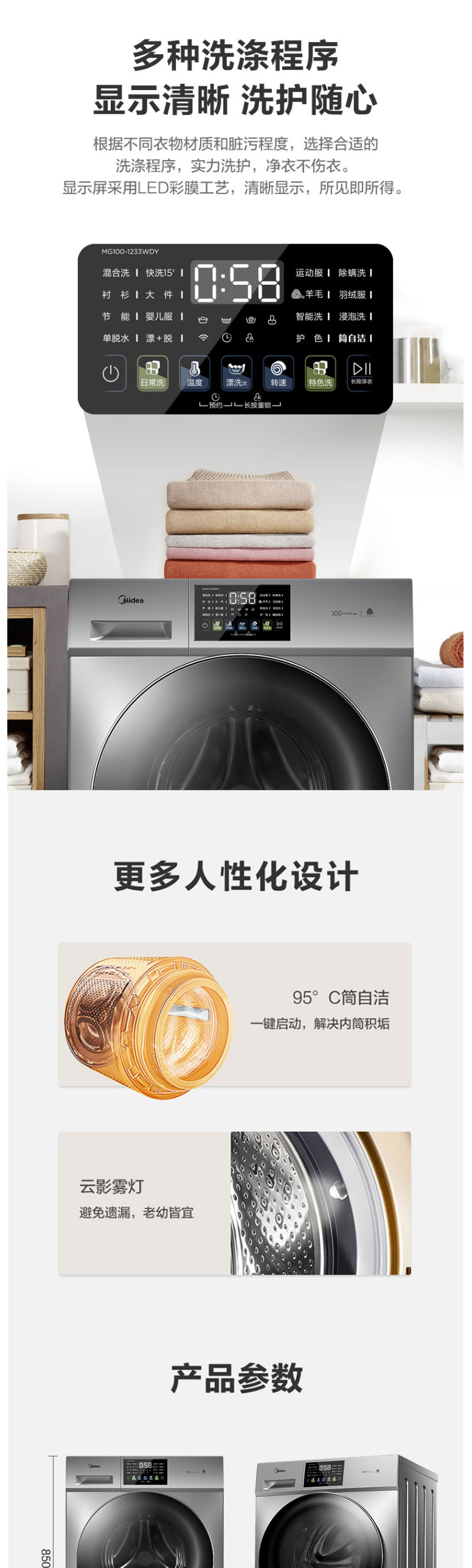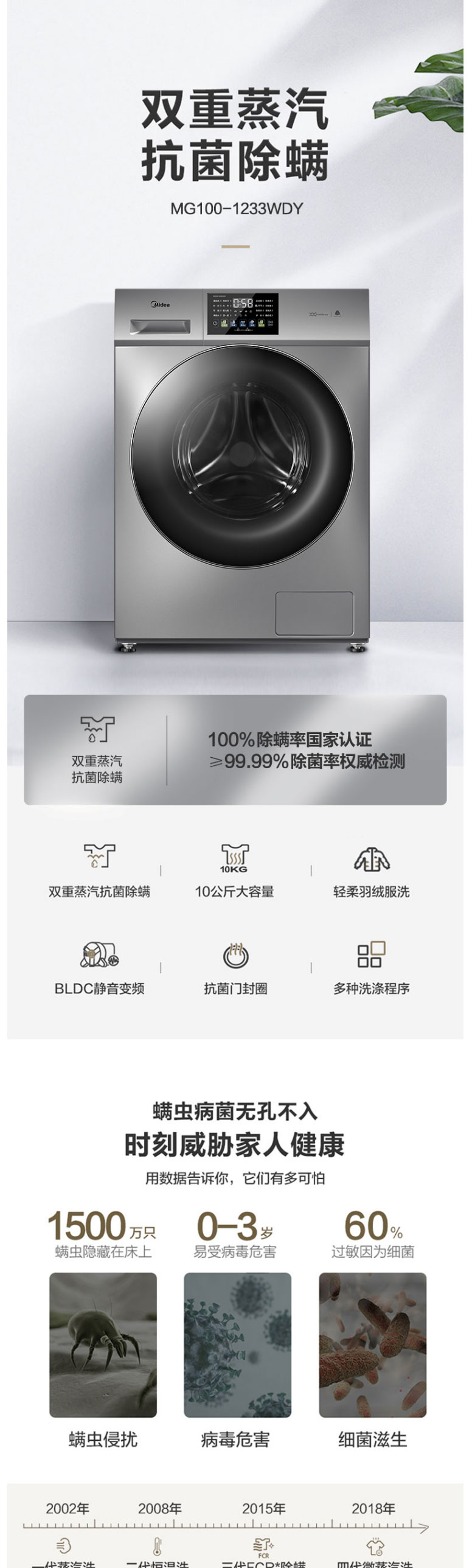 美的(Midea)MG100-1233WDY 10公斤 滚筒洗衣机 巴赫银