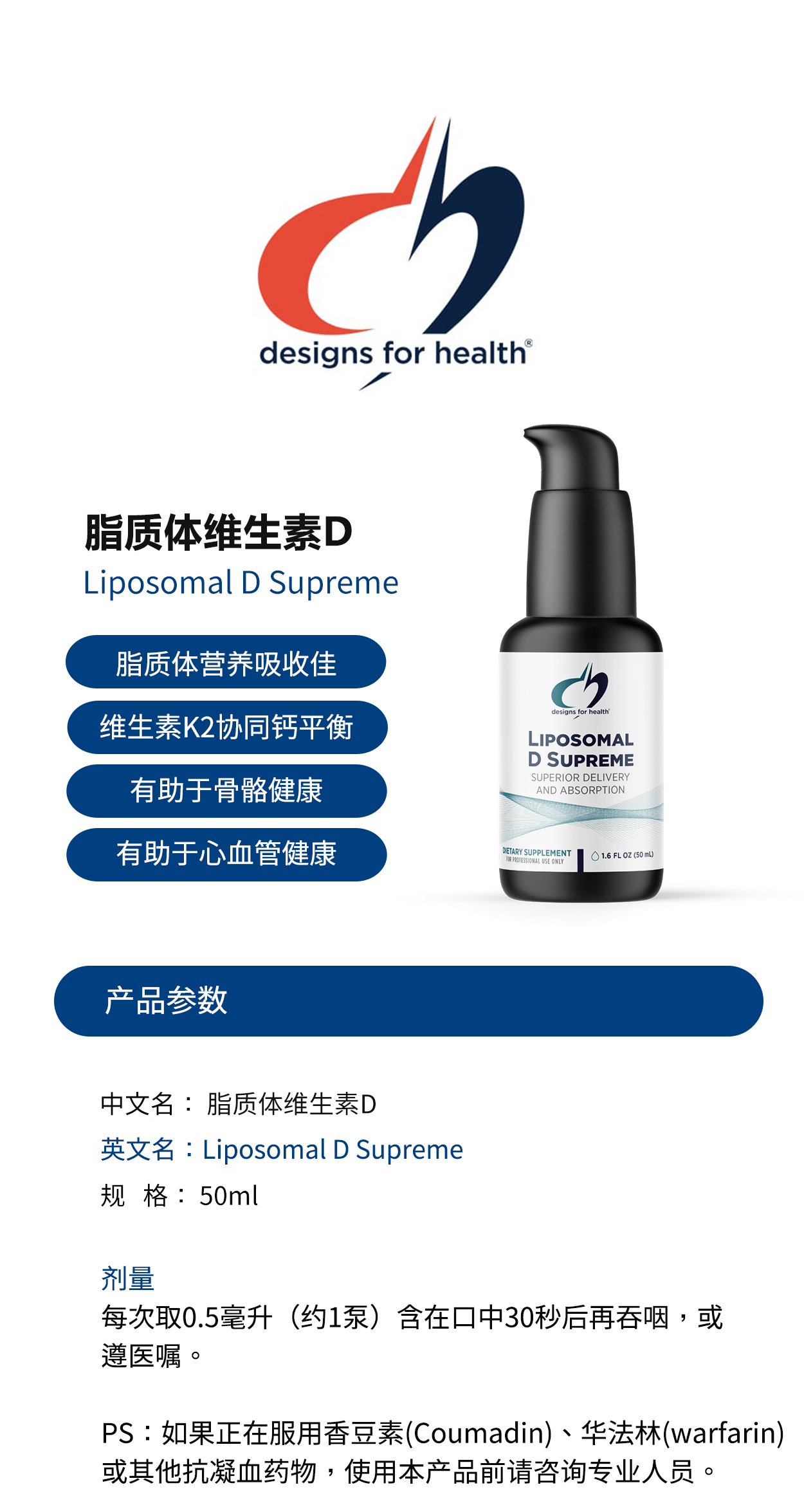 美国DFH 脂质体维生素D Liposomal D Supreme 维生素D design for health 50ml/瓶