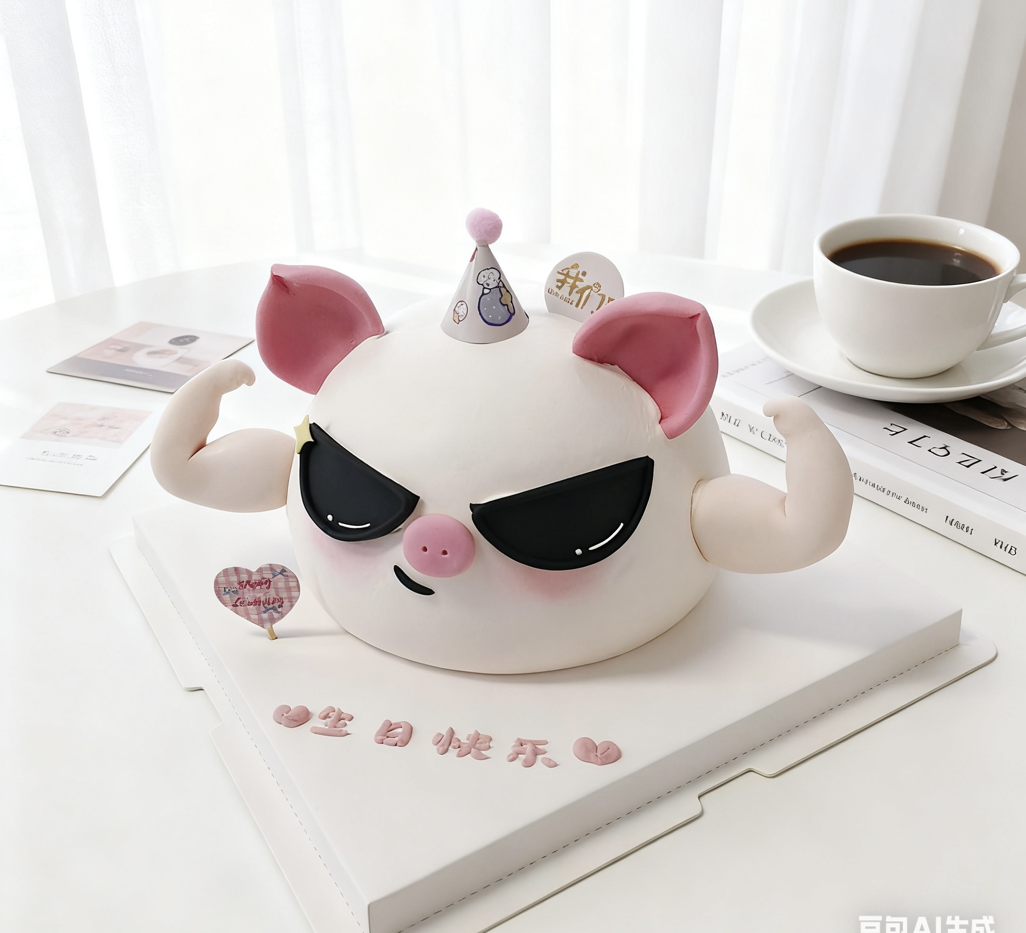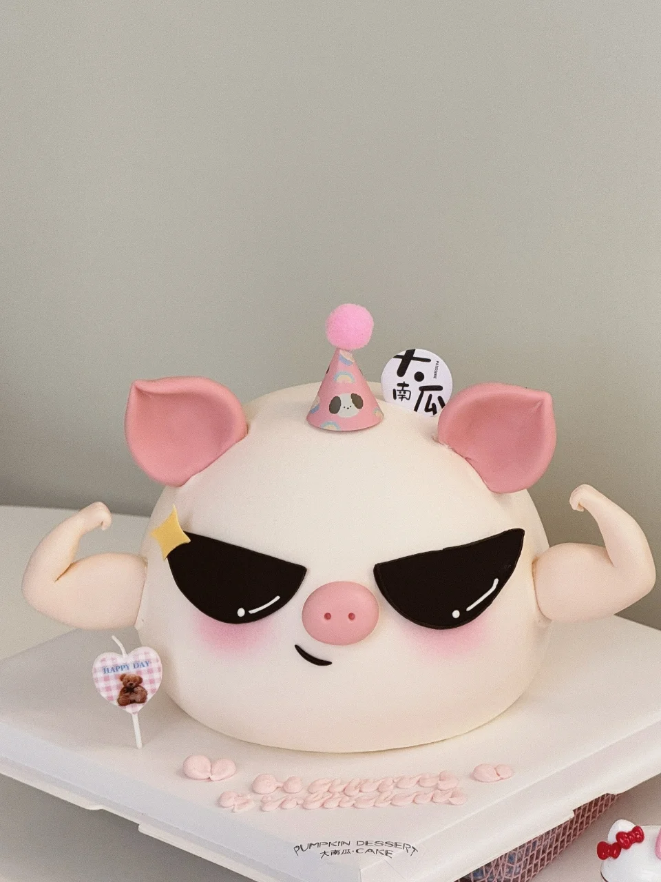 strong健身猪猪男孩女孩墨镜耍酷可爱卡通蛋糕-低糖处理无添加