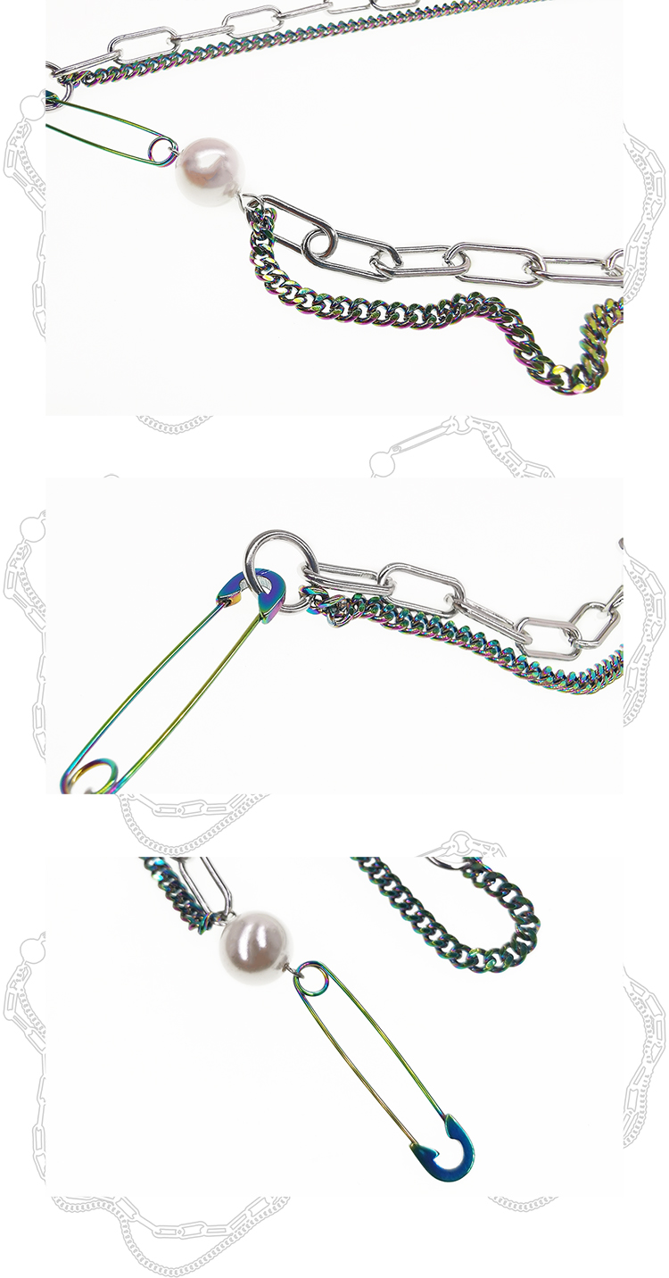 QZC2000 朋克暗黑风梦幻珍珠铆钉吊坠串珠磁铁吸扣项链男女同款