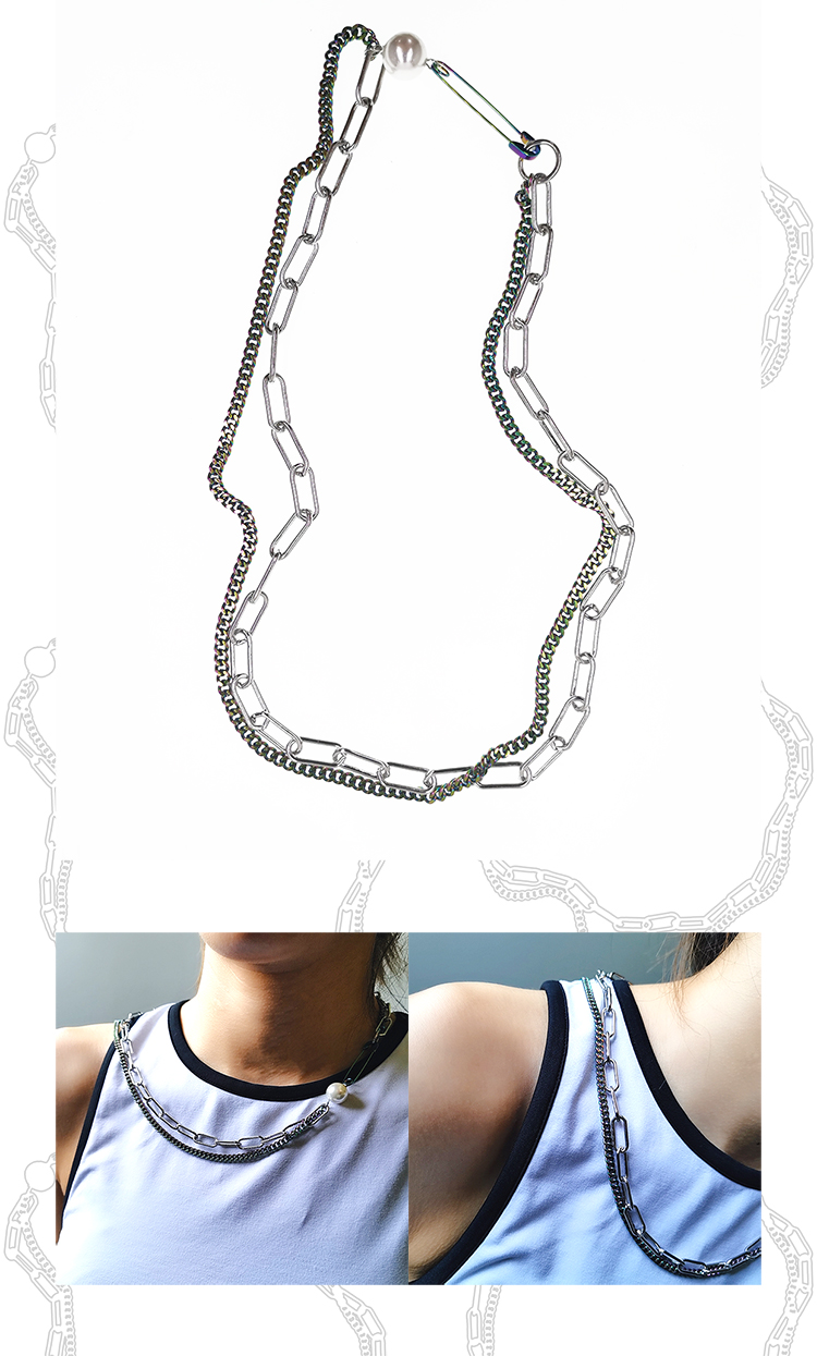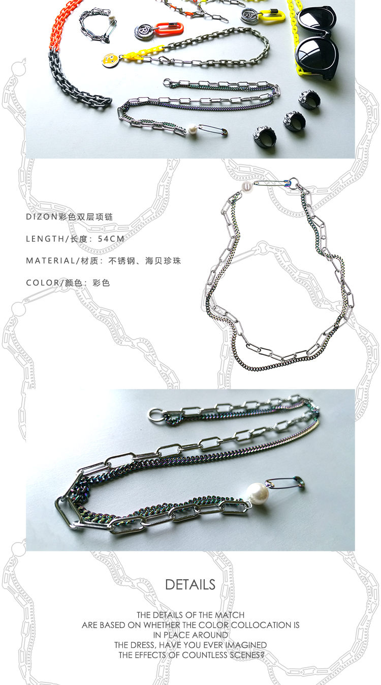 DIZON原创 珍珠项链 潮牌说唱嘻哈小众双层钛钢项链 国潮