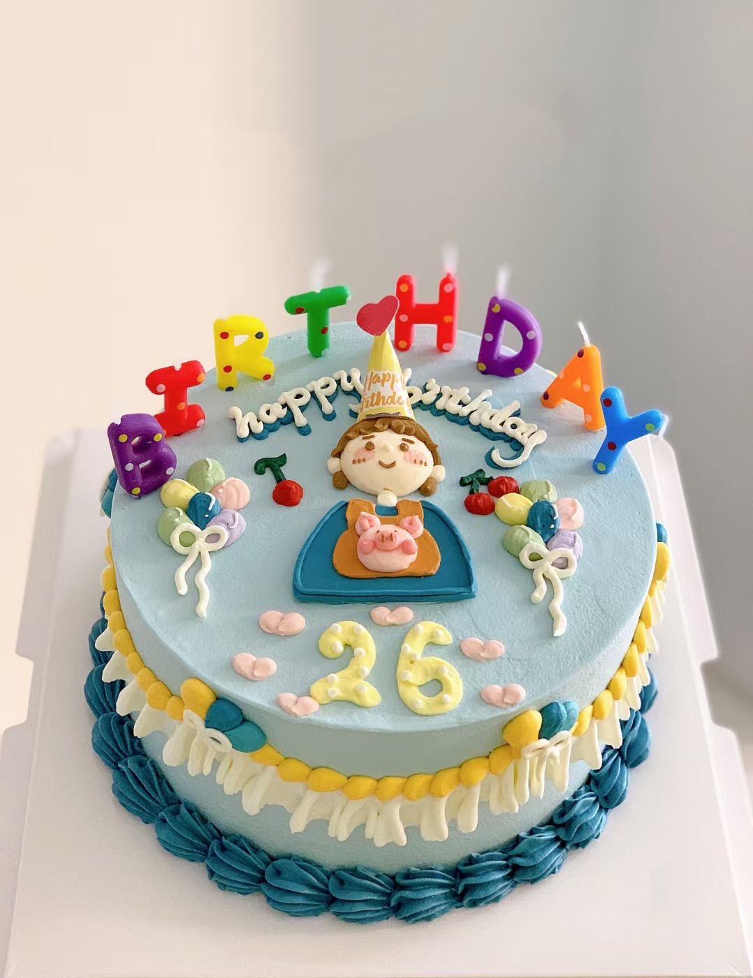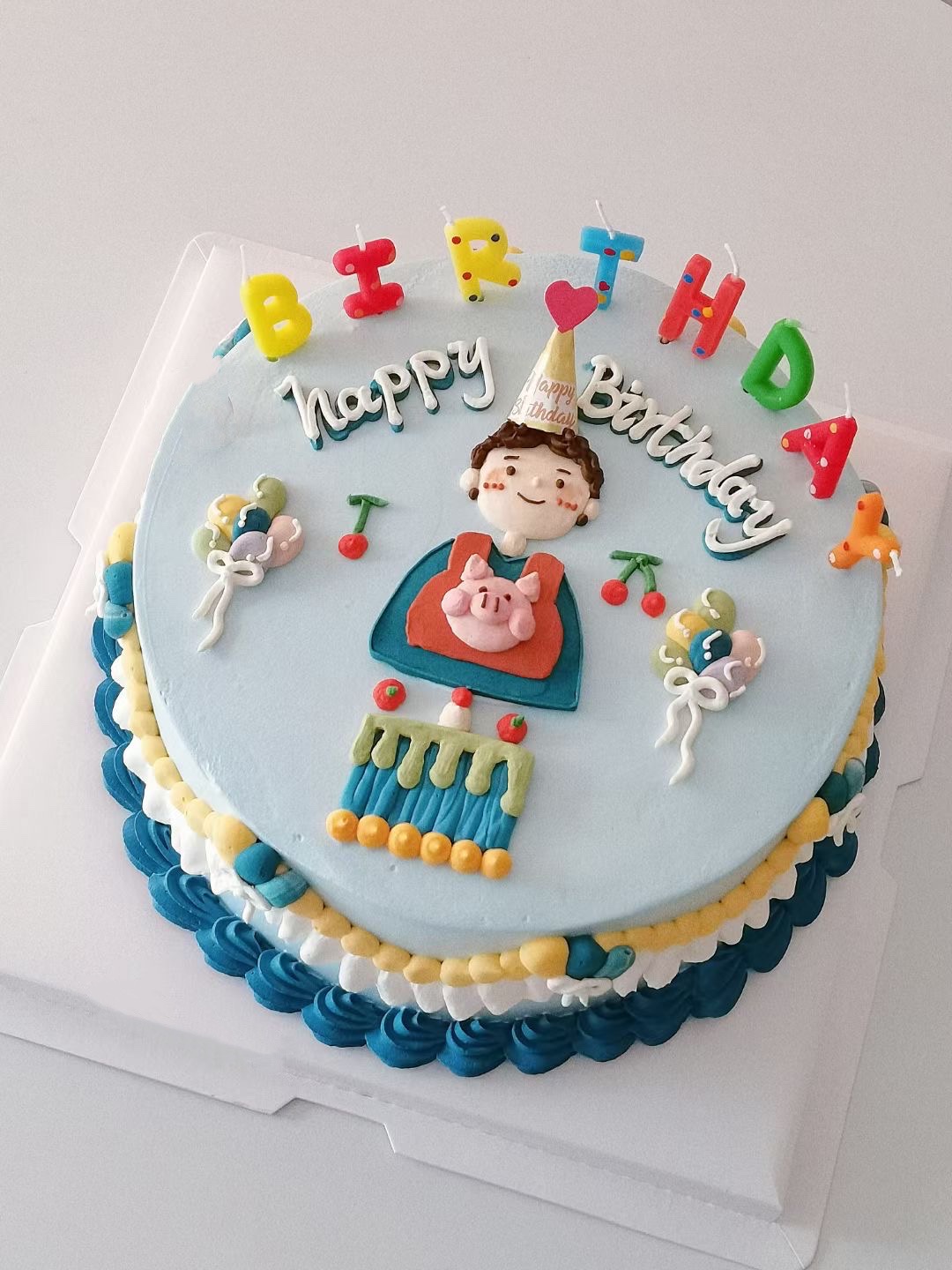 彩色男生手绘复古蛋糕-低糖处理无添加