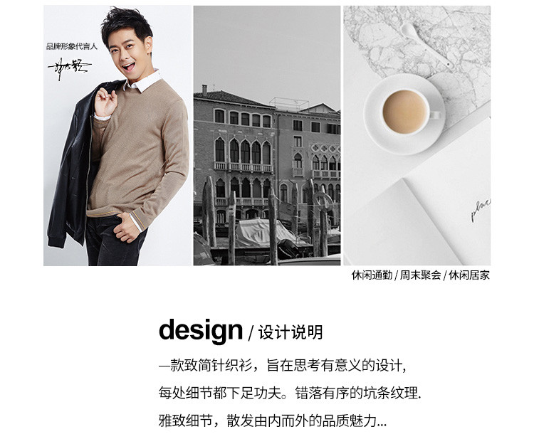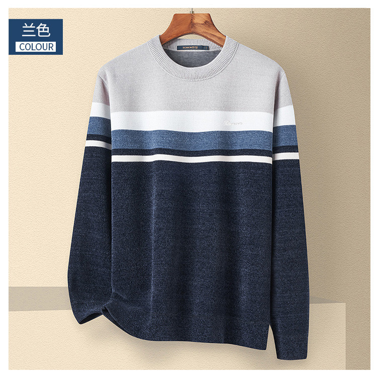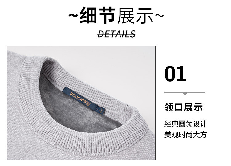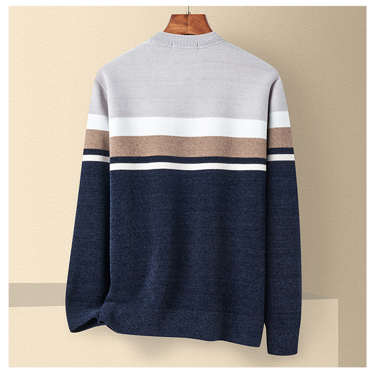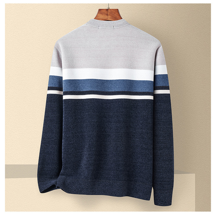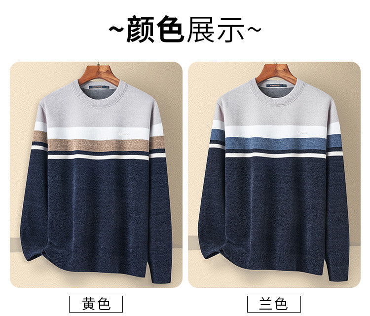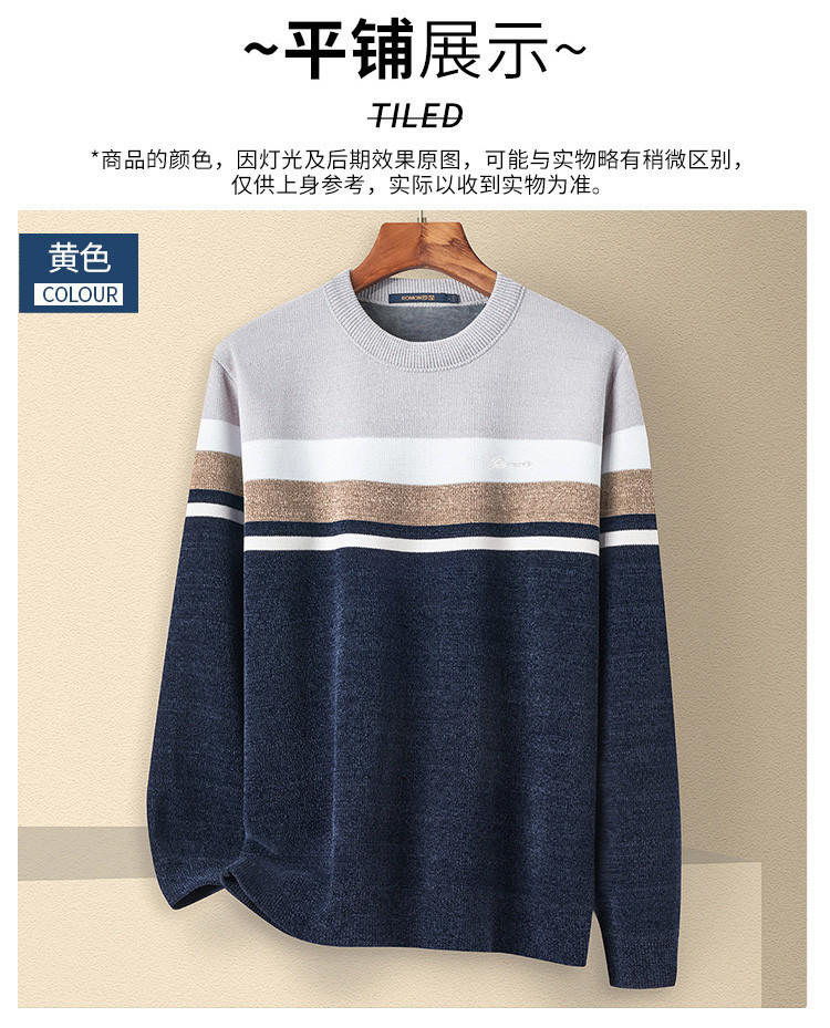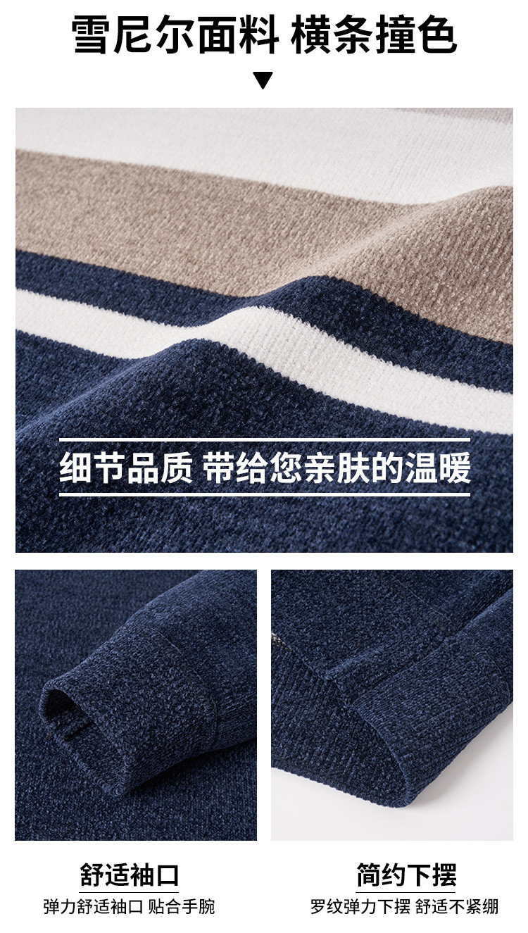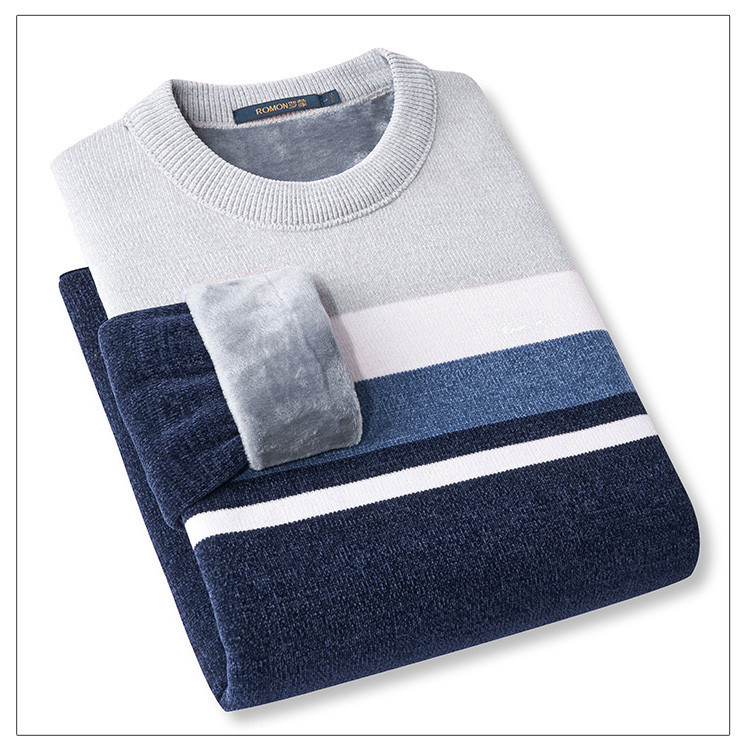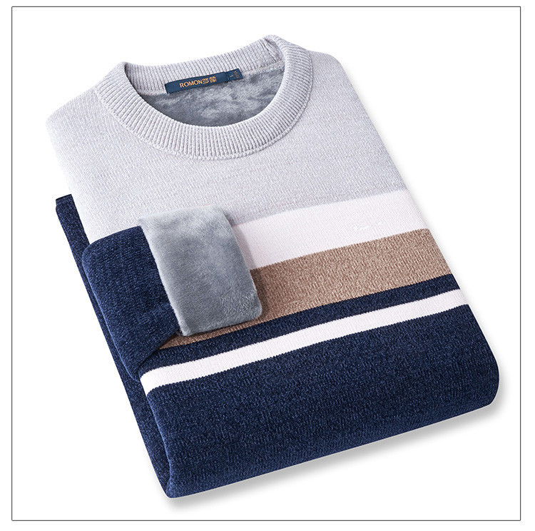 【加绒加厚】罗蒙男士秋冬撞色横条加绒加厚男毛衣保暖舒适男士针织衫