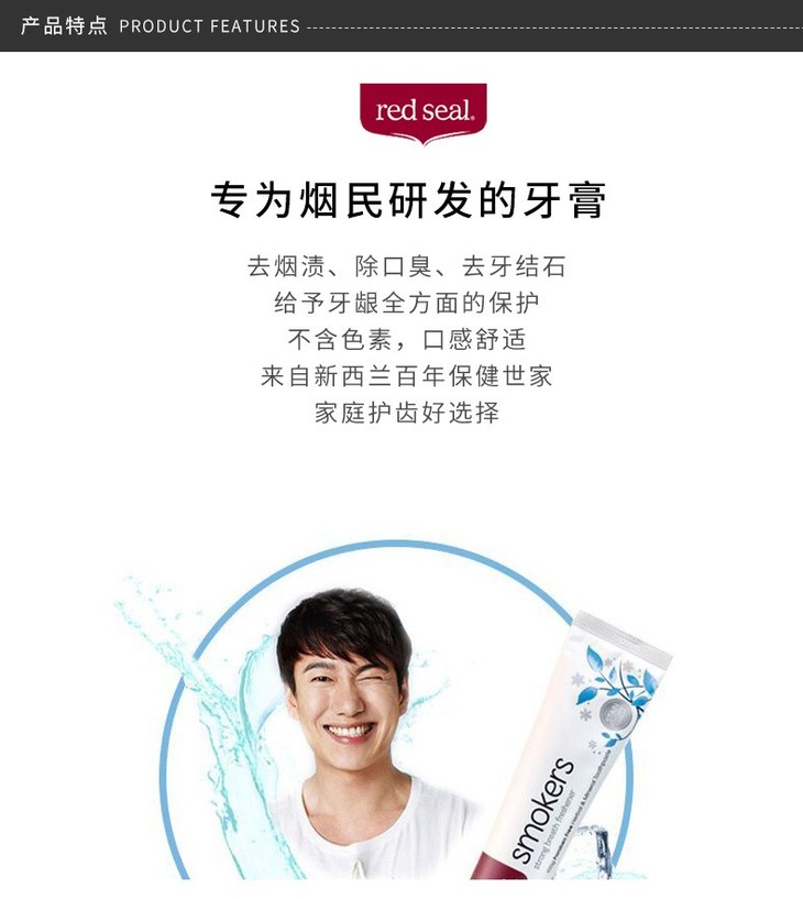 一口黄牙怎么办?用了red seal 这款去烟渍美白清新口气牙膏,还你一口洁白的牙齿~~ 纯天然原料萃取,感受自然纯净力~ 亮晶晶的牙齿就是这么简单~