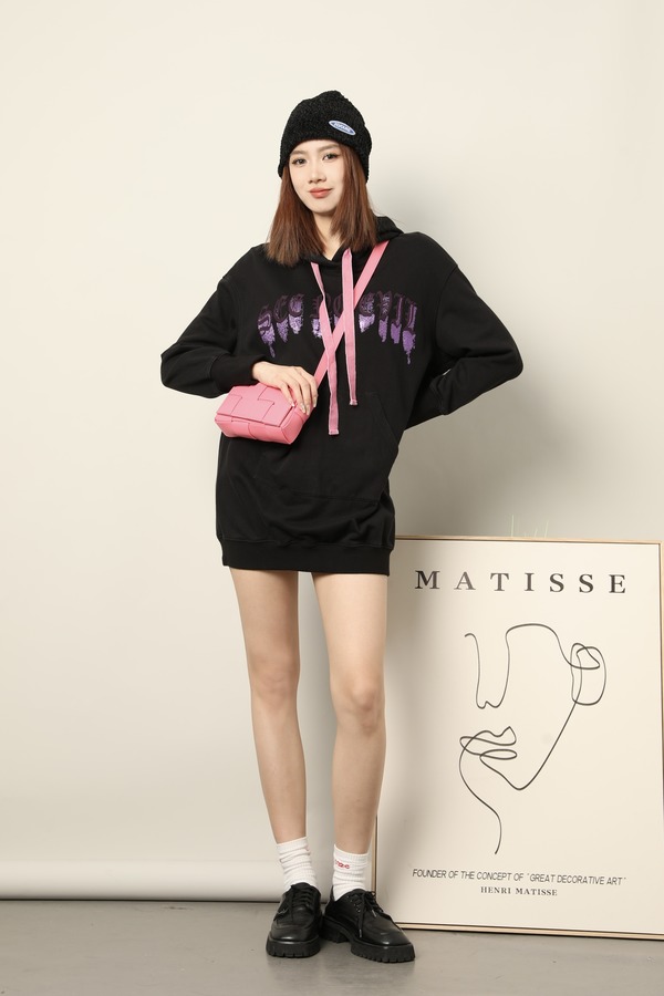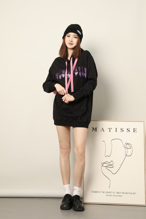 LNNNS 黑色刺绣撞色长卫衣 17824