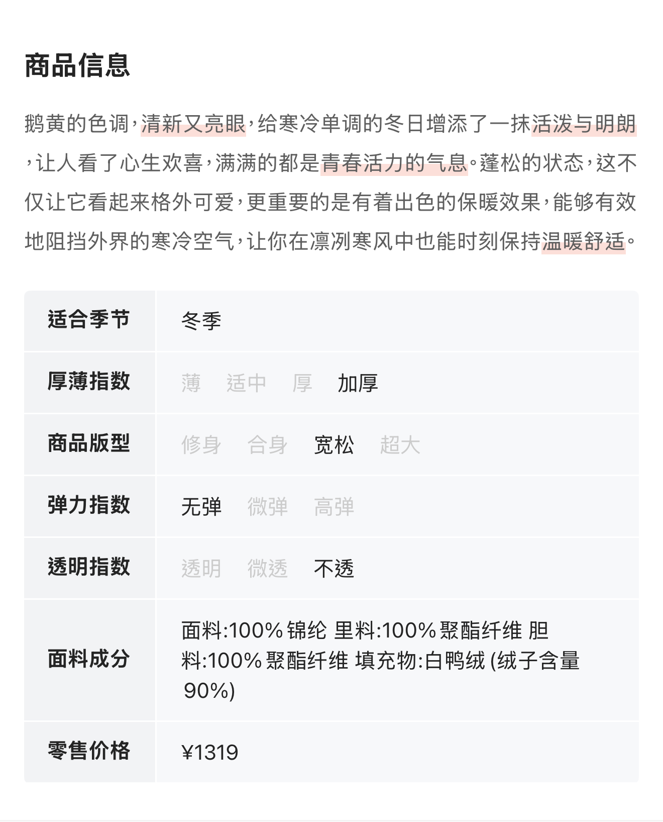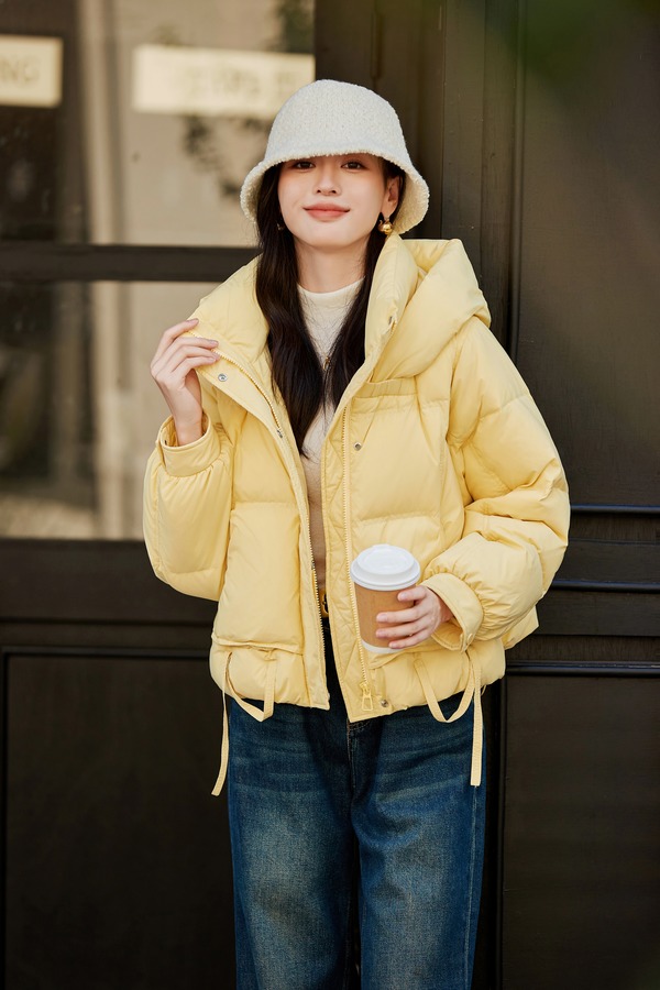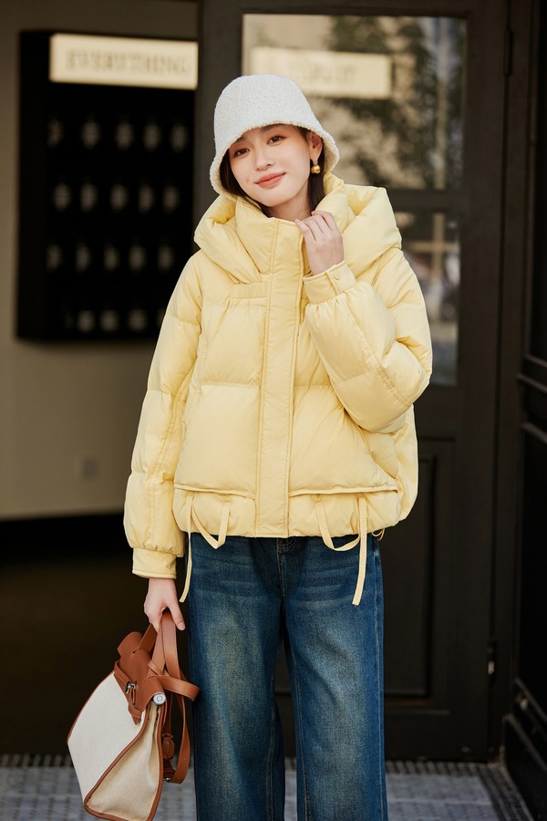 LNNNS 鹅黄蓬松连帽休闲羽绒服外套 21774