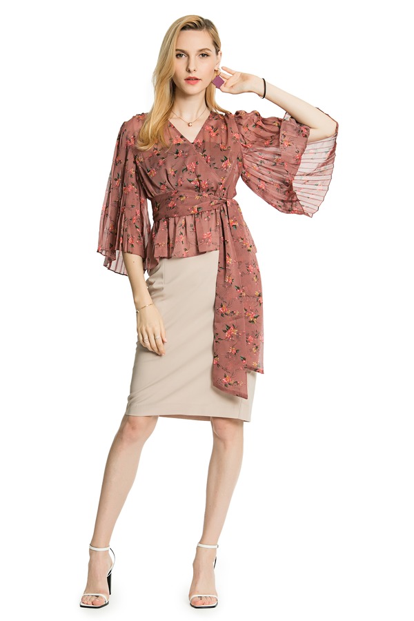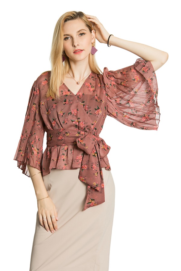 OCTAVIA 半透明裹身印花短上衣 3235