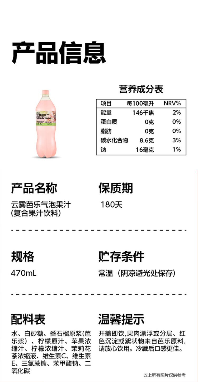 柠檬共和国 云雾芭乐复合气泡水果汁饮料470ml*15瓶 整箱装