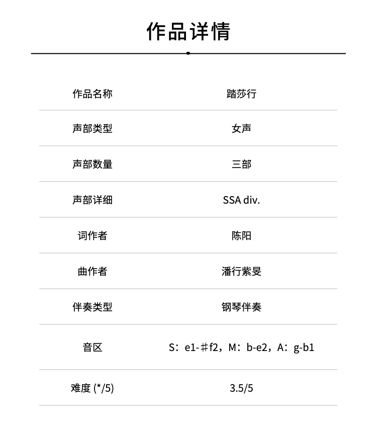踏莎行(潘行紫旻曲) 同声三部无伴奏 正版合唱乐谱「本作品已支持自助发谱 首次下单请注册会员 详询客服」