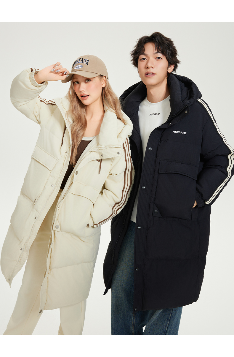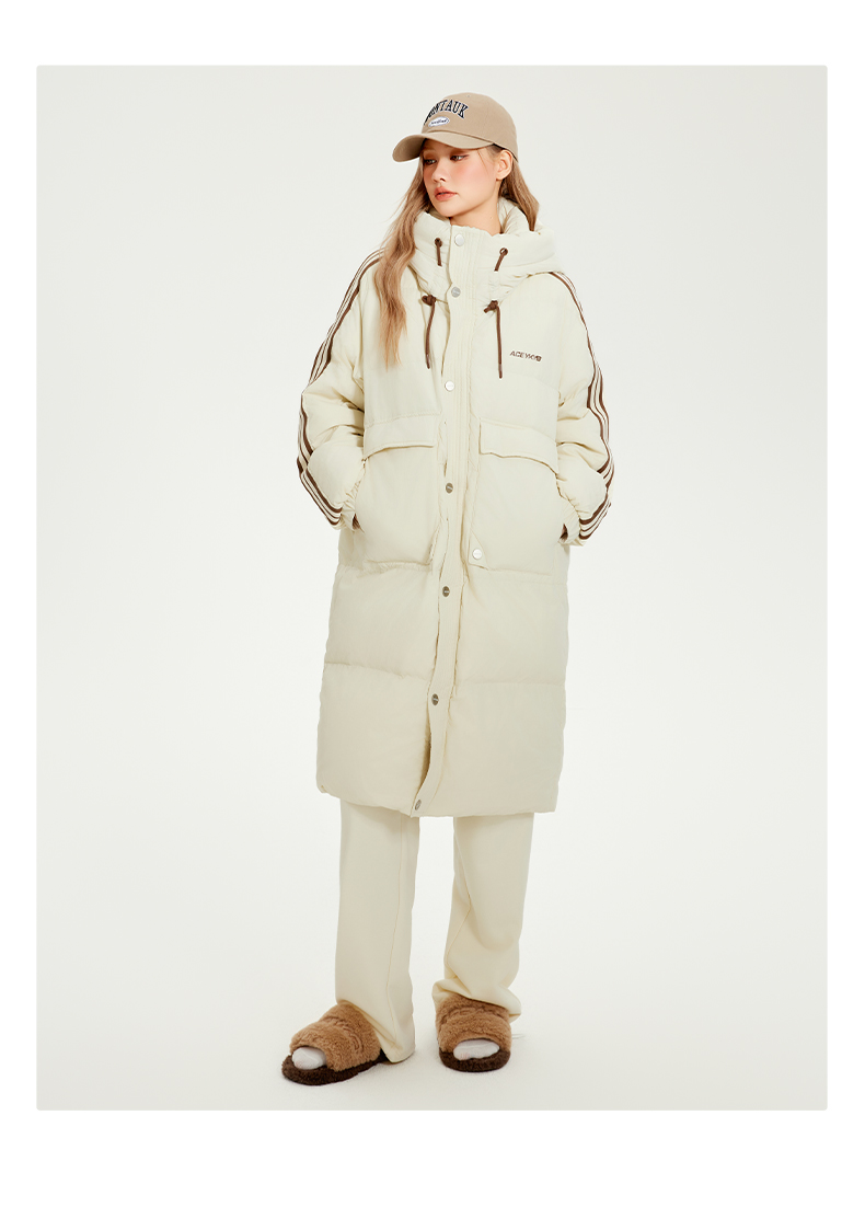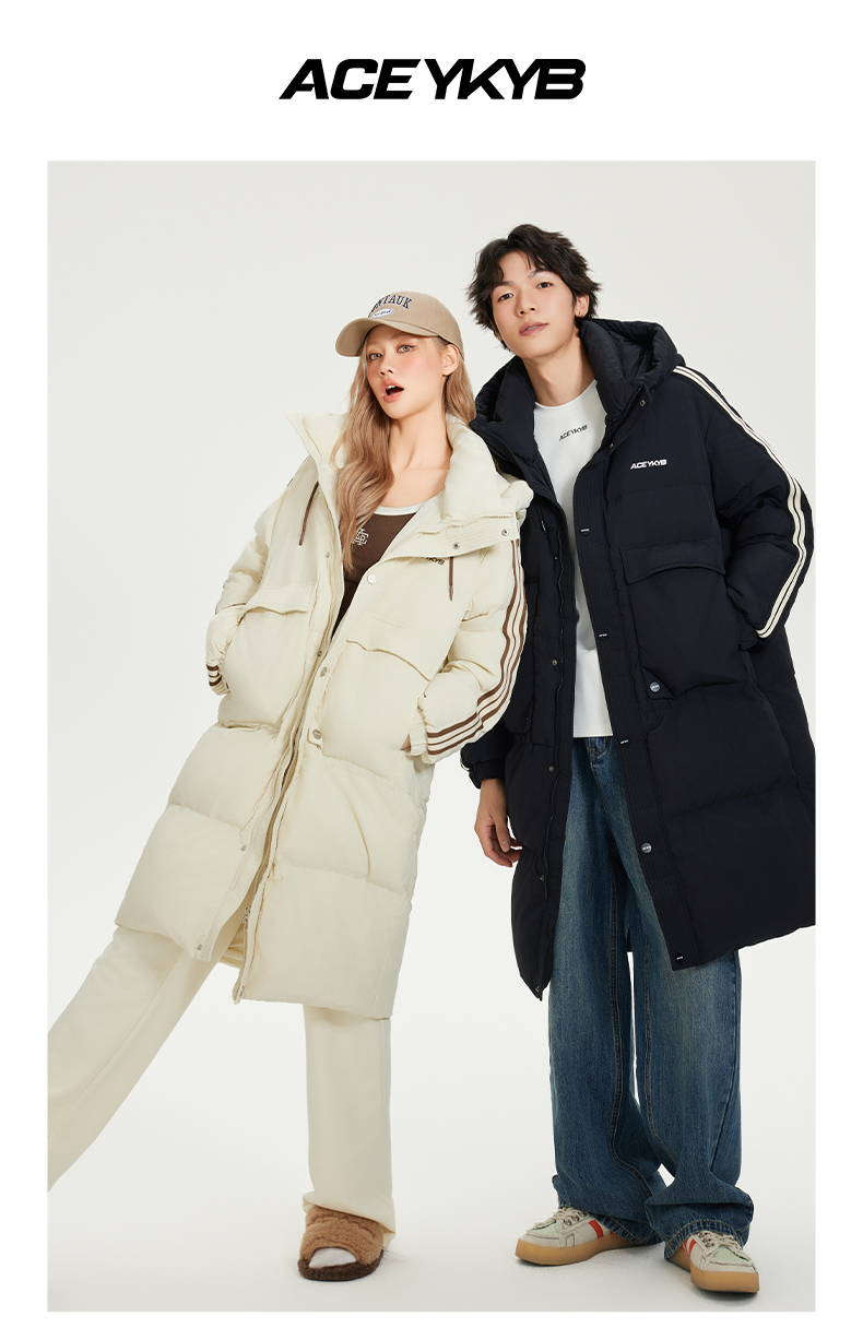 【领券下单立减100】YKYB黄子韬长款羽绒服连帽潮流百搭撞色防风防水宽松加厚保暖外套