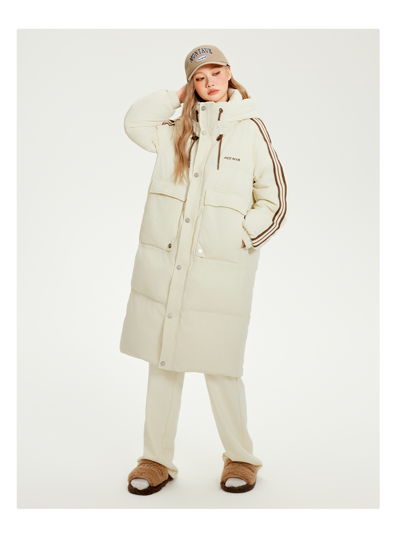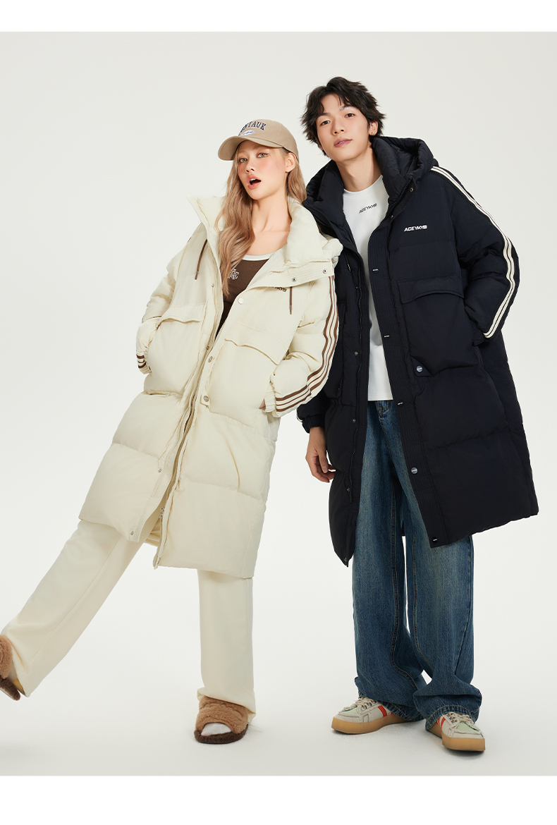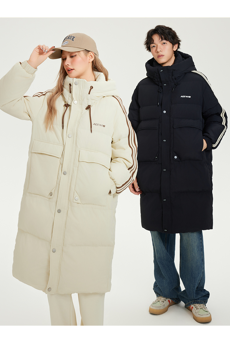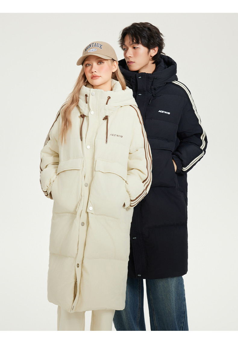 【领券下单立减100】YKYB黄子韬长款羽绒服连帽潮流百搭撞色防风防水宽松加厚保暖外套