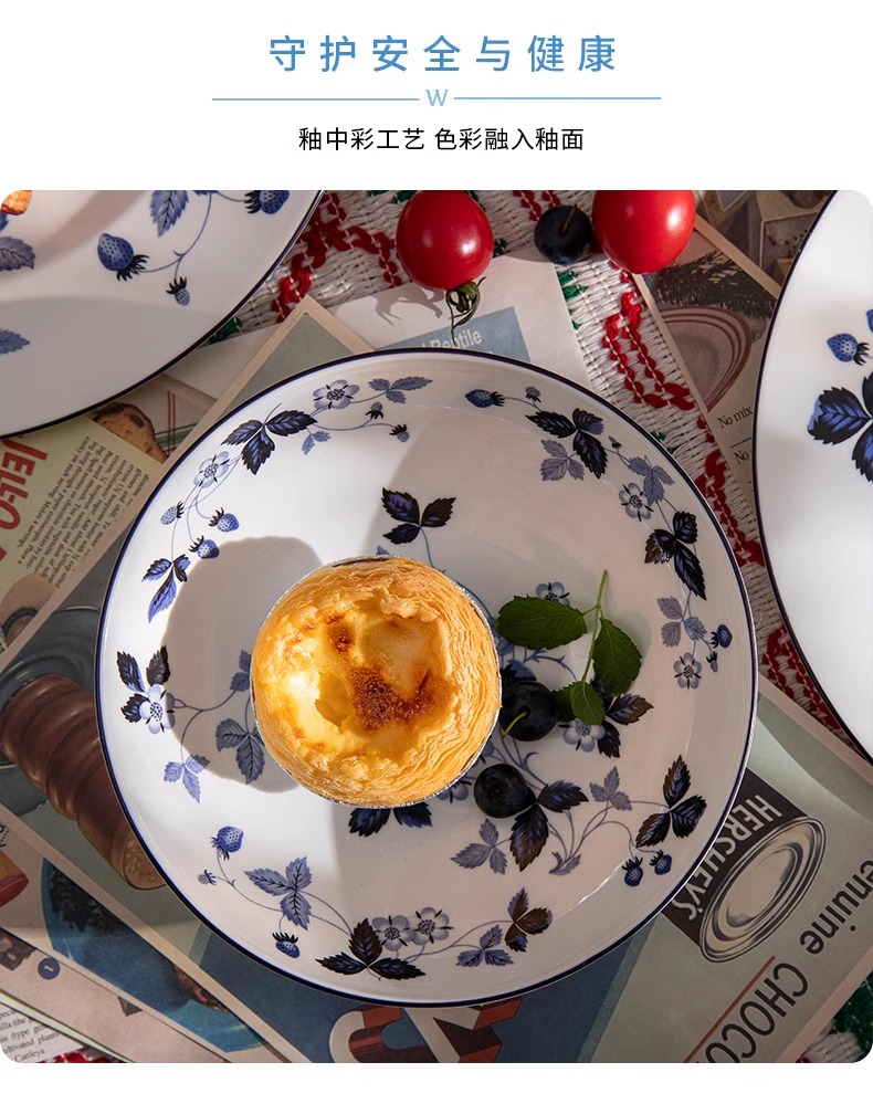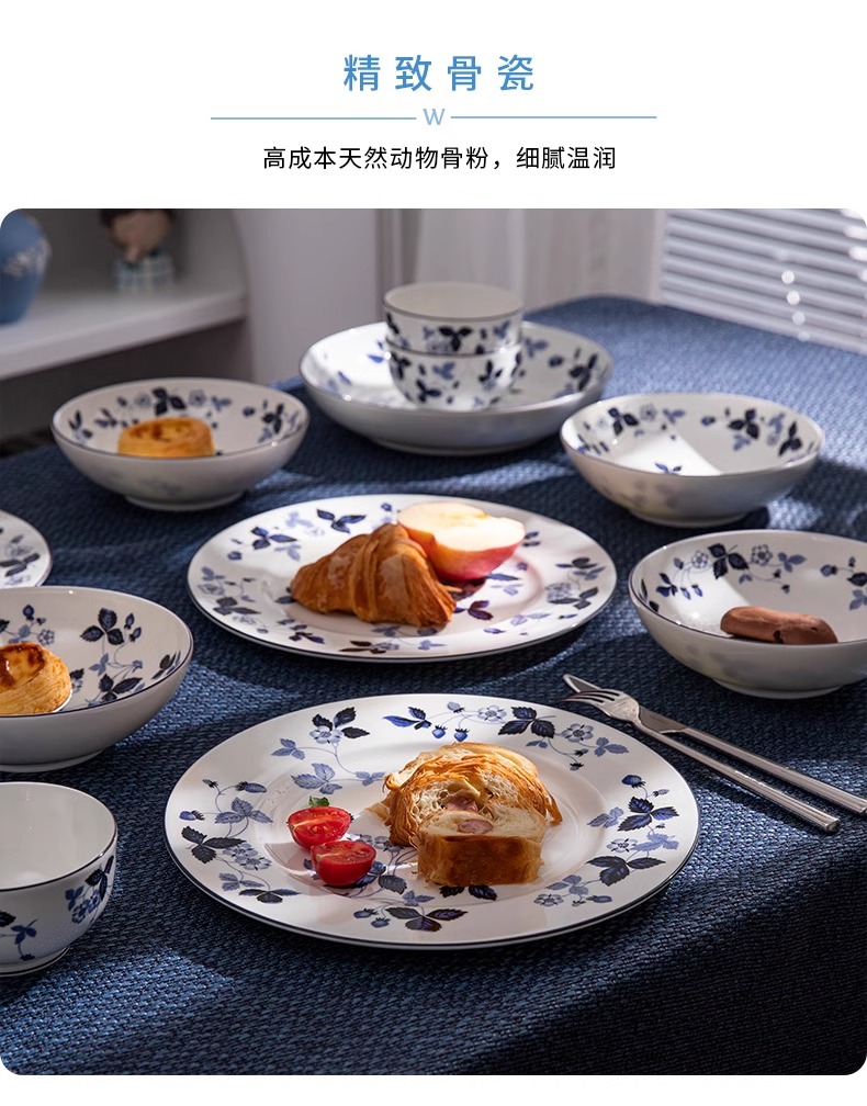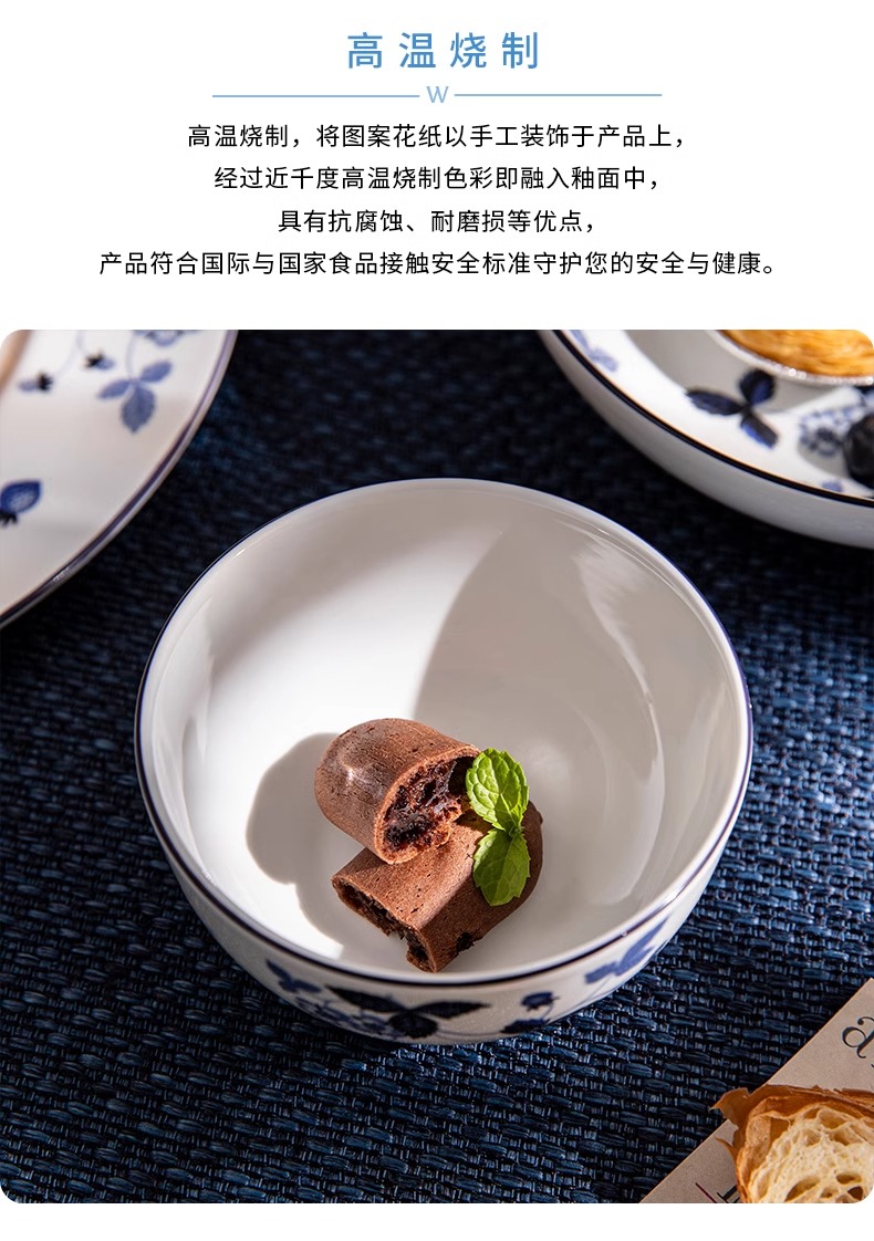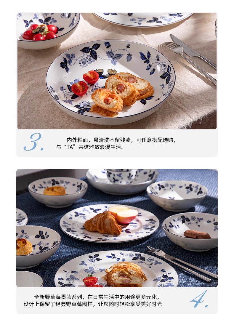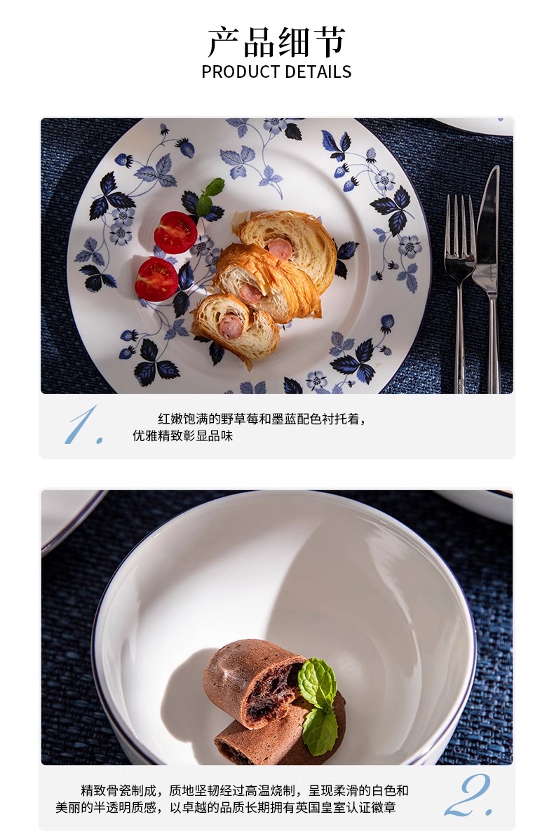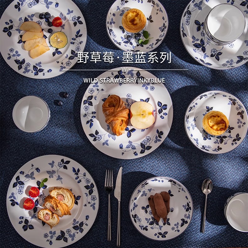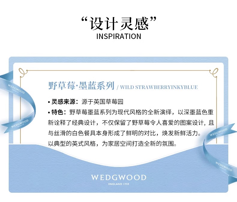 WEDGWOOD威基伍德墨蓝野草莓骨瓷轻奢餐具盘子碗碟套装威基伍德野草莓墨蓝两人食骨瓷餐具套装
