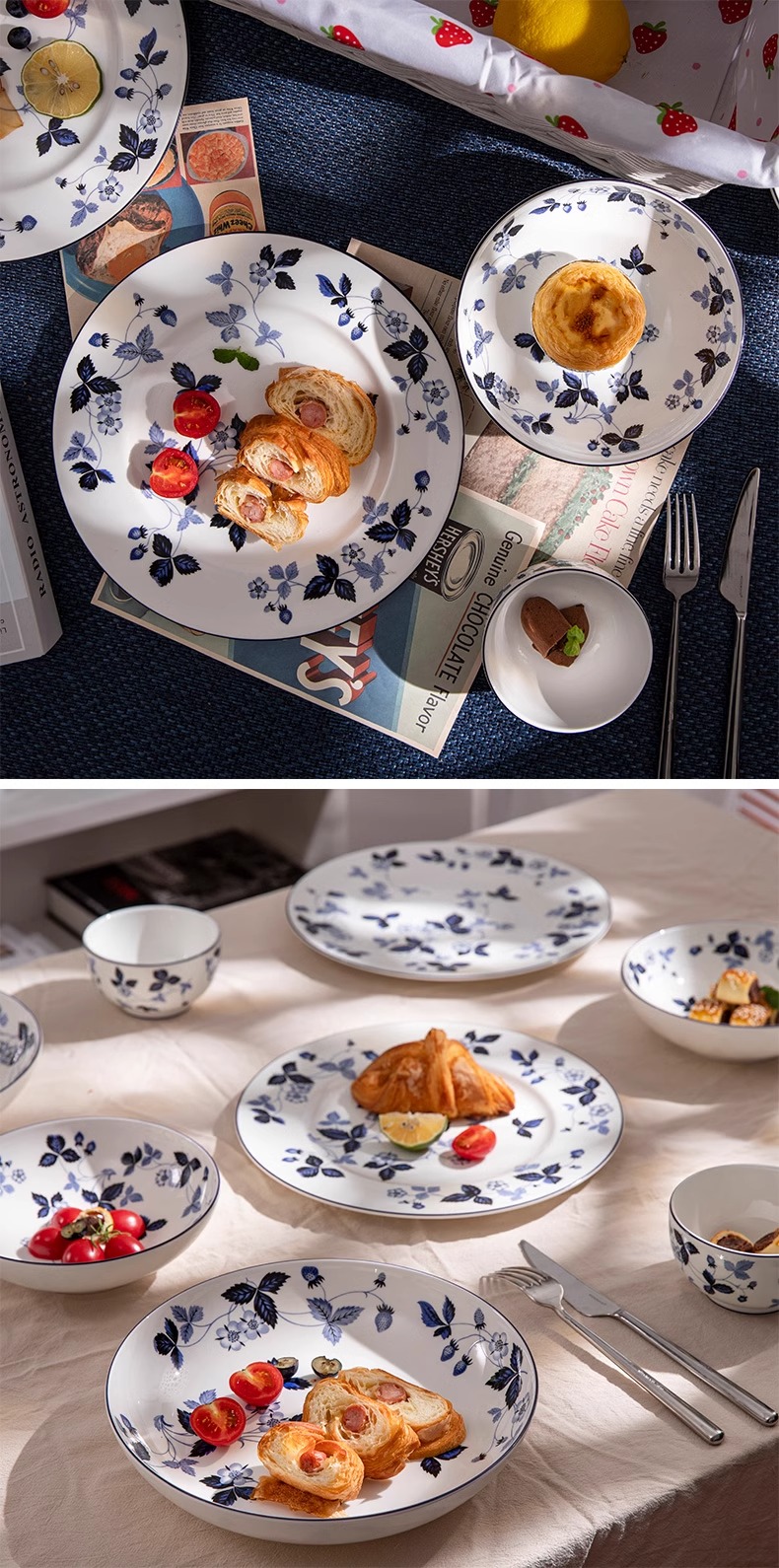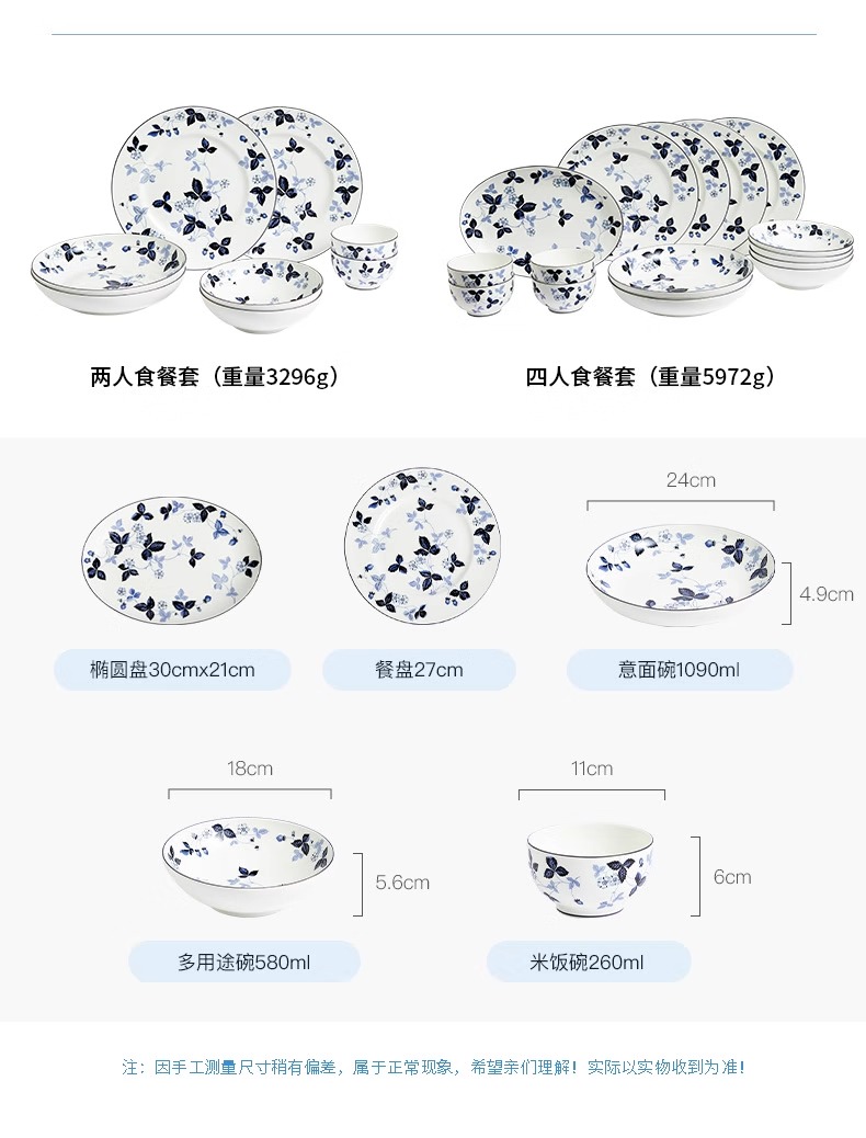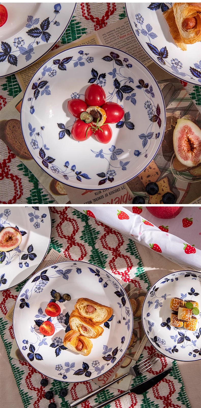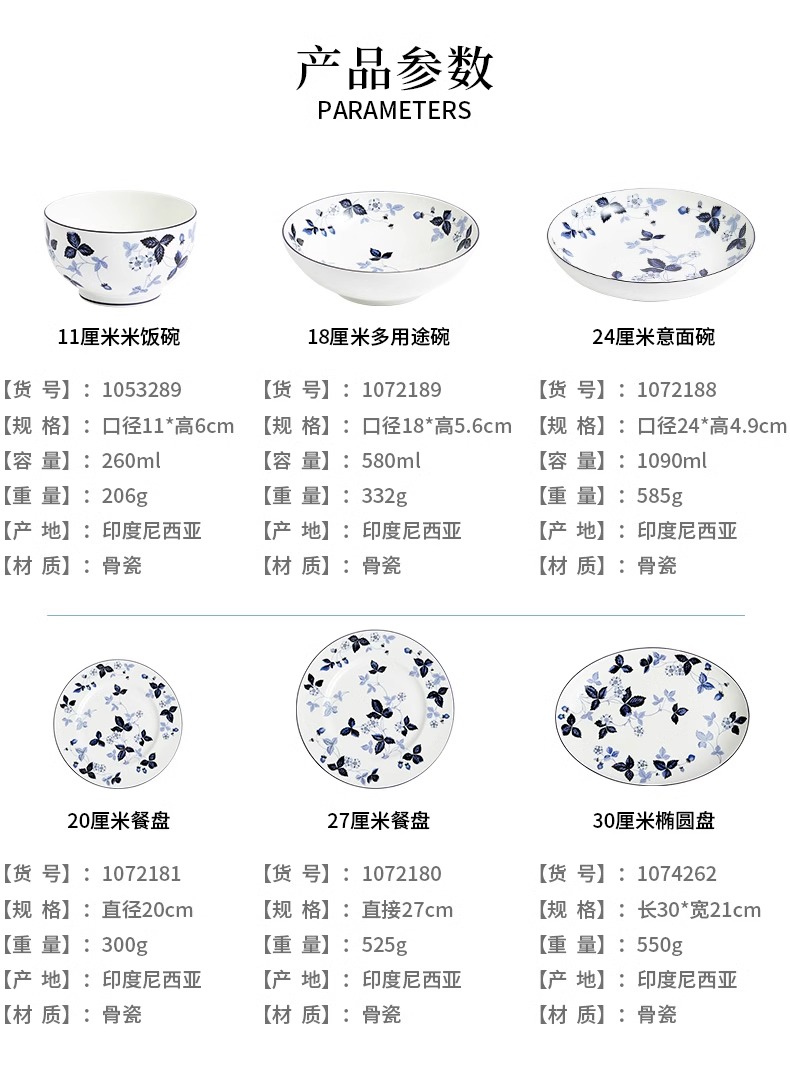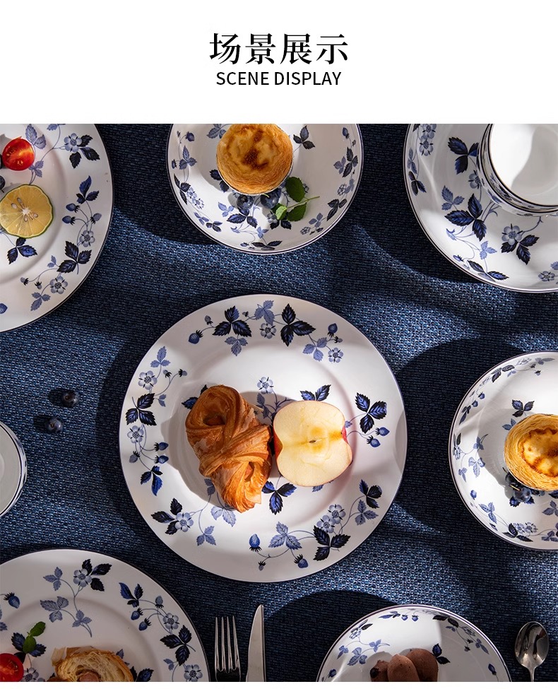 WEDGWOOD威基伍德墨蓝野草莓骨瓷轻奢餐具盘子碗碟套装威基伍德野草莓墨蓝两人食骨瓷餐具套装