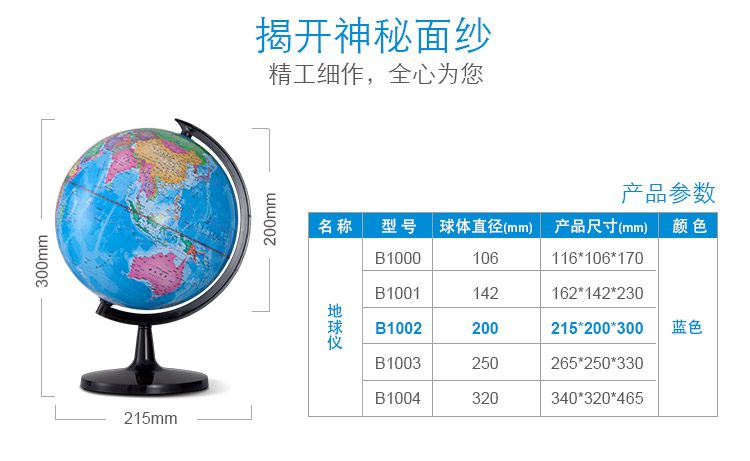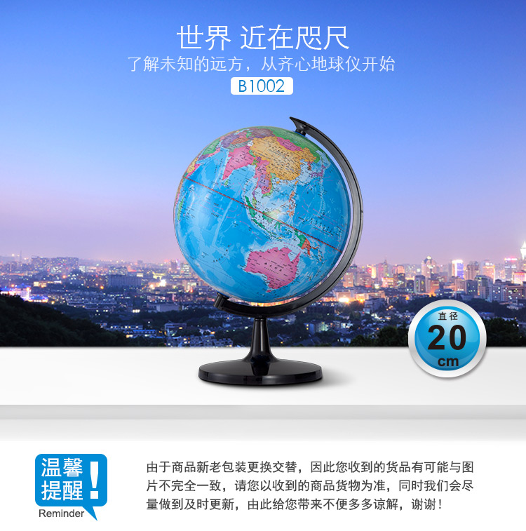齐心B1002地球仪20cm中号儿童教学用 初中小学学生用小型摆件高清