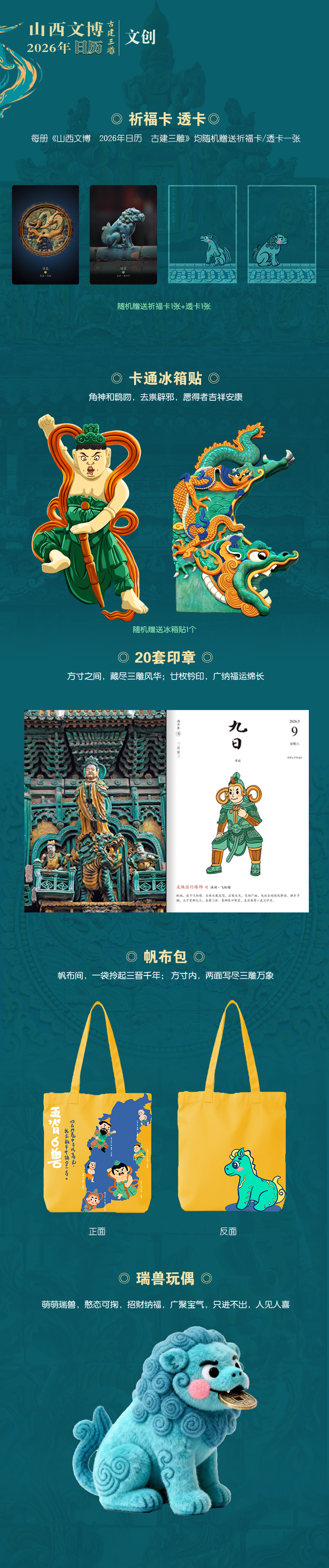 山西文博日历2026年《古建三雕》,精美的案头日历、山西古建图册大全【G】