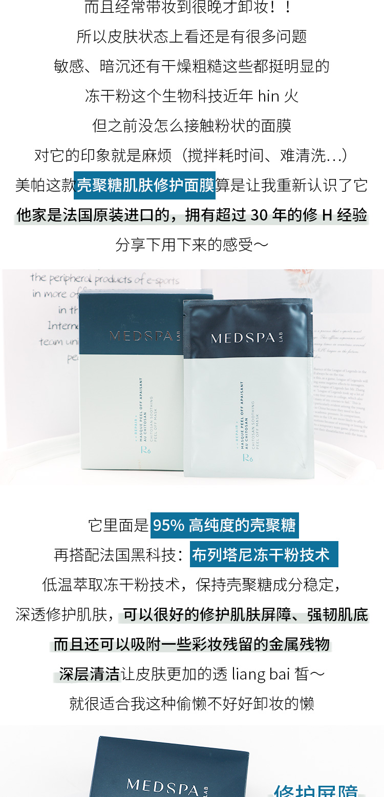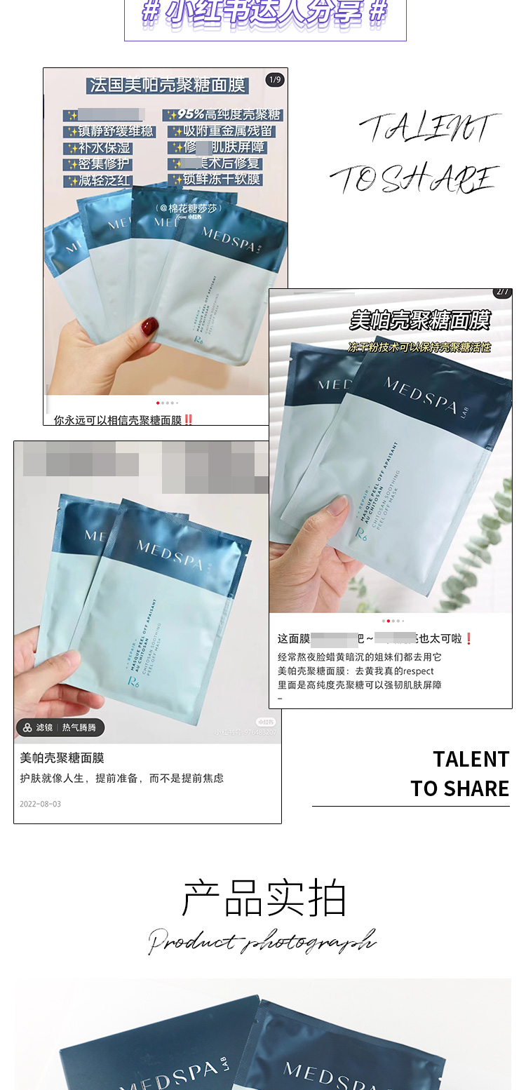 新款电商版 美帕壳聚糖面膜单片及盒装