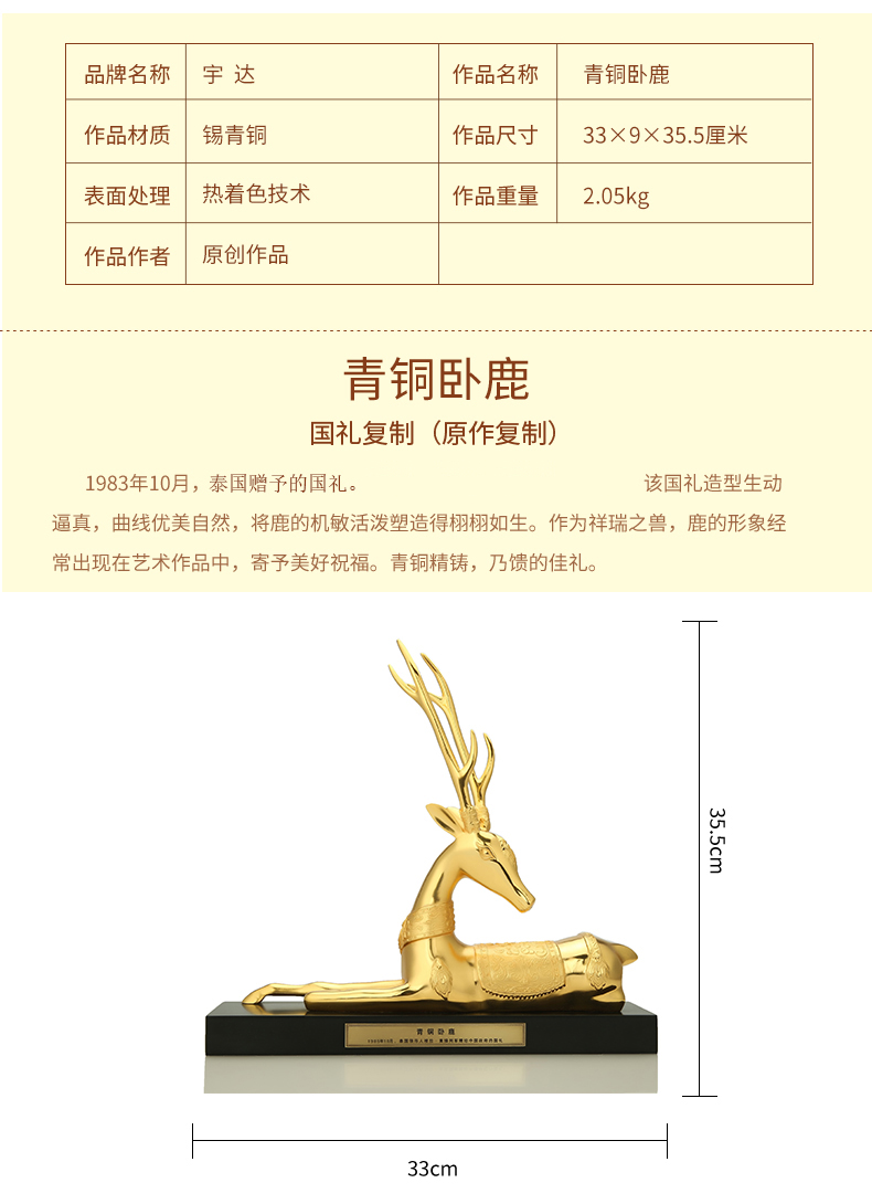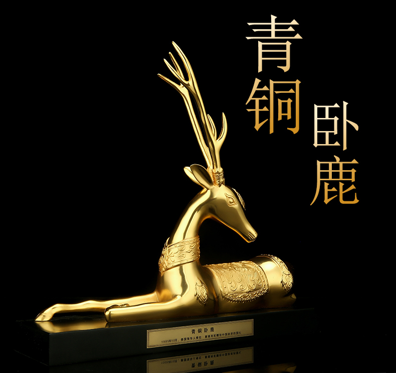 宇达青铜全铜摆件《青铜卧鹿》仿复制国礼 镀金 家居 装饰摆件