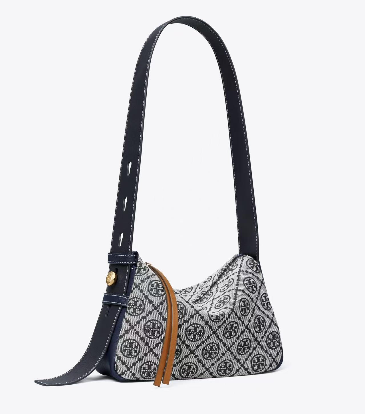 TORY BURCH Romy肩背包,精选品牌标志性T Monogram 提花面料打造,柔软便携,雕塑感十足。包身轻盈灵动,内部空间宽敞,配有深拉链口袋,可轻松收纳手机、钱包、太阳镜及钥匙。配备宽肩带设计,可通过全新纽扣式 Logo 调节。