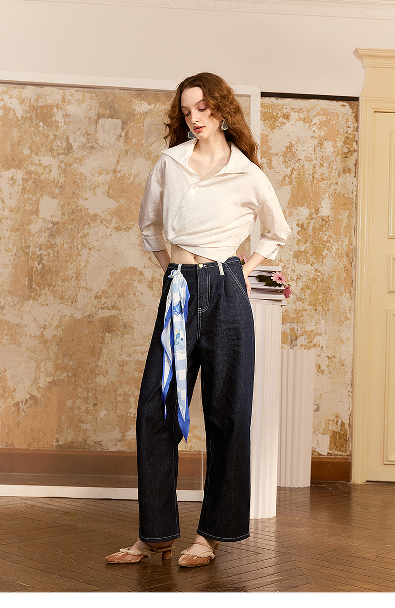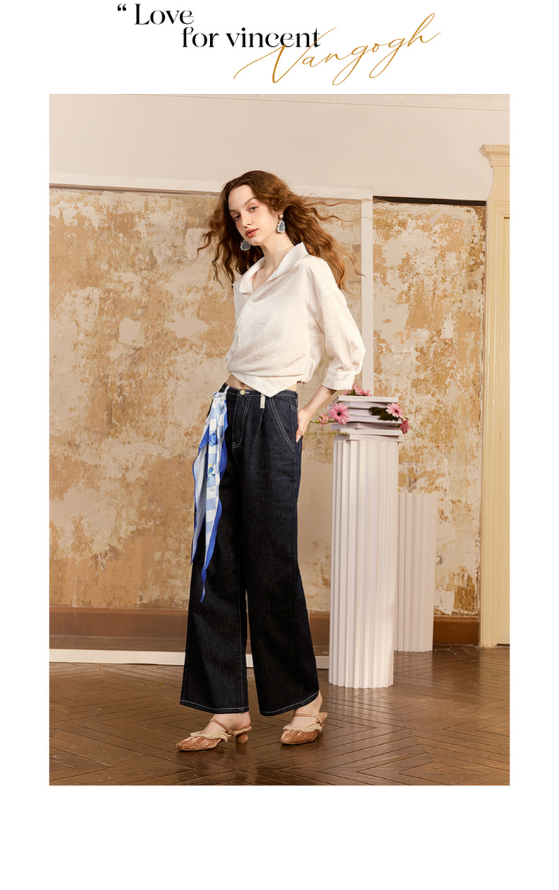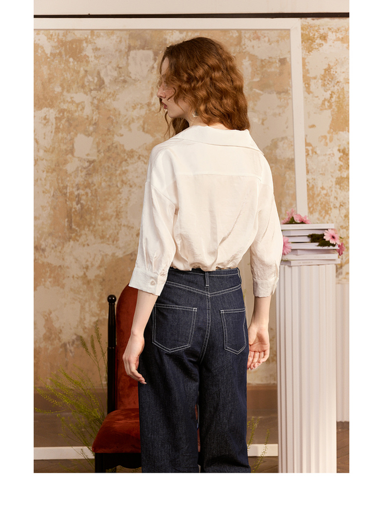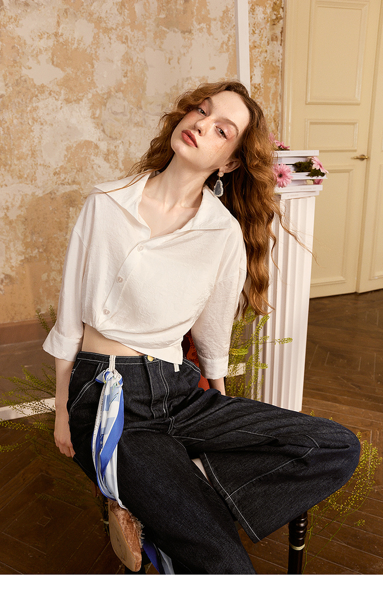 两三事梵高文艺朝朝牧歌2024夏新款简约绣花翻领斜边单排扣衬衫女