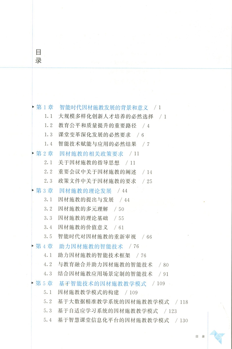 本书从因材施教的发展背景、政策要求、基本理论、相关技术、教学模式、基于智慧课堂的因材施教案例及趋势与展望七个方面全面、系统的论述了智能技术时代赋予因材施教新的可能。本书视角新颖,将因材施教话题与人工智能技术相结合,从政策、理论、技术、模式、实践等多个角度首次全面论述了如何利用人工智能技术落实千百年来的因材施教梦想,是一种智能时代开展智慧课堂教育教学的新思路。书稿案例全面,所选案例包含基础教育领域小学、初中、高中全学段,覆盖语文、数学、英语、自然、社会五大类学科,基本涵盖基础教育领域主要学科,全面反映了基础教育领域智慧课堂因材施教的实践情况;全书实践性较强。本书既非纯粹学理分析,也非简单的案例编纂,而是对每个案例进行了深度解读和点评分析,从理论上归纳总结了每个案例的实施要点。全书对一线中小学教师在智能技术时代背景下开展课堂教学活动,落实因材施教理念具有一定的借鉴和参考价值。