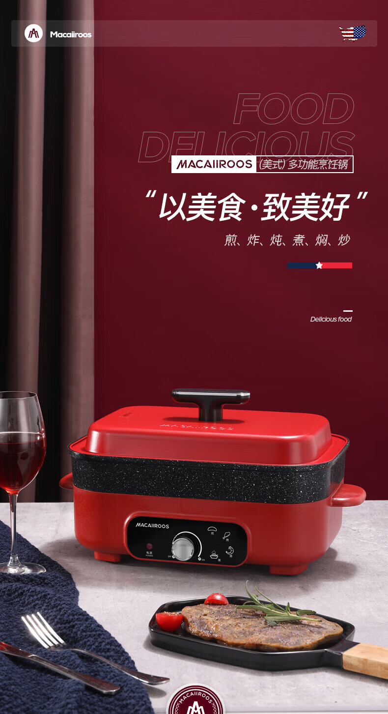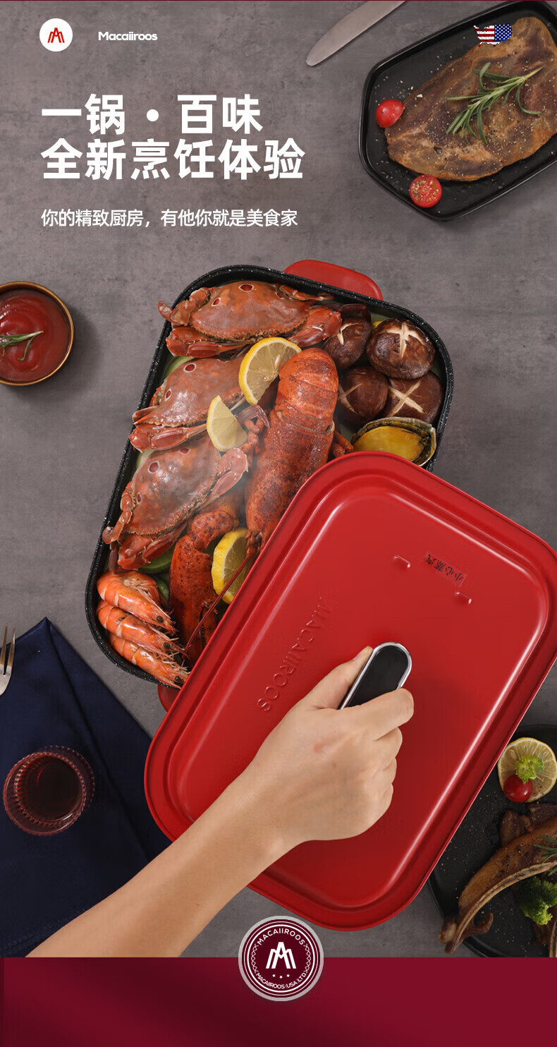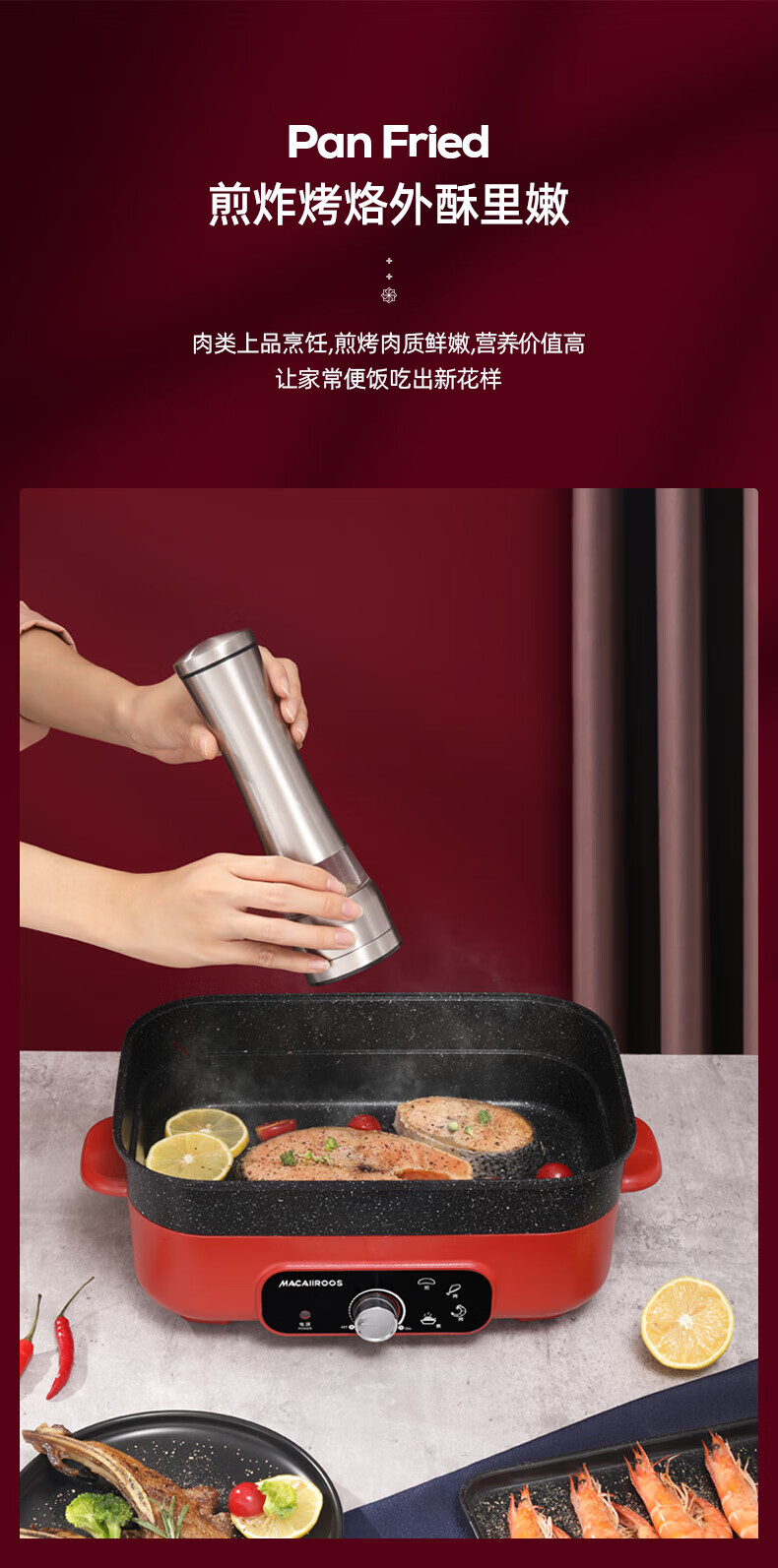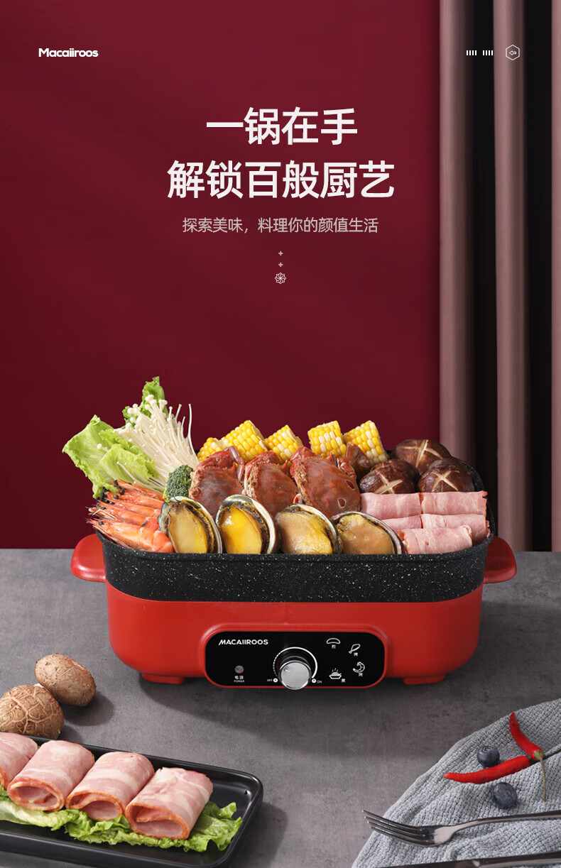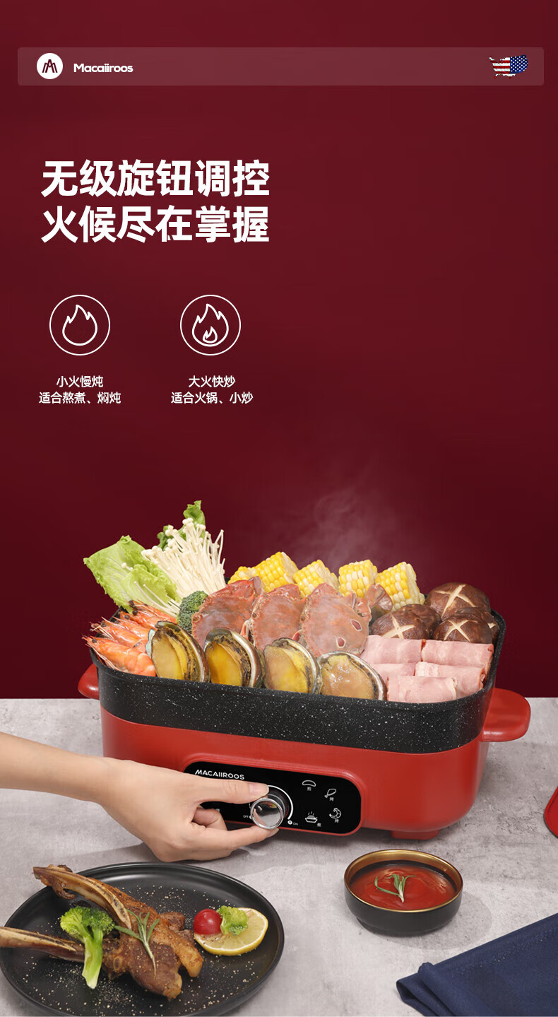 【小家电】迈卡罗MC-HG401多功能烹饪锅 煎煮涮焖炖一机多能 无级温控电火锅HF